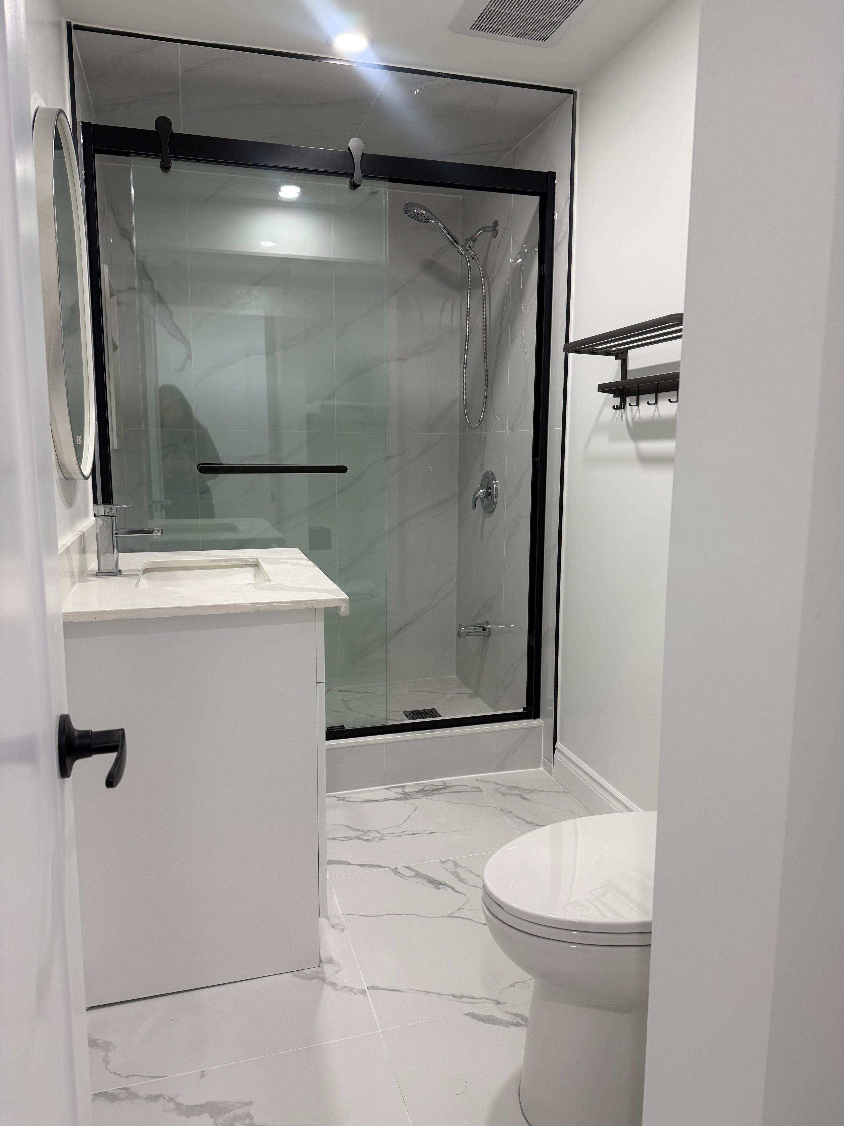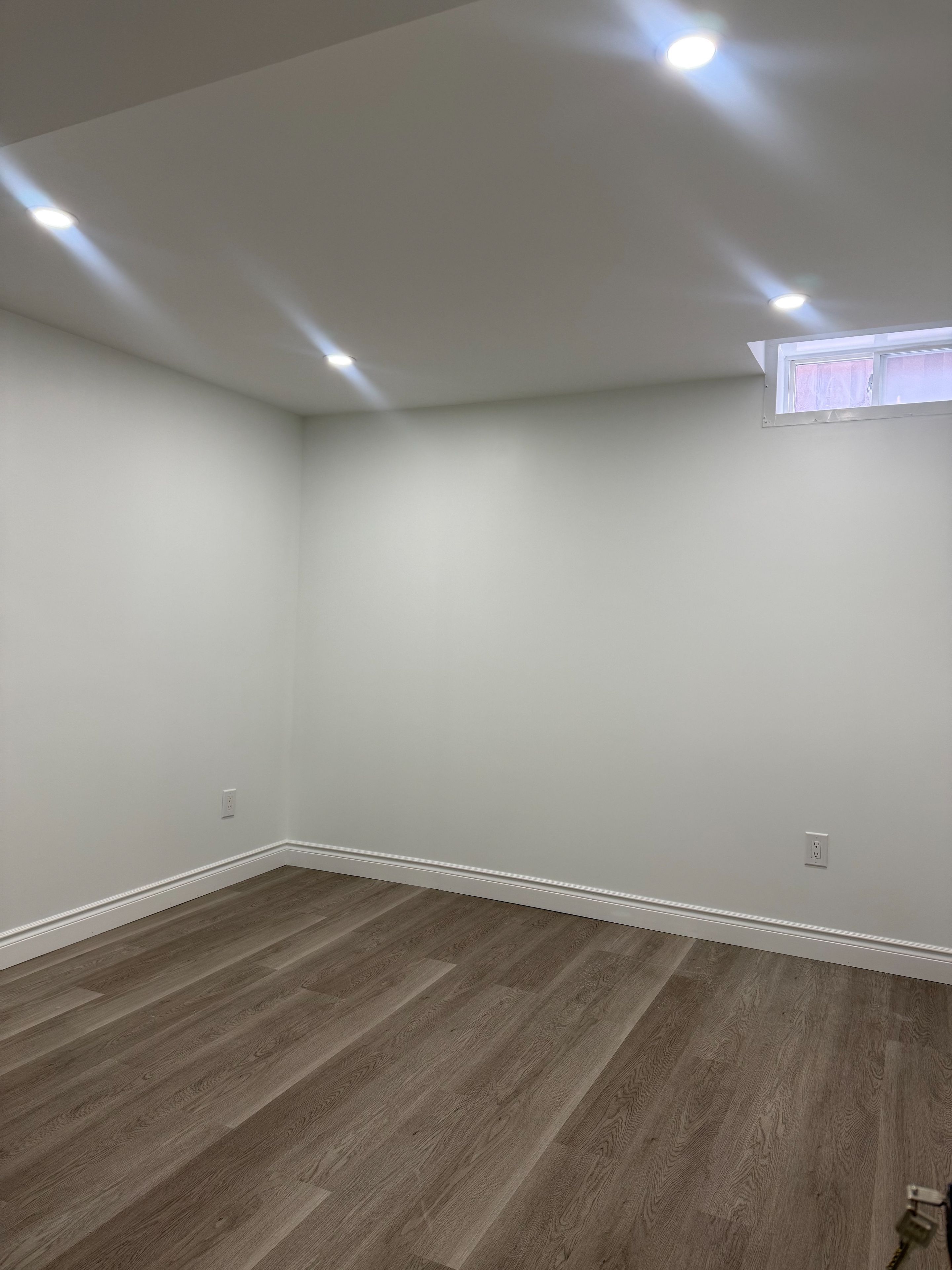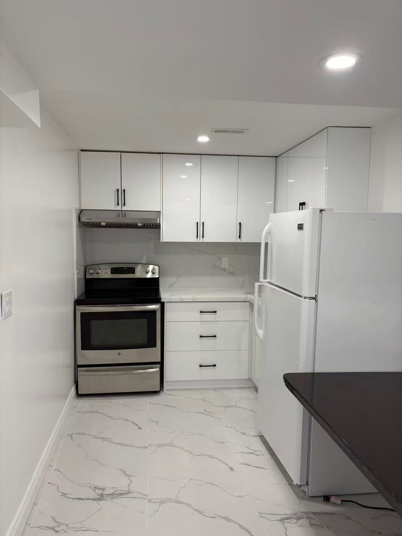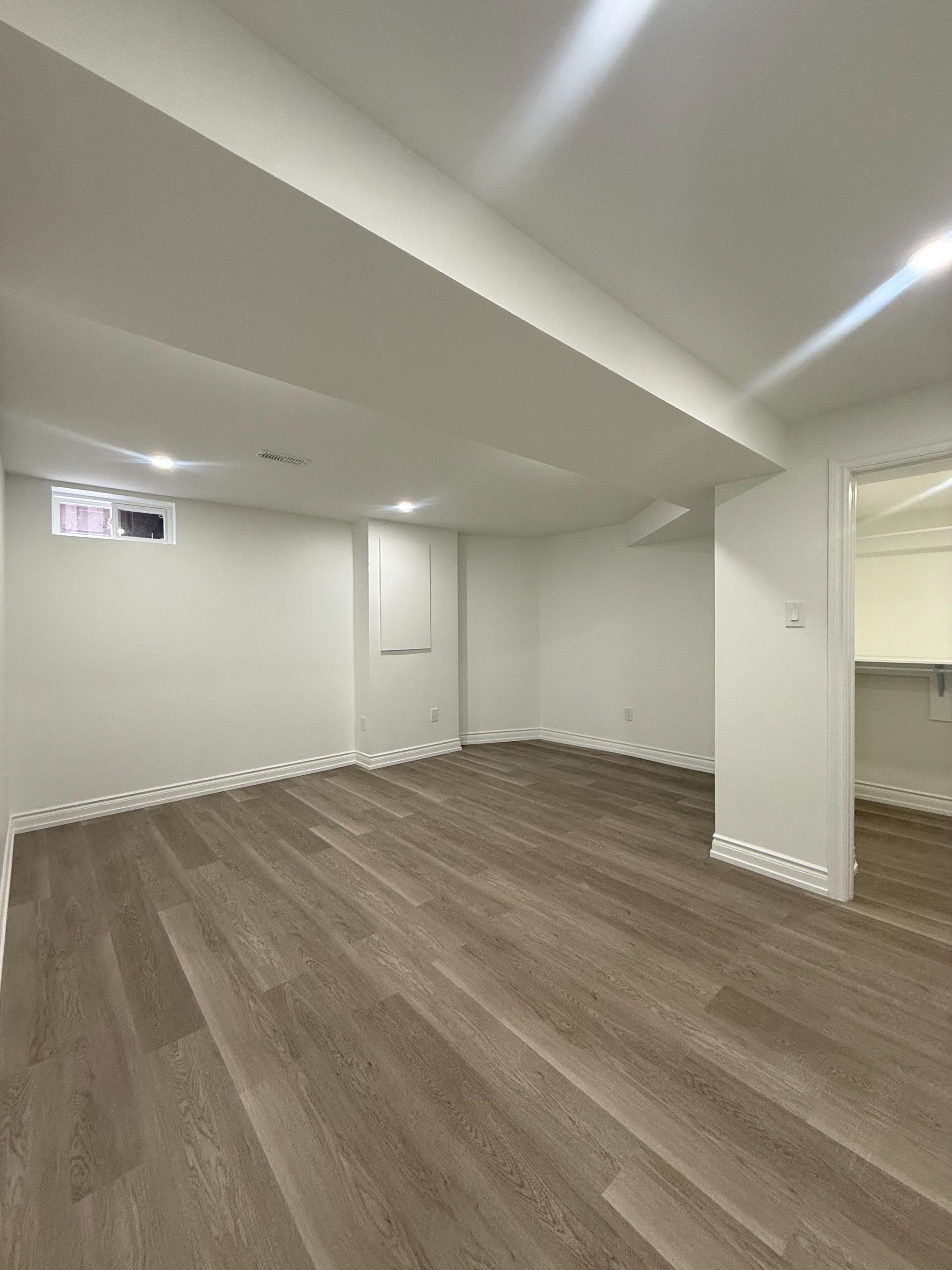 Gorgeous & spacious 2bdm,1wshrm apt with separate entrance! Brand new renovated basement apartment, a perfect blend of modern comfort and style. Featuring laminate floors throughout, large 2 bdrm, lots of pot lights. York bus, go train station. Suitable for a small family or two adults. The laundry room in the basement. Non-smokers and no pets please. Tenants are responsible for snow removal of passage and driveway they use.