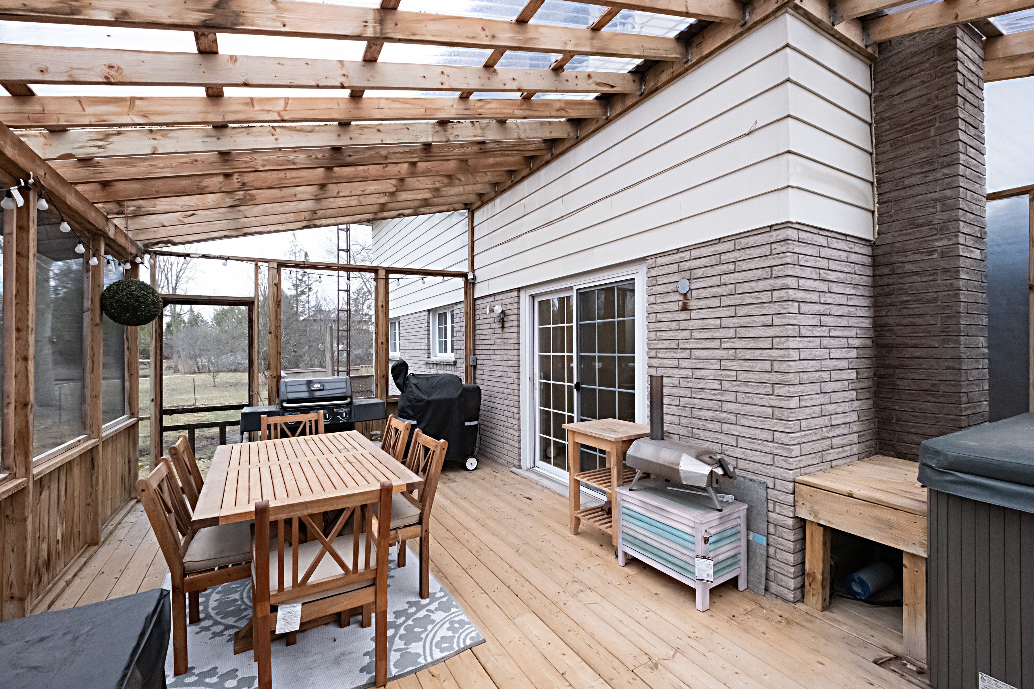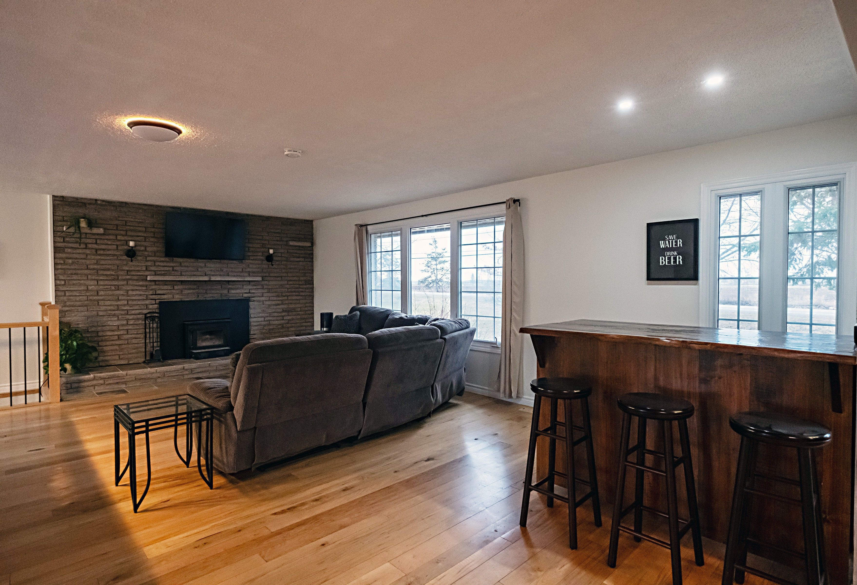 Looking for space? We have it! This lovely 2600+ square foot home sits on the outskirts of belleville in a desirable area. Just seven minutes and you are in town so load the car and bring the family, this may be your new home! Need room for extended family? In addition to the 2600+ square feet above ground, we have a partially finished basement with a suite featuring a wood stove in the cozy recreation room, an oversized bedroom, den (closet but no window), 3 piece bathroom and kitchen. You can access the attached double car garage from the basement or the main floor. Speaking of the main floor, wow! A grand entrance with double doors and a huge foyer that leads you to the convenient 2 piece powder/laundry room. The gorgeous kitchen is complemented with shaker-style cabinets to the ceiling, crown mouldings, valances, stunning granite, soft close hardware, two pantries and a peninsula. From here, lets head into the family room which is no doubt, the hub of this home. Whether you want to snuggle up on the couch and enjoy the wood burning fireplace or you want to make it a game night, this is the place to be! Not to worry, for the more formal, we also have a main floor living room and dining room which leads you right into the 300+ square foot, three season sun room. A place where you can take in the beautiful backyard and all the wildlife that goes with this 3+ acre property. Back inside and upstairs are four bedrooms. The primary is serviced by its own 3 piece ensuite while the other three bedrooms are serviced by a 4 piece bathroom. Worth mentioning: house shingles approximately 6 years; windows vinyl double pane; 200 amp breaker panel; forced air propane furnace approximately 13 years; outbuilding with man door and car door 22'7 x 28'10; deck 23'10 x 16'1; front patio 23'11 x 12'11. Some measurements less jogs.