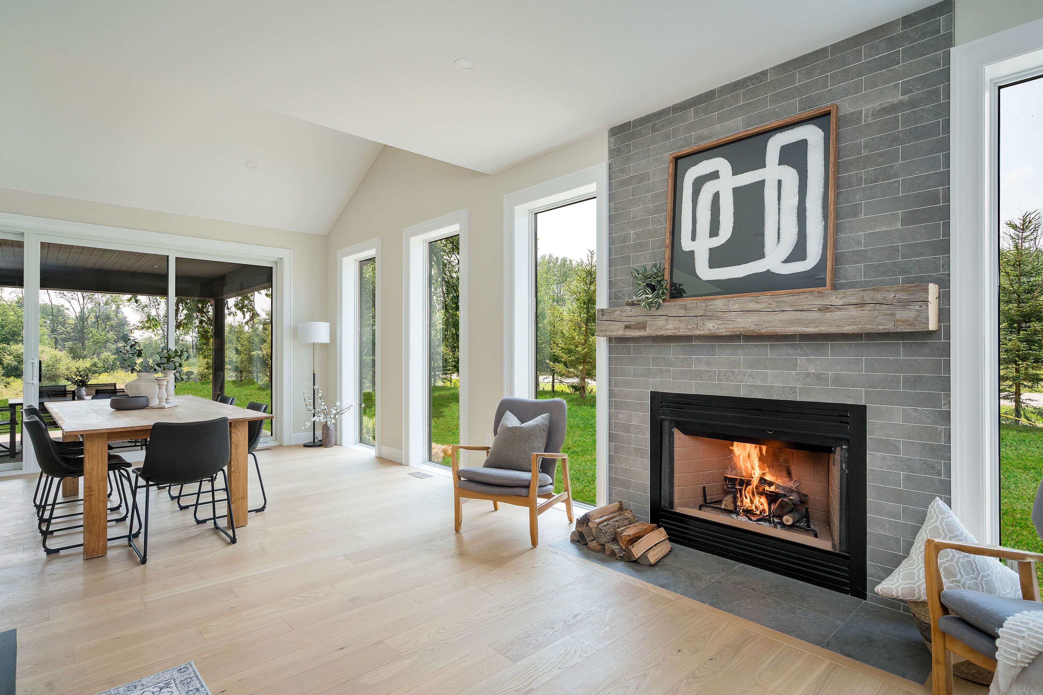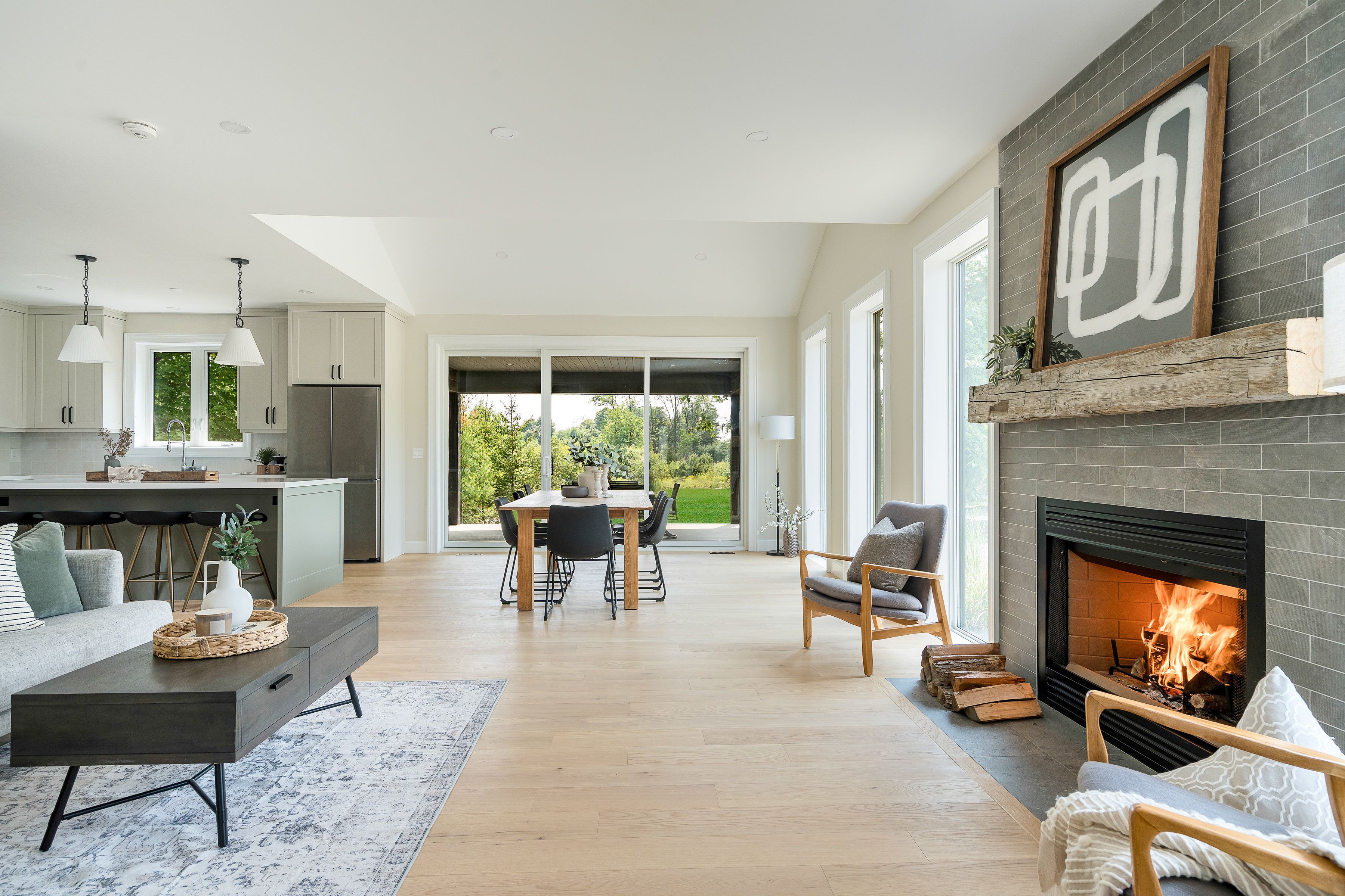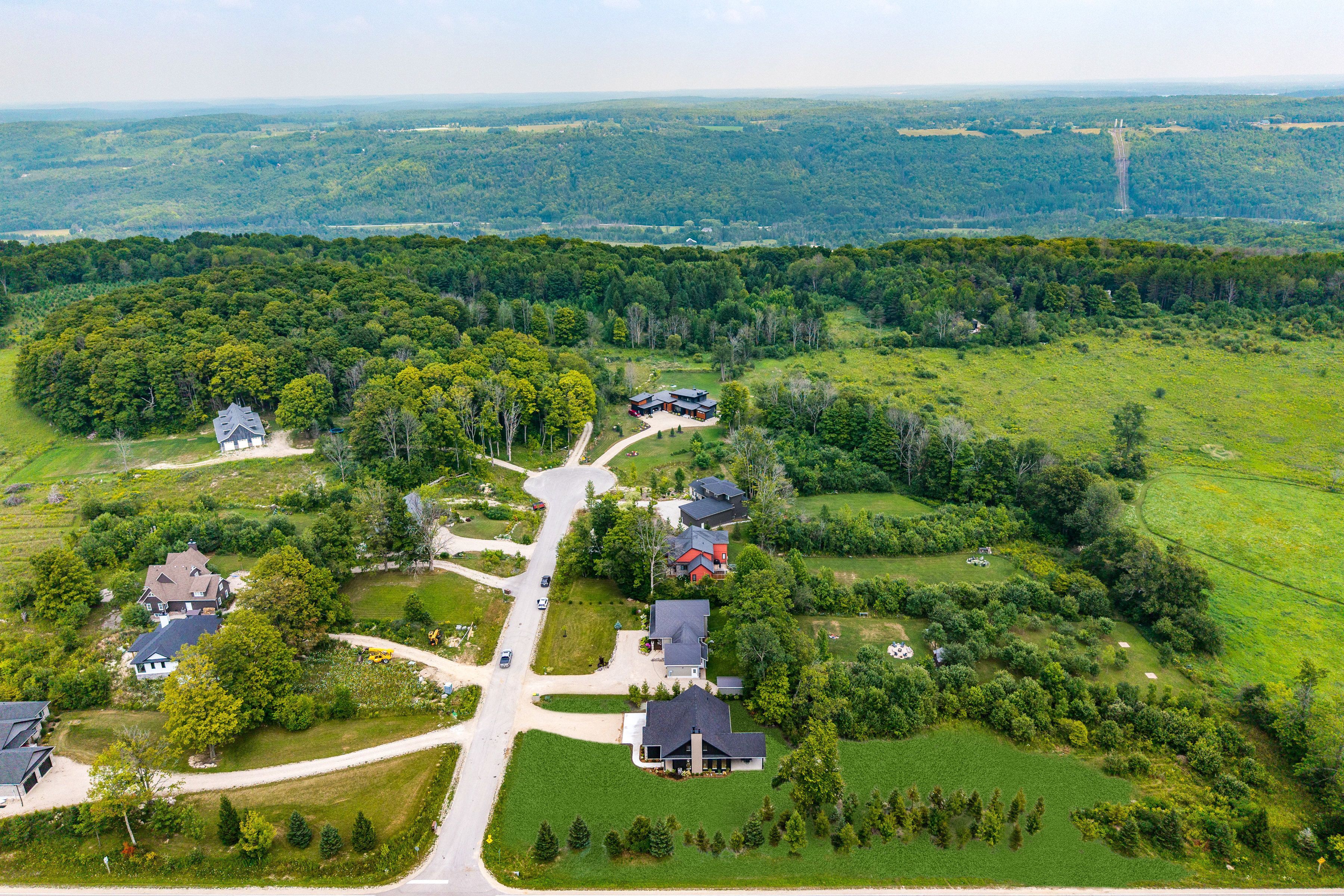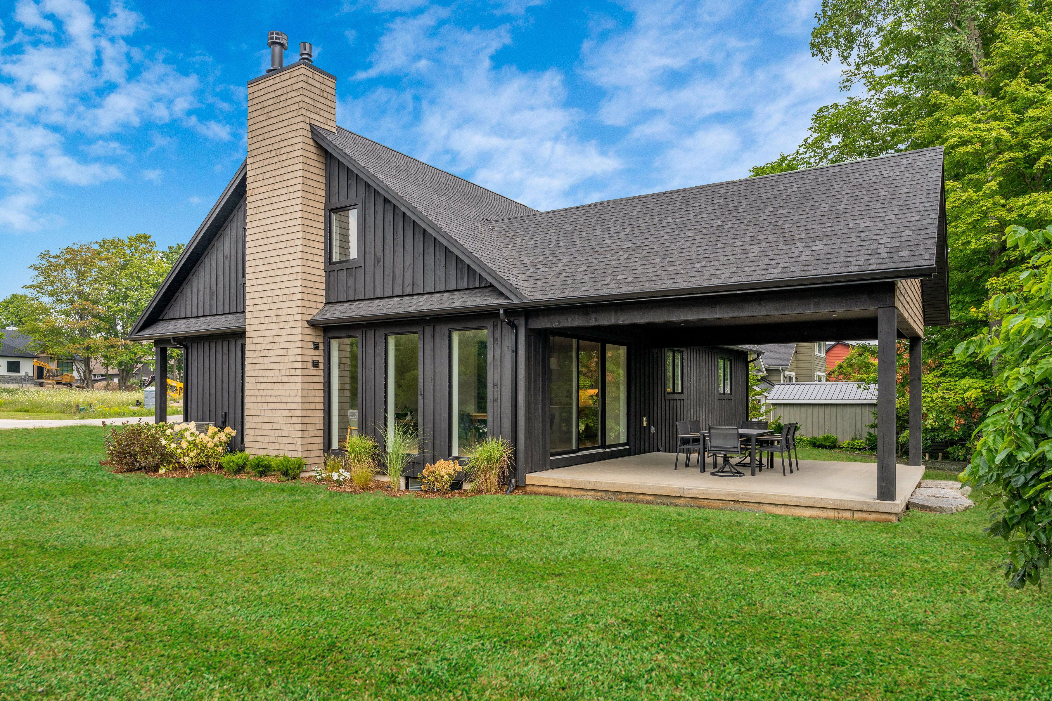 Save the hst on this brand-new custom residence (2026 new housing rebate included for qualifying buyers), backed by a comprehensive 7-year tarion new home warranty. This designer-curated home is nestled within an exclusive enclave of just 12 private residences in the coveted beaver valley woodlands. Crafted for those who measure summer in time outdoors and winter in powder days, this 3,546 sq ft, 5-bedroom, 4-bath modern alpine retreat sits on 1. 37 private acres framed by 100 newly planted spruce, pine, and fir. The striking exterior pairs onyx board-and-batten with cedar shake and natural hand-laid stonework for bold, elegant curb appeal. Inside, 13-ft vaulted ceilings and floor-to-ceiling windows flood the great room with light, anchored by a sophisticated porcelain-clad wood-burning fireplace with a reclaimed barn beam mantel--the heart of après: boots kicked off, glasses raised, stories swapped by firelight. Every detail is elevated, from white oak hardwood floors to 8-ft solid poplar doors and trim. The kitchen features full-height custom cabinetry, a quartz island in soft sage, artisan handcrafted tile backsplash with a softly reflective glaze that shifts with the light, and integrated stainless steel appliance. The main-floor primary suite offers a custom walk-in closet and 5-piece ensuite with porcelain tile wall, freestanding soaker tub, glass rainfall shower, and a warm wood vanity with quartz counters. Upstairs, 2 bedrooms--including one with its own fireplace--share a chic 3-piece bath. The lower level continues the home's refined design with a floating glass-and-steel staircase, bright rec room, full gym, 2 bedrooms, and a 4-piece bath. Heated polished concrete floors add warmth throughout. A 19x19 covered porch extends outdoor living, while the heated oversized garage with epoxy floors and waterproof walls is built for every season. 104 butternut court is a refined retreat where architectural precision meets the rhythm of everyday life in the valley.