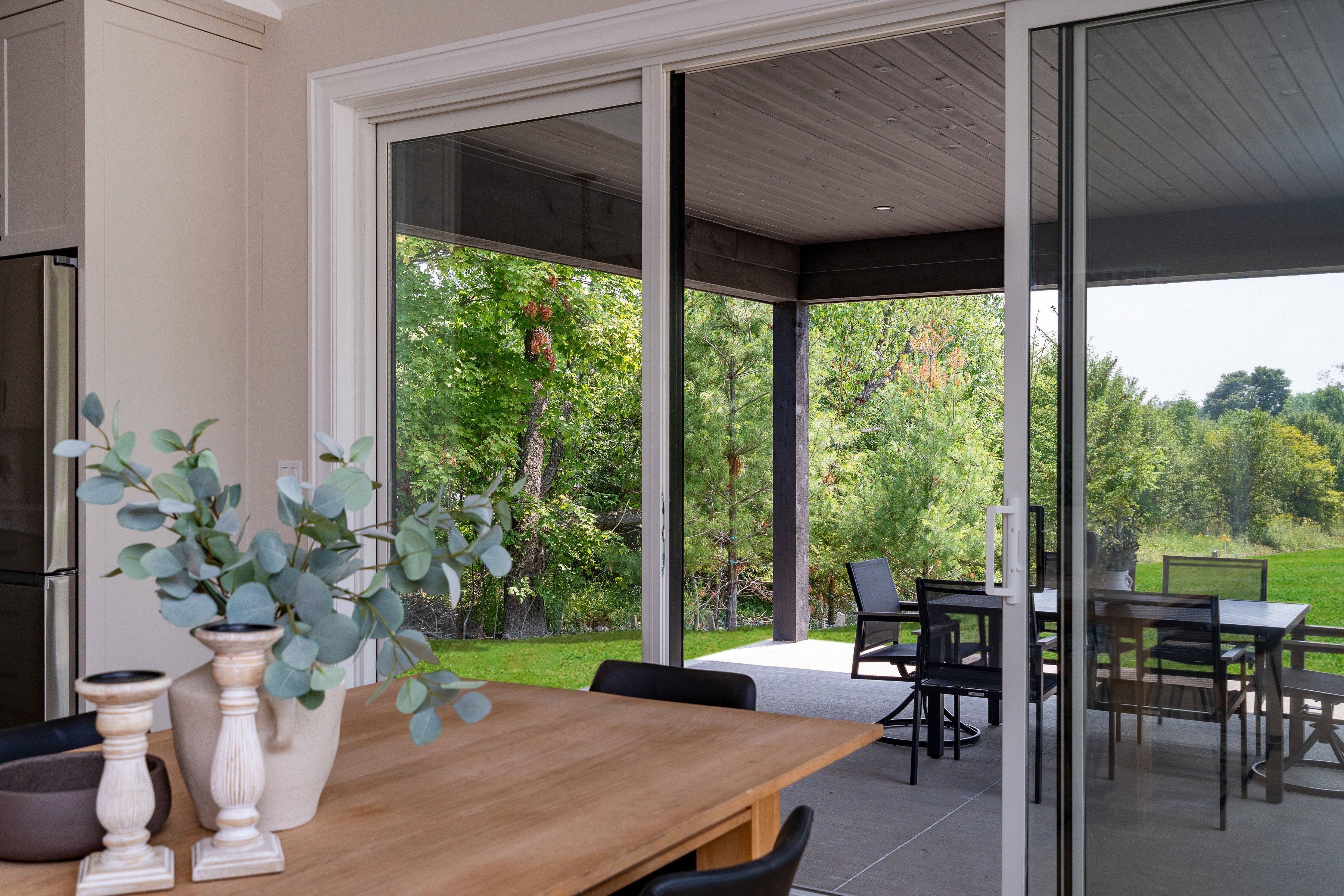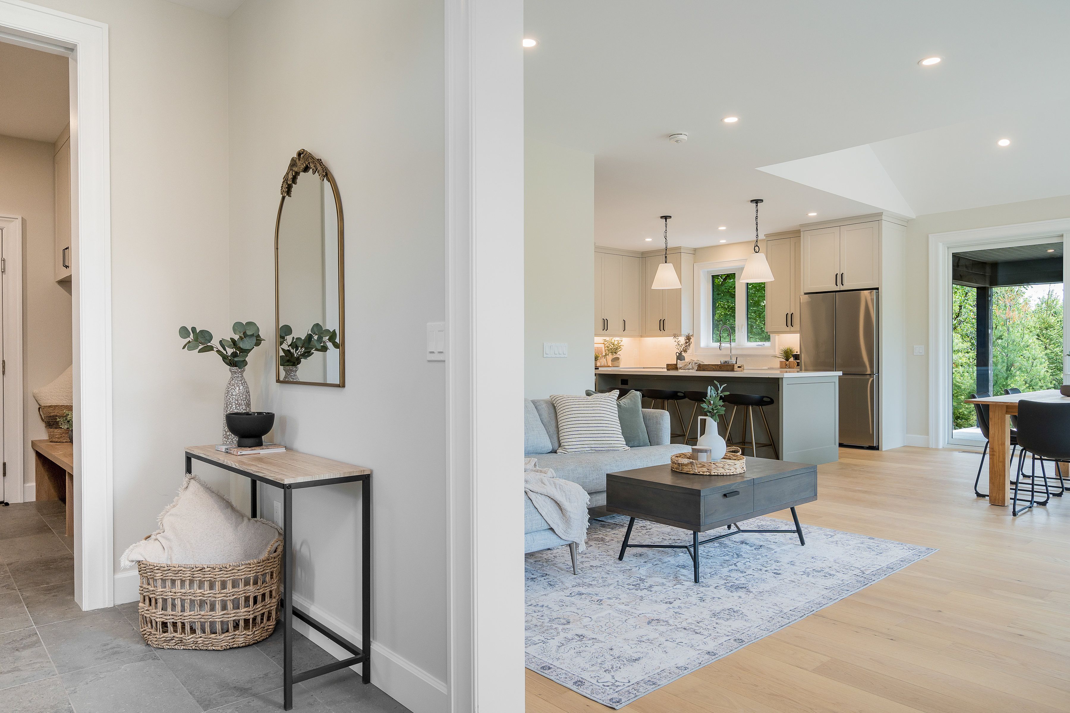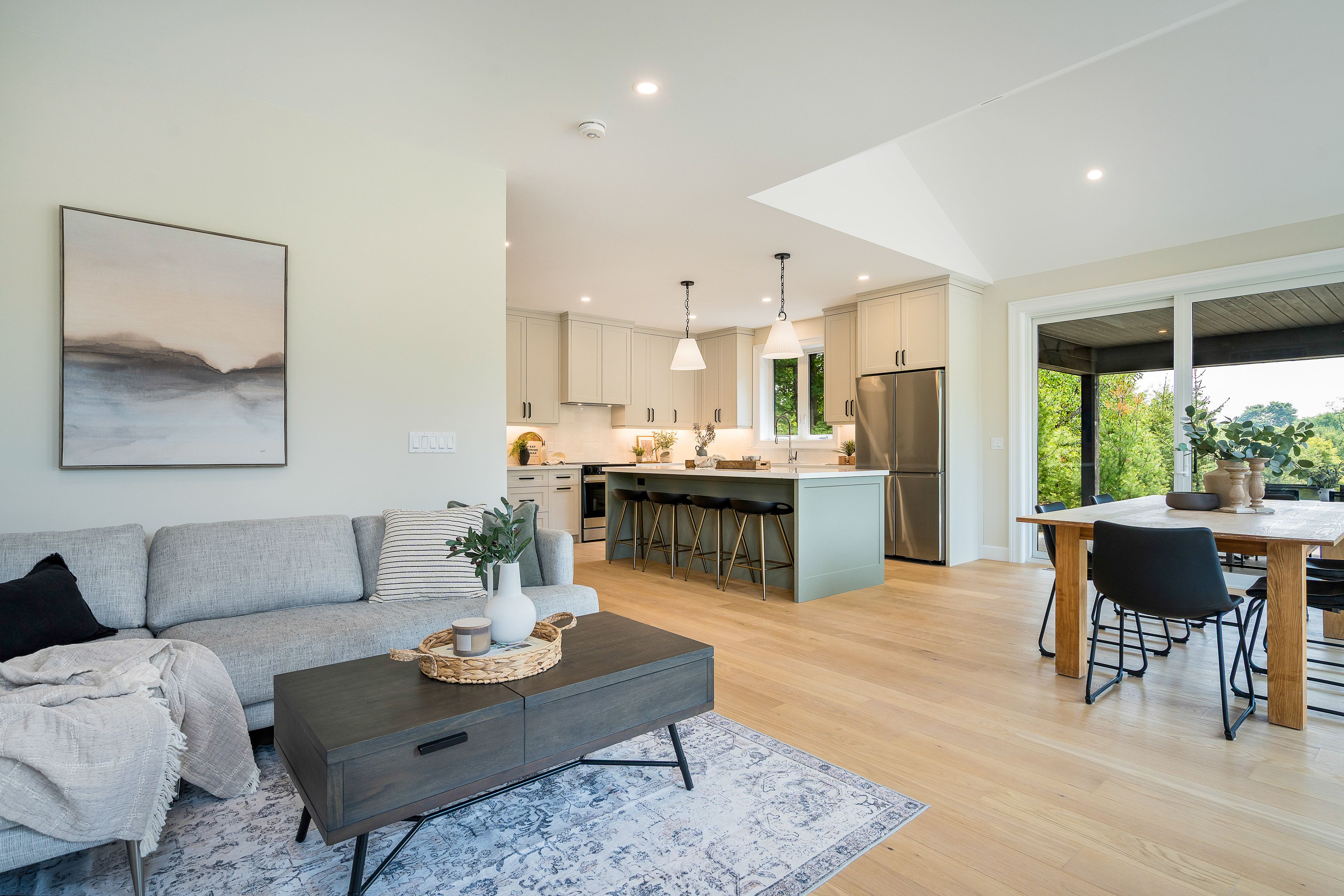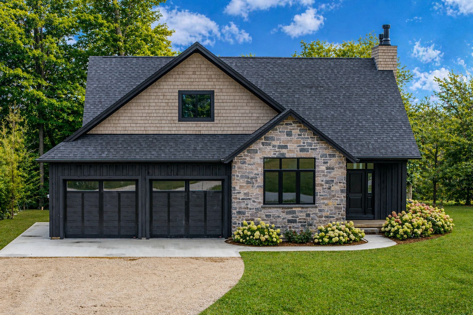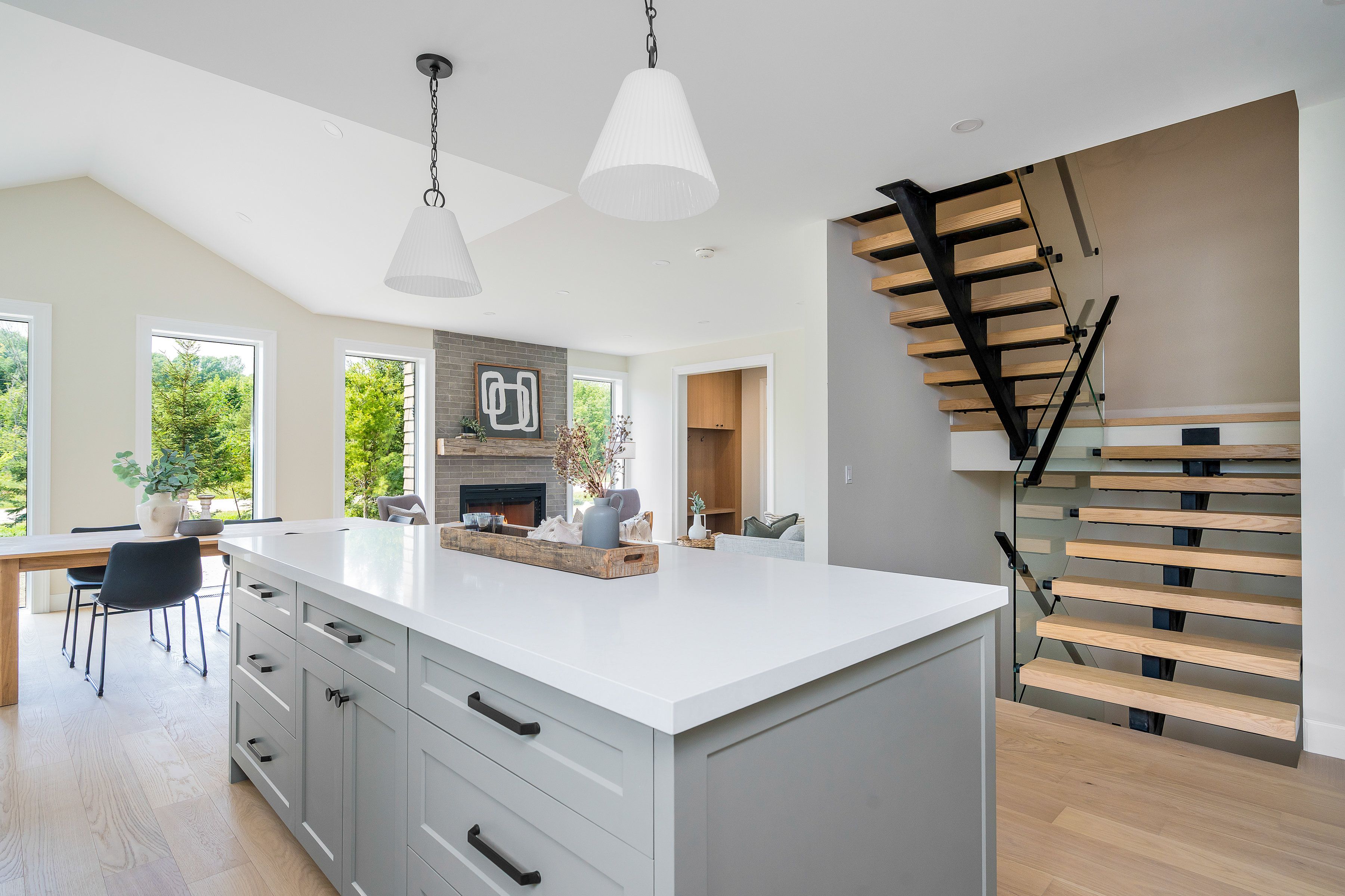 Save the hst on this brand-new custom residence (2026 new housing rebate included for qualifying buyers), backed by a comprehensive 7-year tarion new home warranty. This designer-curated home is nestled within an exclusive enclave of just 12 private residences in the coveted beaver valley woodlands. Crafted for those who measure summer in time outdoors and winter in powder days, this 3,546 sq ft, 5-bedroom, 4-bath modern alpine retreat sits on 1. 37 private acres framed by 100 newly planted spruce, pine, and fir. The striking exterior pairs onyx board-and-batten with cedar shake and natural hand-laid stonework for bold, elegant curb appeal. Inside, 13-ft vaulted ceilings and floor-to-ceiling windows flood the great room with light, anchored by a sophisticated porcelain-clad wood-burning fireplace with a reclaimed barn beam mantel--the heart of après: boots kicked off, glasses raised, stories swapped by firelight. Every detail is elevated, from white oak hardwood floors to 8-ft solid poplar doors and trim. The kitchen features full-height custom cabinetry, a quartz island in soft sage, artisan handcrafted tile backsplash with a softly reflective glaze that shifts with the light, and integrated stainless steel appliance. The main-floor primary suite offers a custom walk-in closet and 5-piece ensuite with porcelain tile wall, freestanding soaker tub, glass rainfall shower, and a warm wood vanity with quartz counters. Upstairs, 2 bedrooms--including one with its own fireplace--share a chic 3-piece bath. The lower level continues the home's refined design with a floating glass-and-steel staircase, bright rec room, full gym, 2 bedrooms, and a 4-piece bath. Heated polished concrete floors add warmth throughout. A 19x19 covered porch extends outdoor living, while the heated oversized garage with epoxy floors and waterproof walls is built for every season. 104 butternut court is a refined retreat where architectural precision meets the rhythm of everyday life in the valley.
