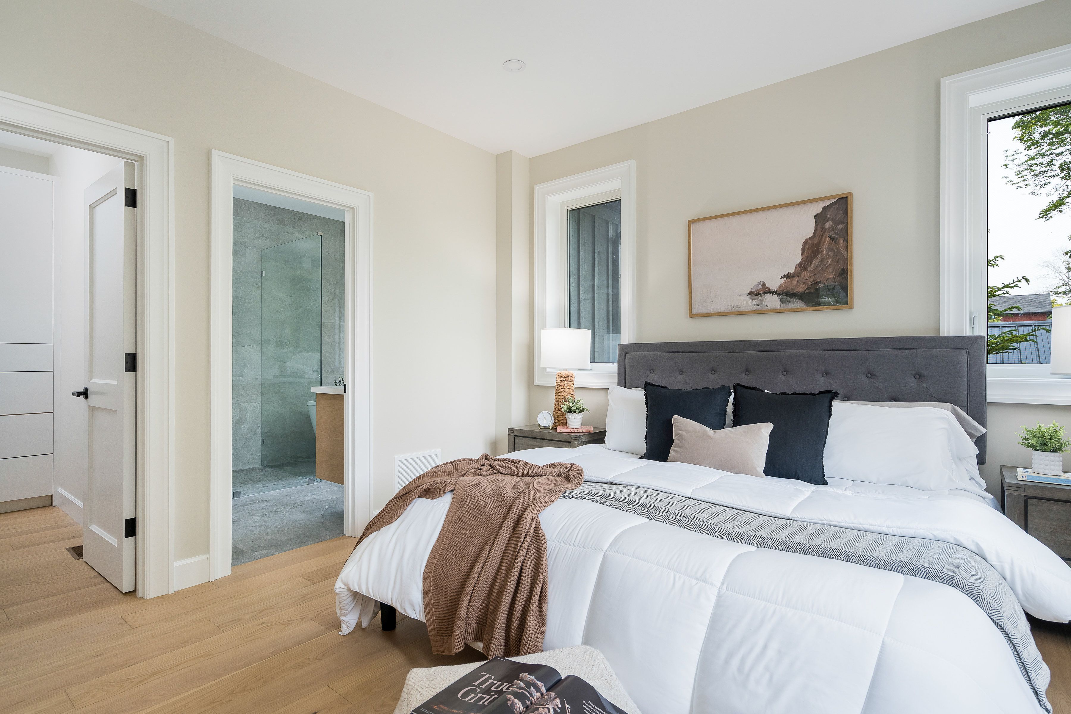 • Stylish primary suite features a custom walk-in closet and luxurious ensuite.