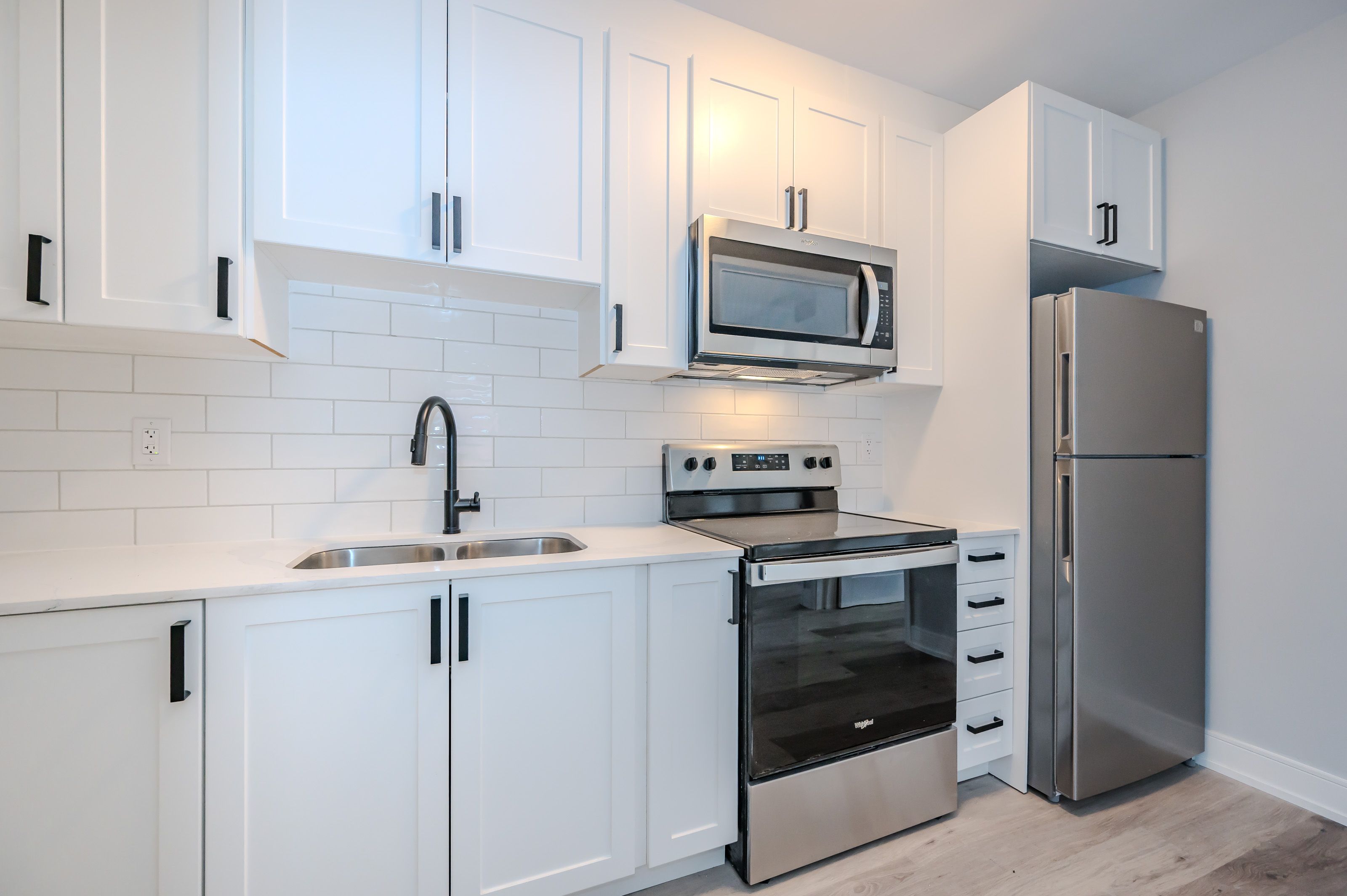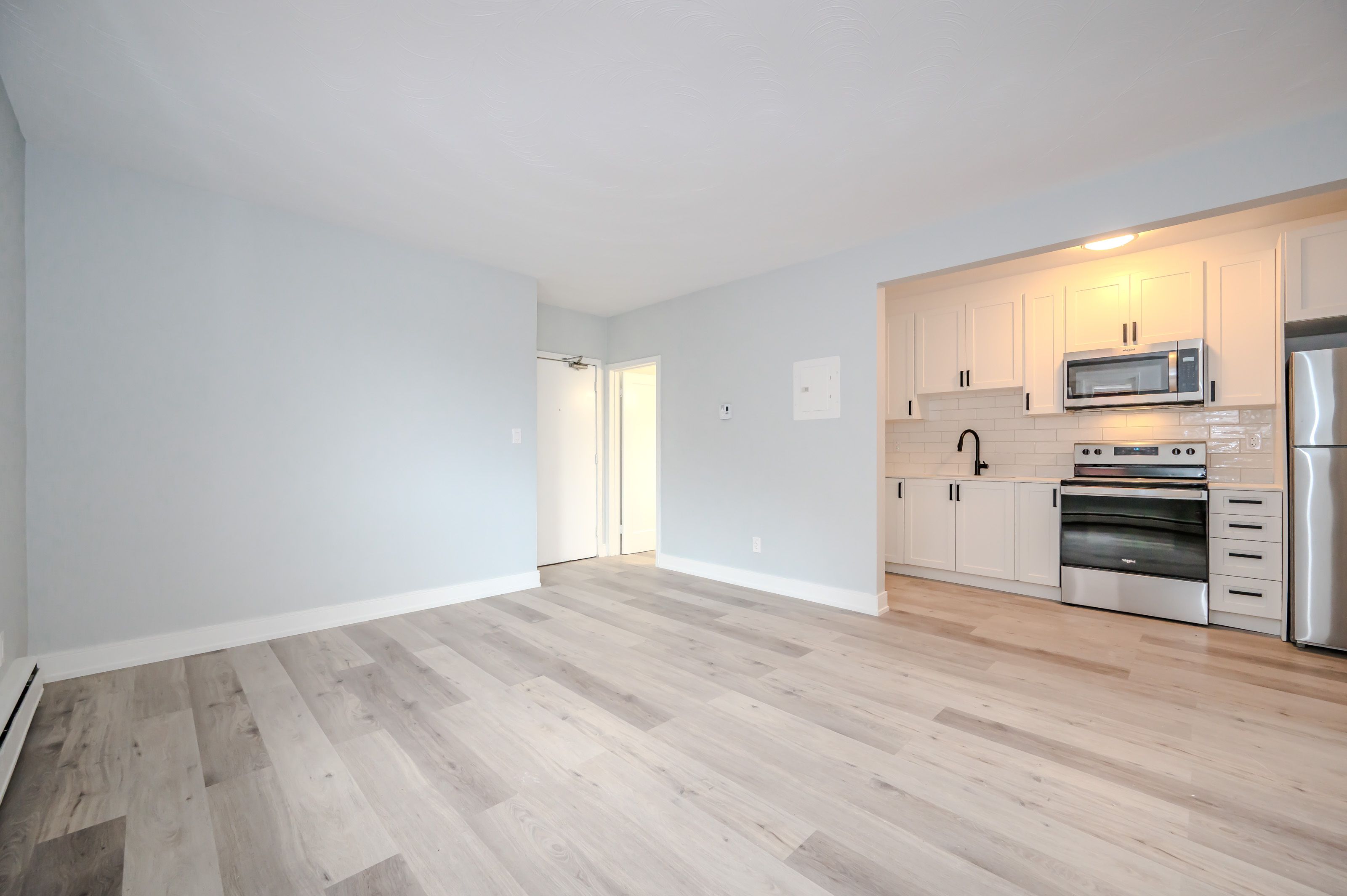 • Updated 2-bedroom apartment with modern quartz countertops and stainless steel appliances.