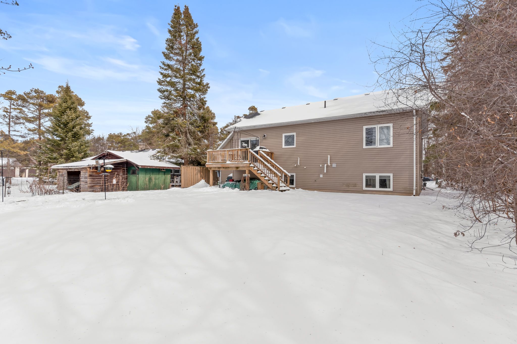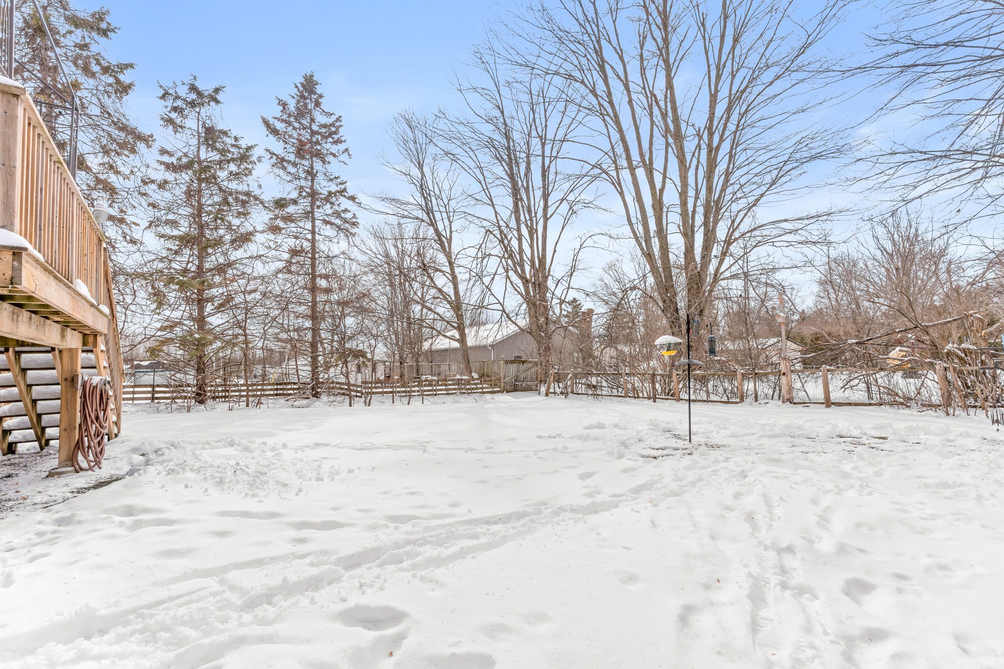 • Fully fenced backyard with a large deck, great for outdoor enjoyment.