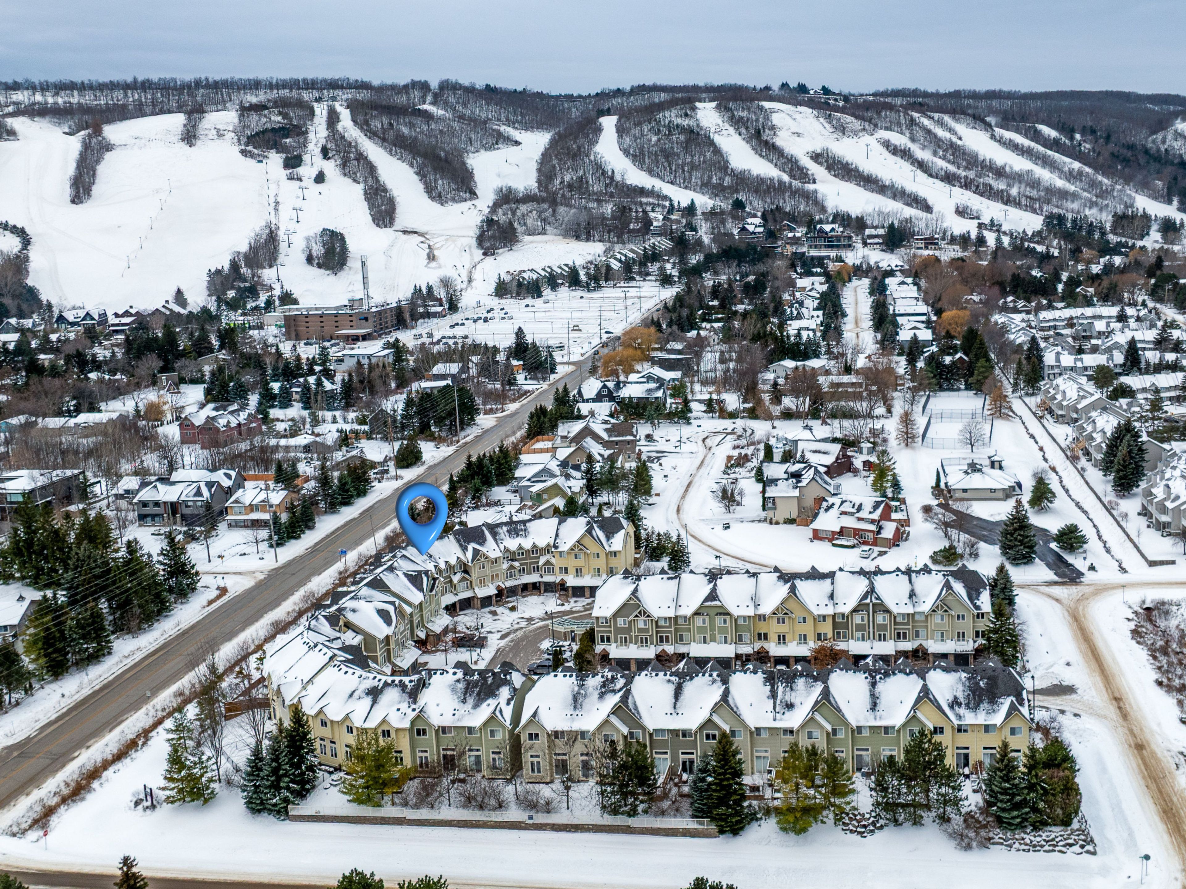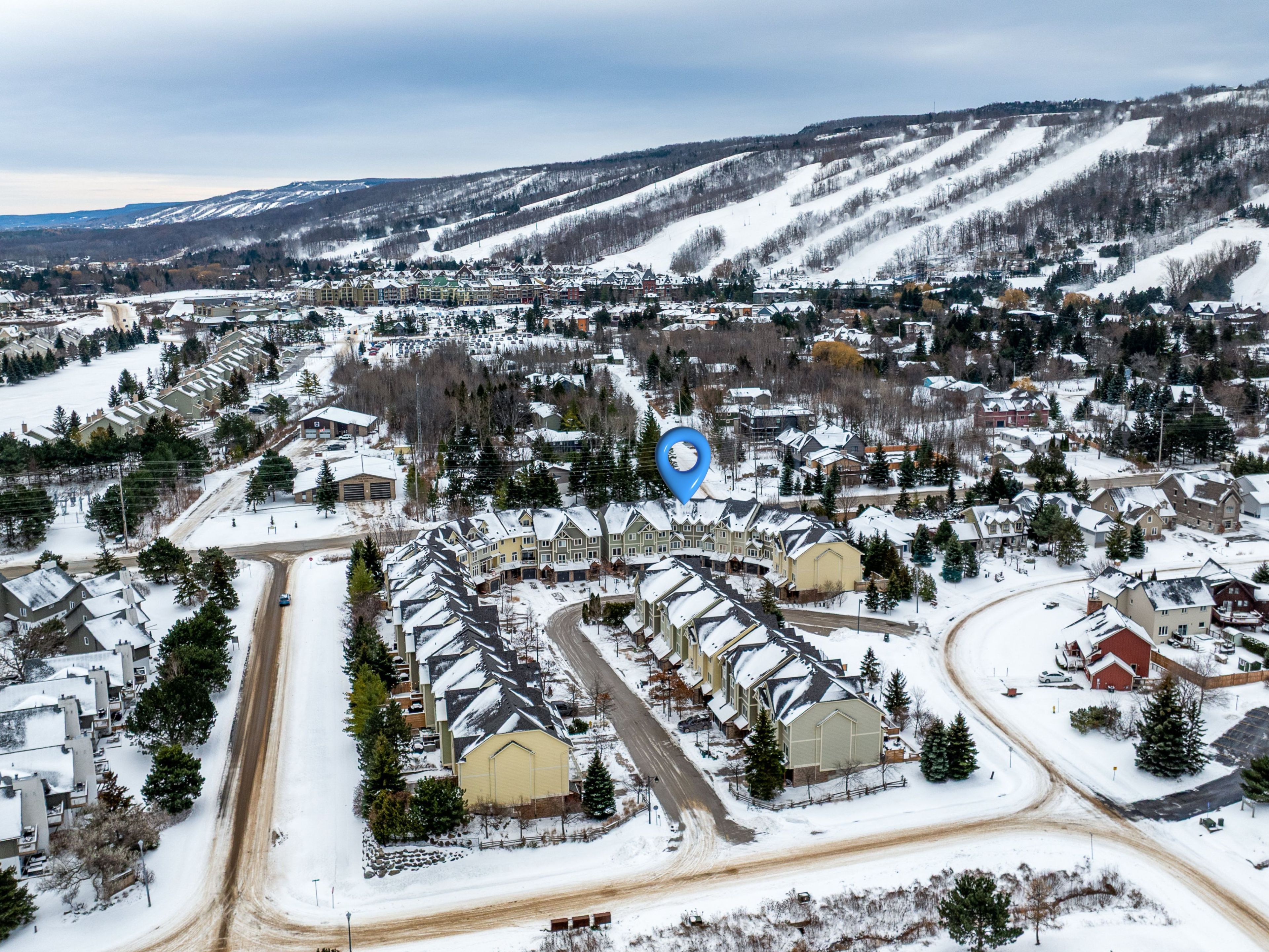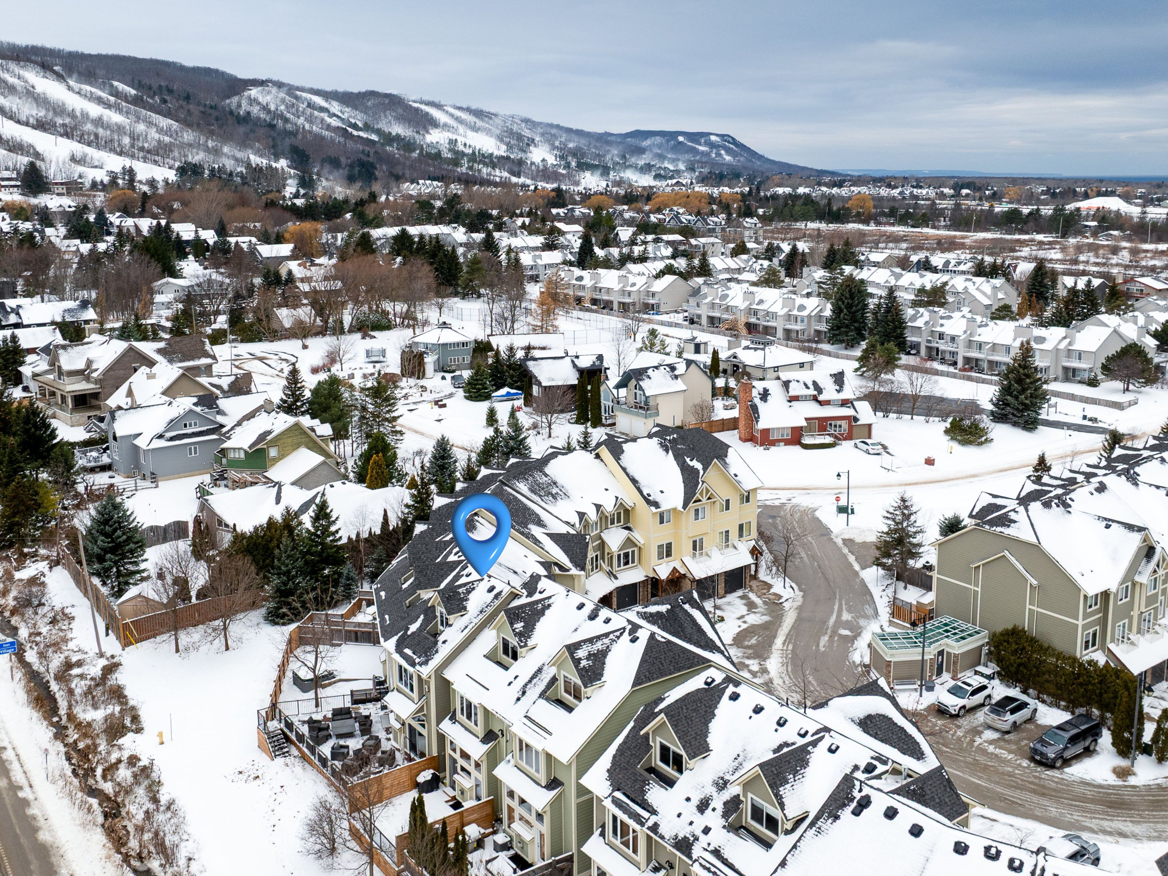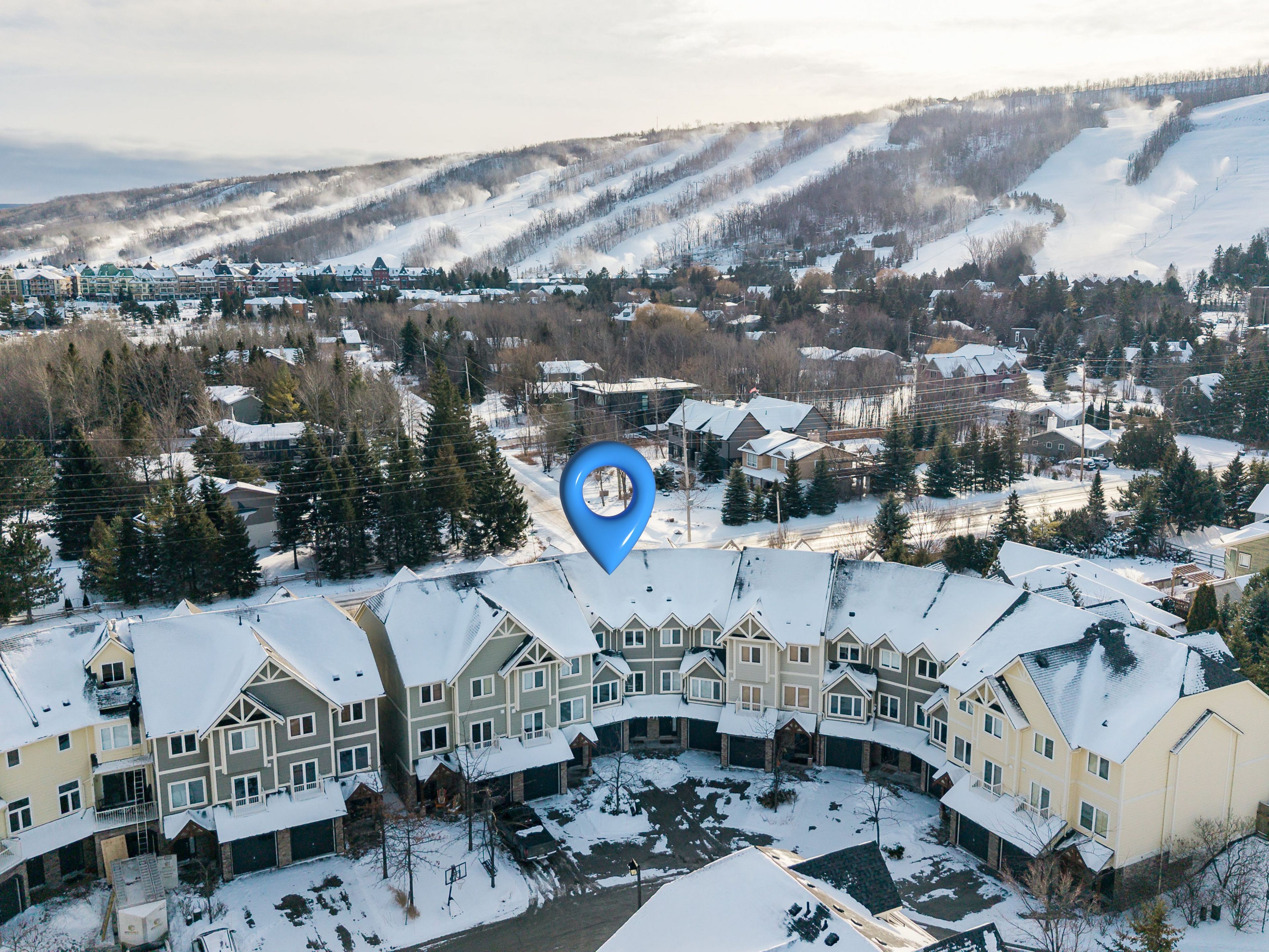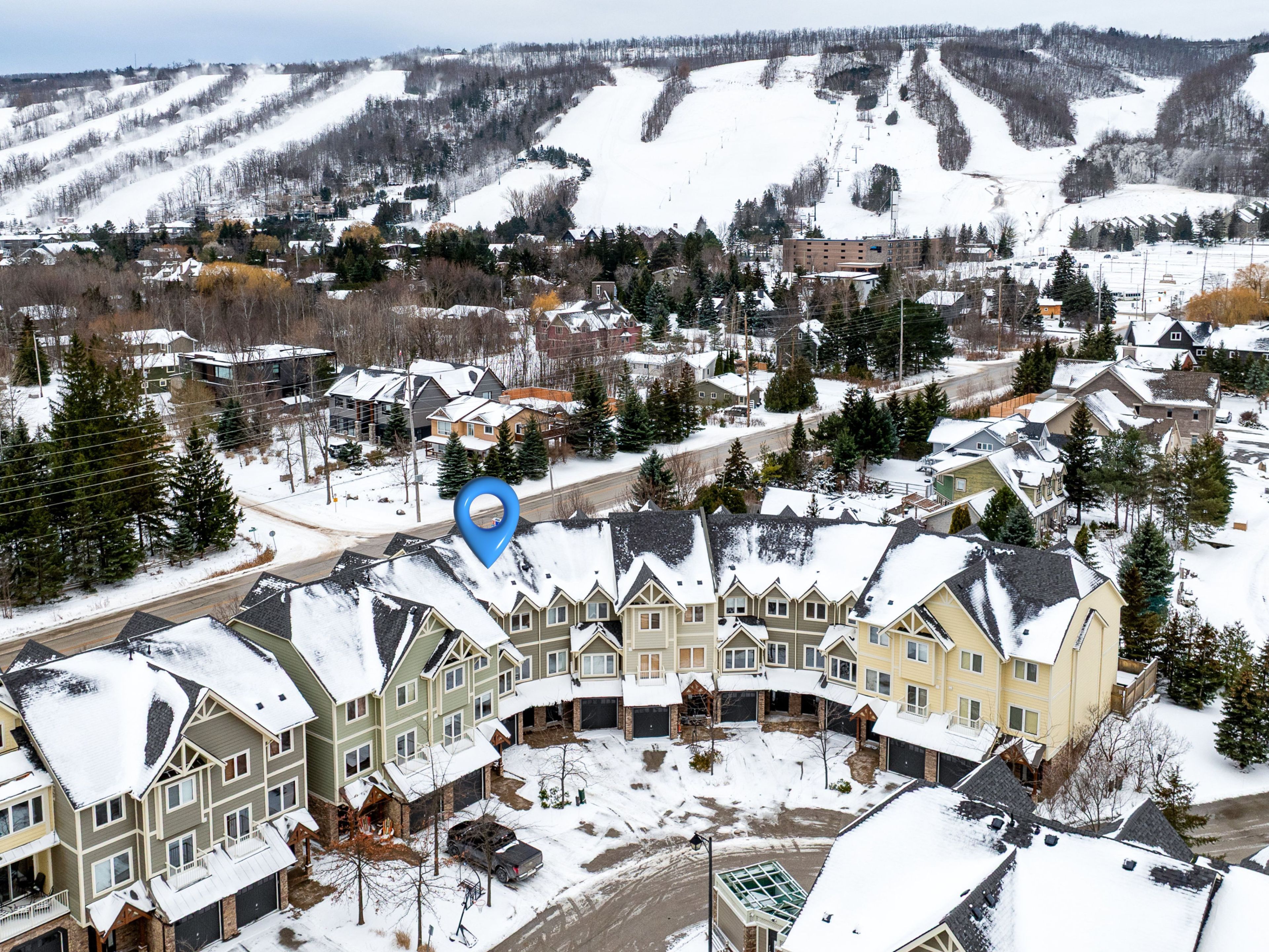 Welcome to arrowhead at blue, a 5-bedroom, 4-bath freehold townhome offering approx. 2,750 sq. Ft. Of finished living space and spectacular views of blue mountain. The open-concept kitchen and great room are filled with natural light and capture ski hill views and sunsets. Step onto the expansive 37' x 27' deck with mountain views, perfect for entertaining, après-ski gatherings, or relaxed summer evenings. A fully finished lower-level recreation room provides flexible additional space for guests, games, or movie nights. This home has been thoughtfully improved, including a steel roof (2023), triple-pane south-facing windows, an additional second patio slider (2024), and a new furnace, heat pump/air conditioner, humidifier, and tankless water heater (2024). Other upgrades include composite decking and railings (2021), deck skirting (2025), led pot lights with dimmers, under-cabinet kitchen lighting, upper-level blinds (2024), comfort-height toilets (2024), updated bedroom fixtures, and fresh interior paint with recent touch-ups. Additional features include a single-car garage with an ev charger, guest parking. Freehold ownership comes with a low monthly common elements fee covering lawn and garden care, snow removal, garbage and recycling removal, visitor parking, and high-speed internet and cable through rogers. Cherished by the current owners for eight years, this home has been the centre of family gatherings in every season-christmas mornings, ski weekends, thanksgiving dinners, and summer adventures and loved for its incredible views, spacious layout, proximity to the georgian trail, dog park, playground, and the shops and restaurants of collingwood and thornbury. A well-maintained, move-in-ready home offering comfort, space, and true four-season living.