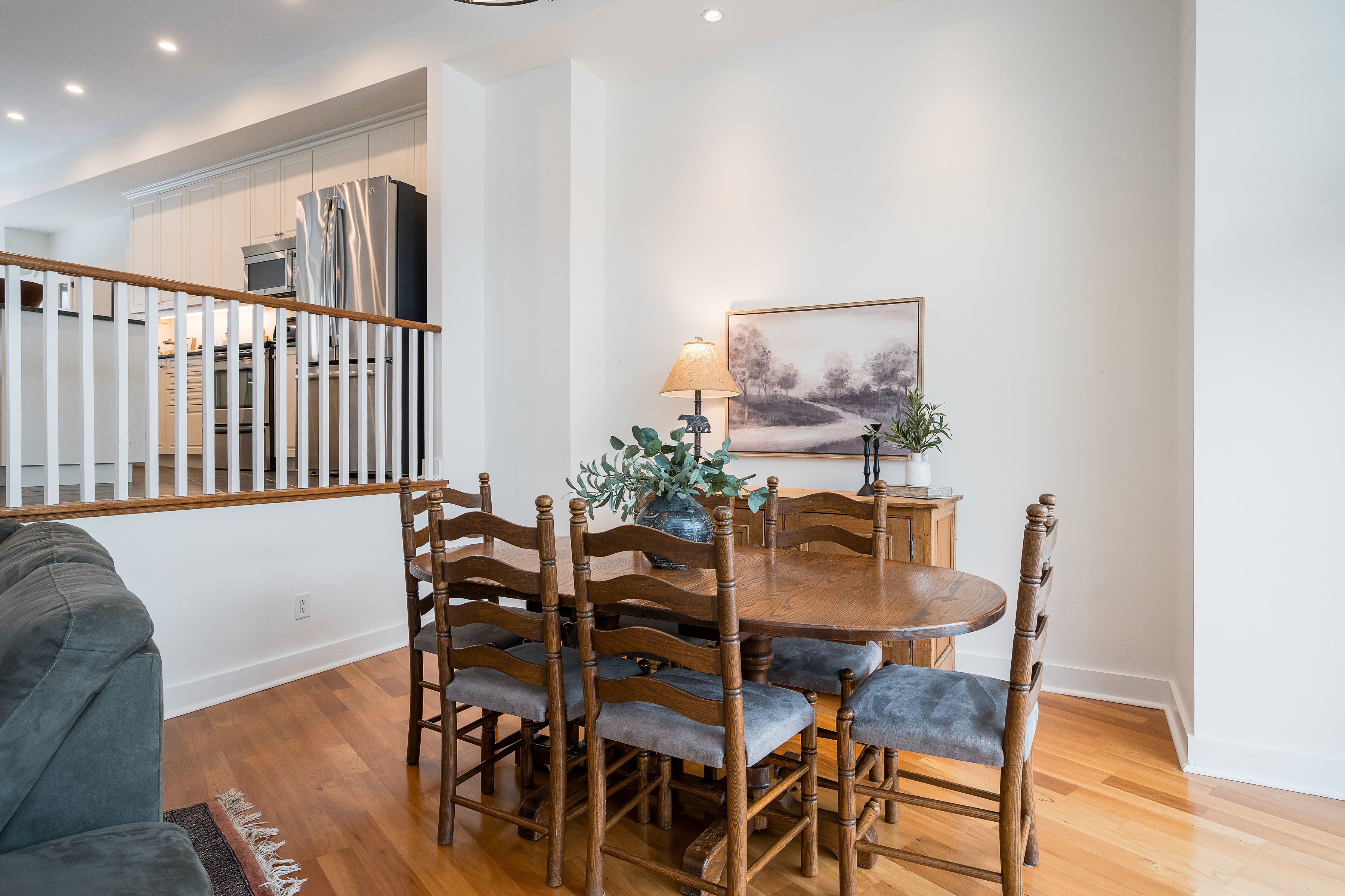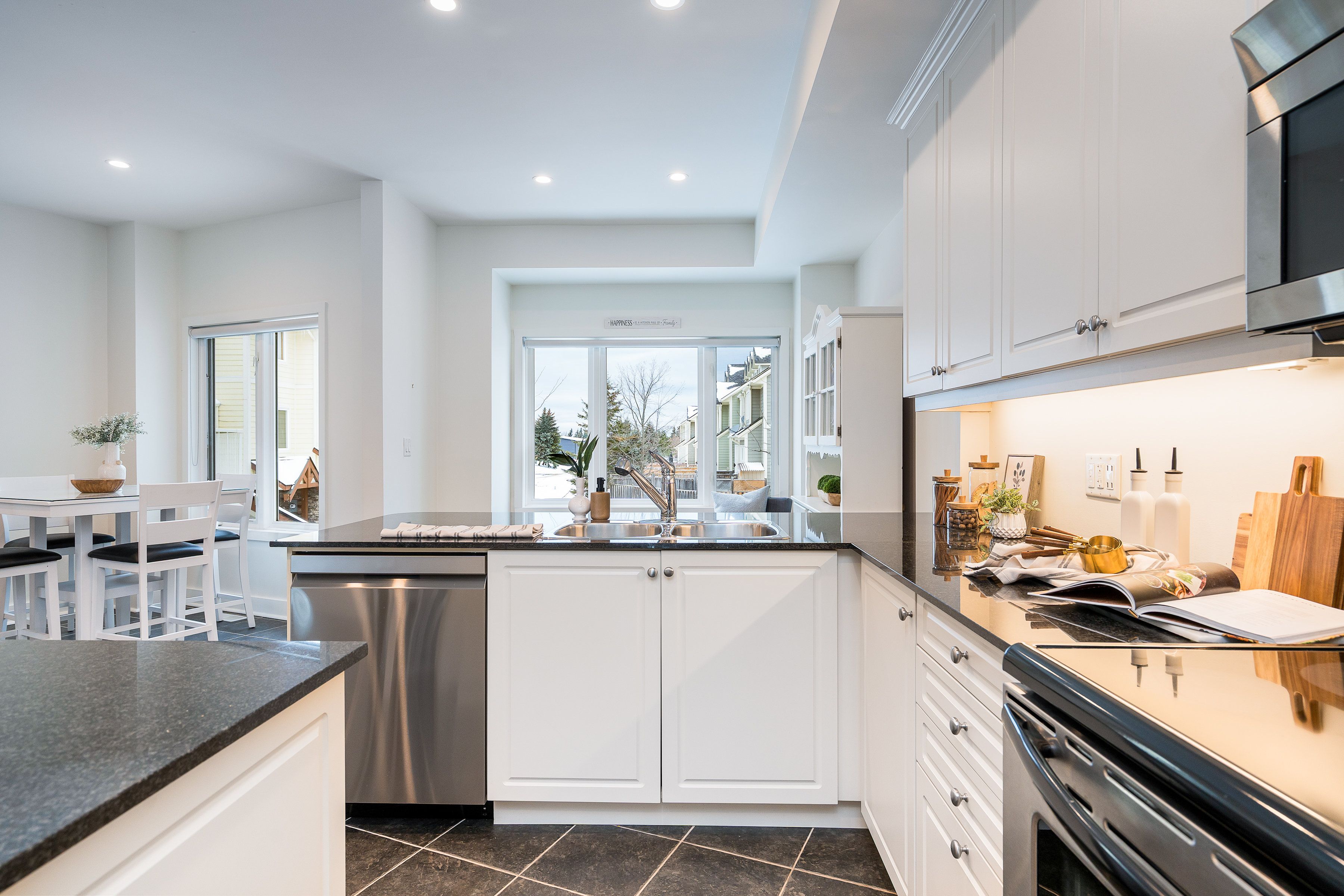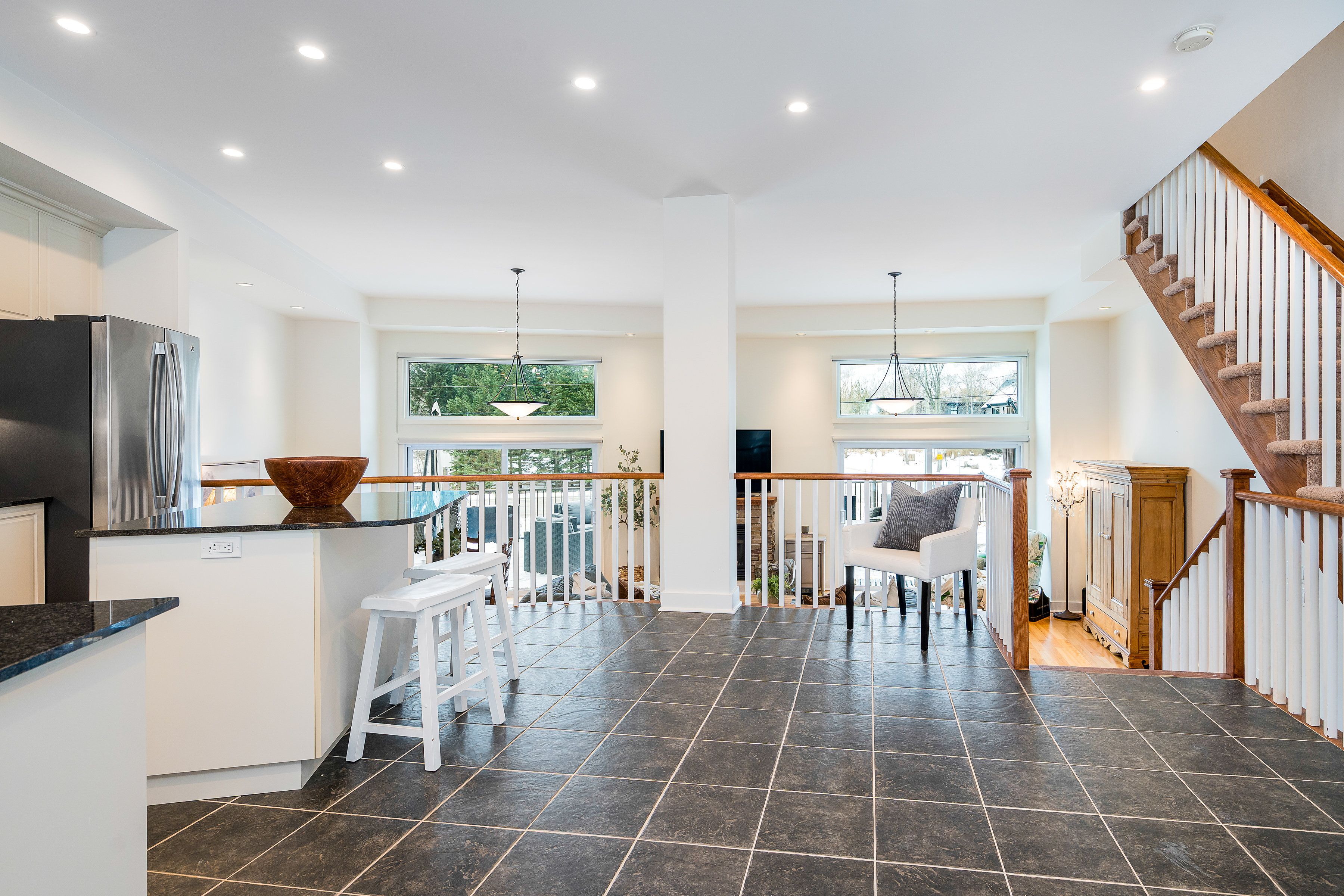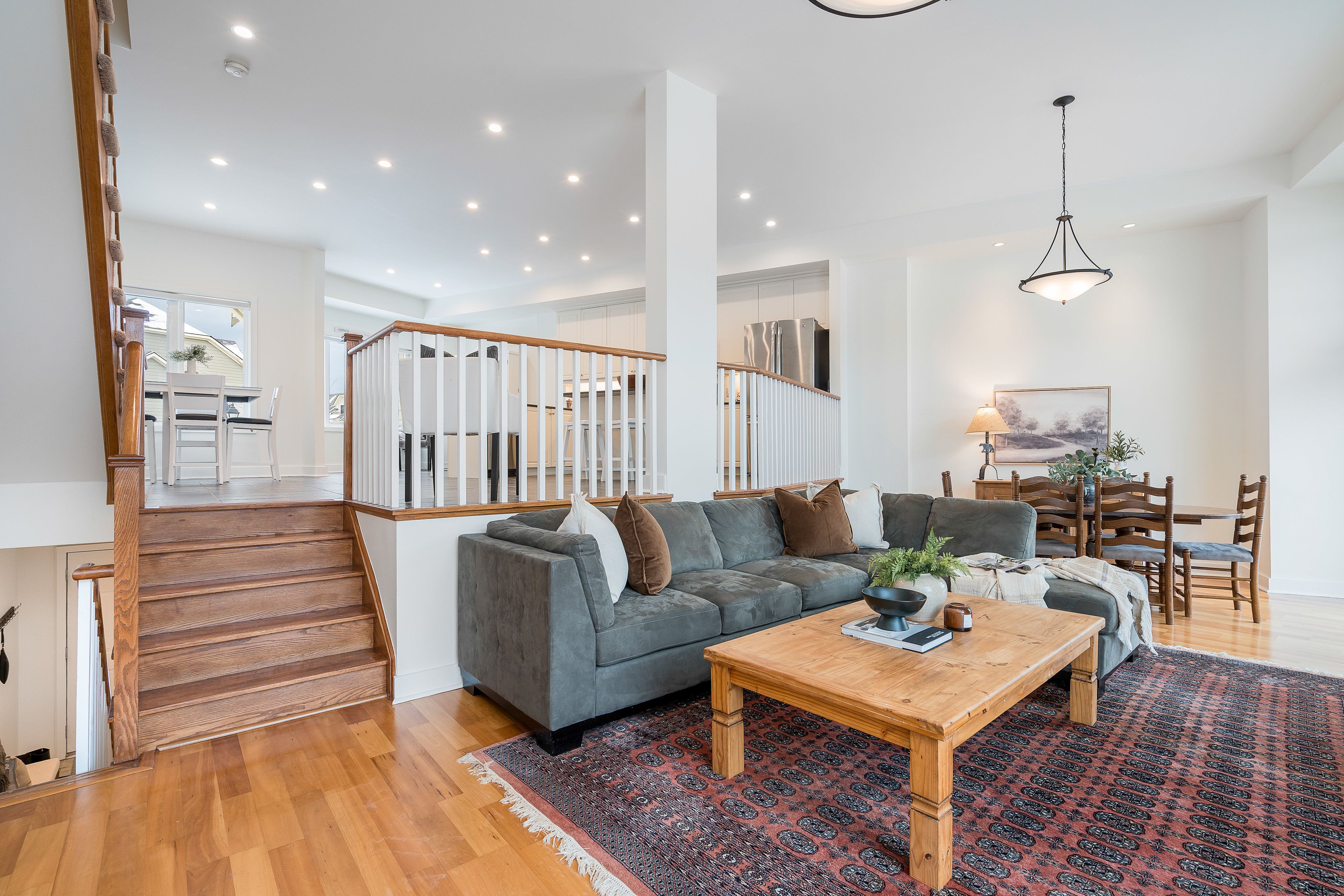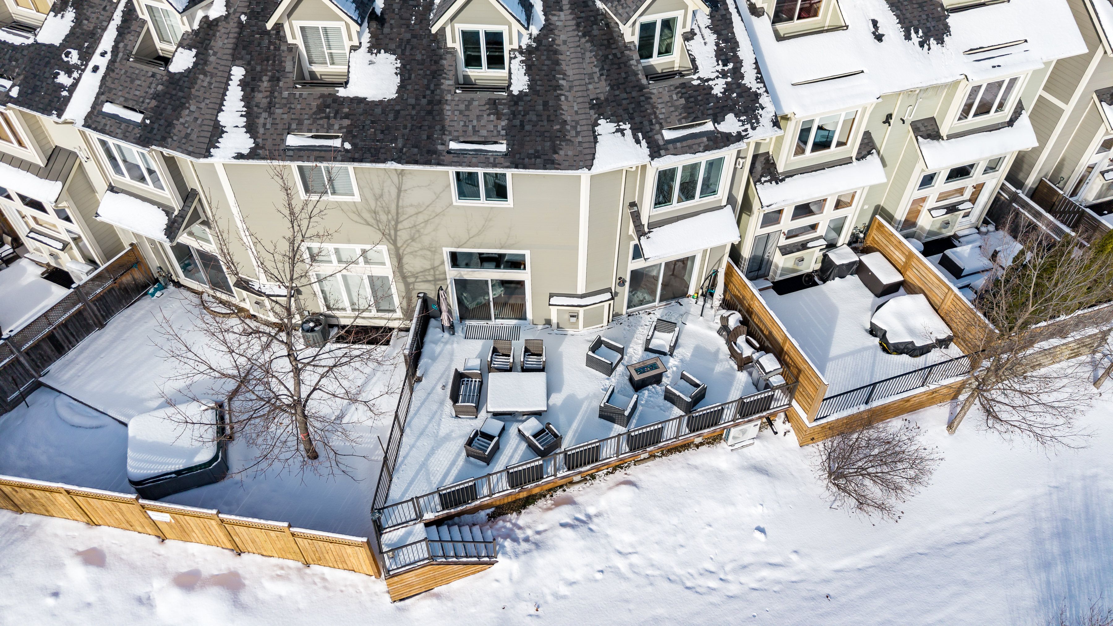 Welcome to arrowhead at blue, a 5-bedroom, 4-bath freehold townhome offering approx. 2,750 sq. Ft. Of finished living space and spectacular views of blue mountain. The open-concept kitchen and great room are filled with natural light and capture ski hill views and sunsets. Step onto the expansive 37' x 27' deck with mountain views, perfect for entertaining, après-ski gatherings, or relaxed summer evenings. A fully finished lower-level recreation room provides flexible additional space for guests, games, or movie nights. This home has been thoughtfully improved, including a steel roof (2023), triple-pane south-facing windows, an additional second patio slider (2024), and a new furnace, heat pump/air conditioner, humidifier, and tankless water heater (2024). Other upgrades include composite decking and railings (2021), deck skirting (2025), led pot lights with dimmers, under-cabinet kitchen lighting, upper-level blinds (2024), comfort-height toilets (2024), updated bedroom fixtures, and fresh interior paint with recent touch-ups. Additional features include a single-car garage with an ev charger, guest parking. Freehold ownership comes with a low monthly common elements fee covering lawn and garden care, snow removal, garbage and recycling removal, visitor parking, and high-speed internet and cable through rogers. Cherished by the current owners for eight years, this home has been the centre of family gatherings in every season-christmas mornings, ski weekends, thanksgiving dinners, and summer adventures and loved for its incredible views, spacious layout, proximity to the georgian trail, dog park, playground, and the shops and restaurants of collingwood and thornbury. A well-maintained, move-in-ready home offering comfort, space, and true four-season living.
