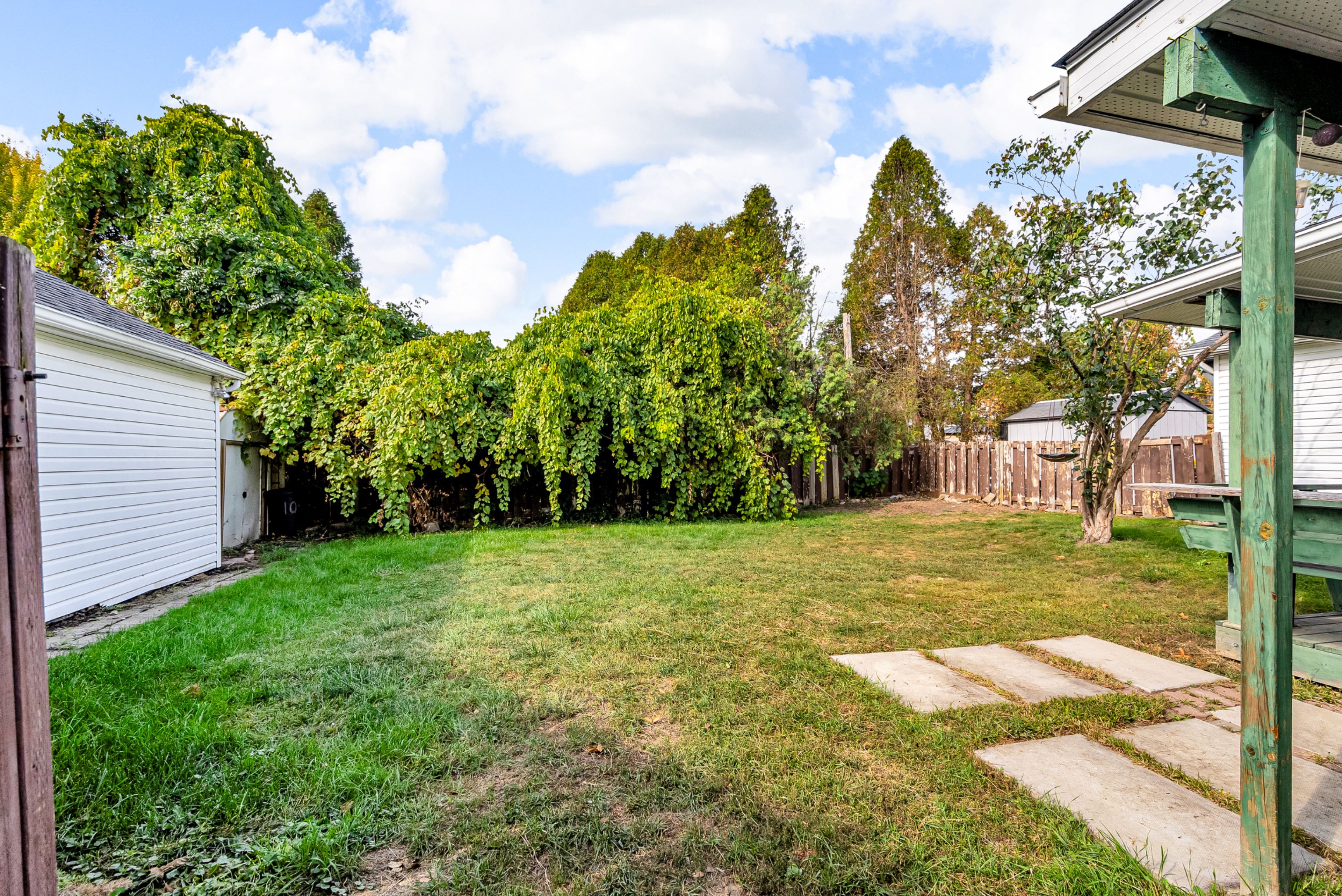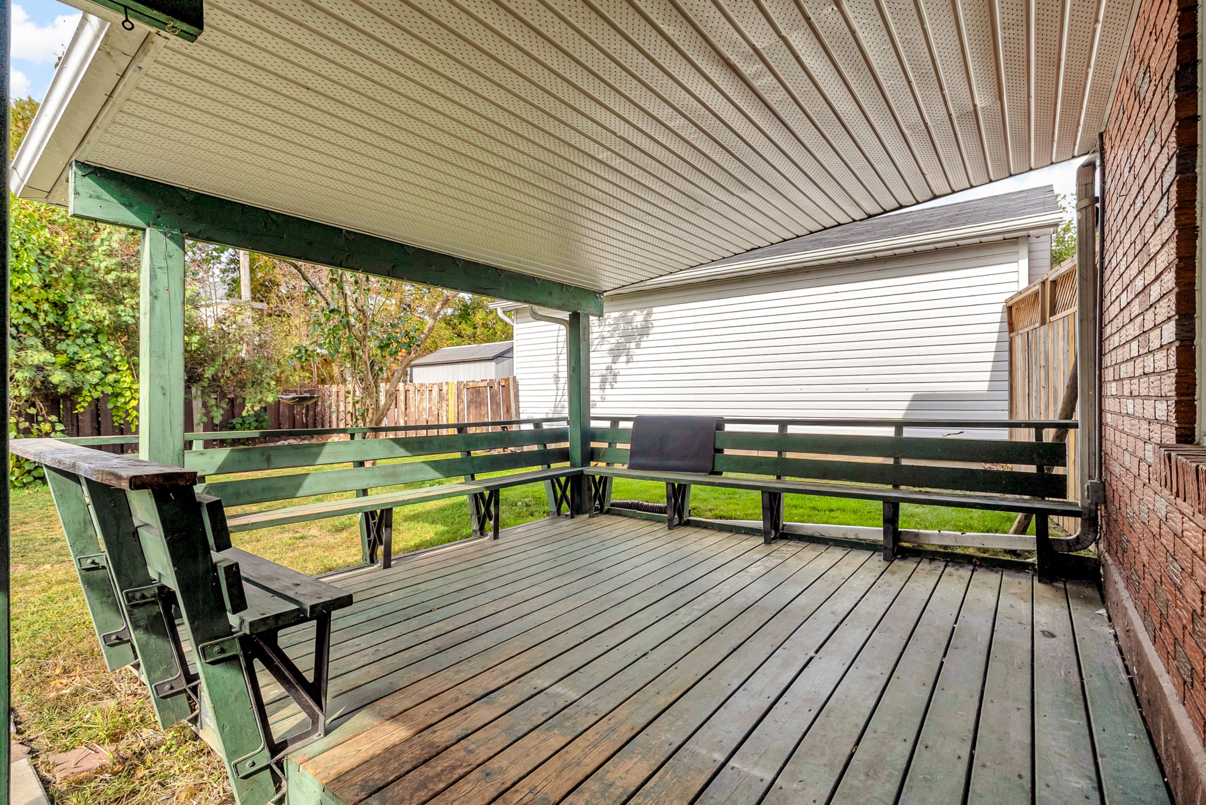 • Covered patio overlooking fenced backyard, perfect for relaxing or hosting.