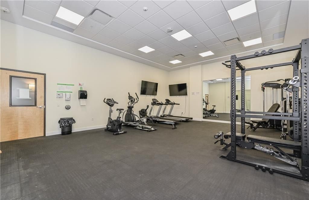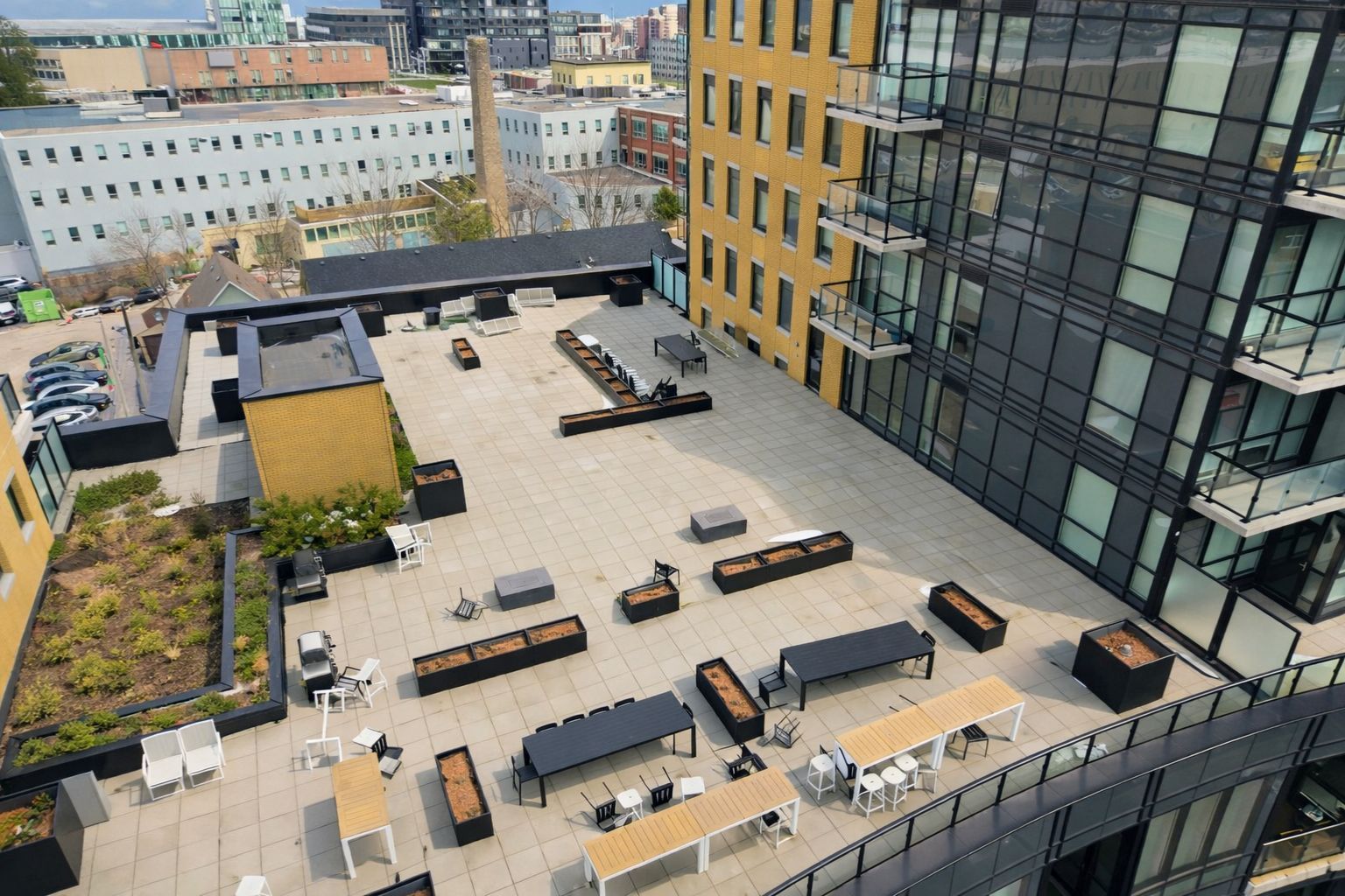 • Floor-to-ceiling windows offer natural light and city views.