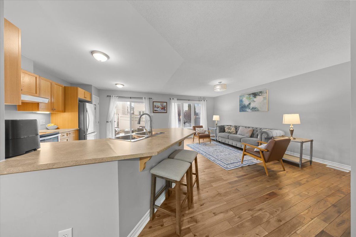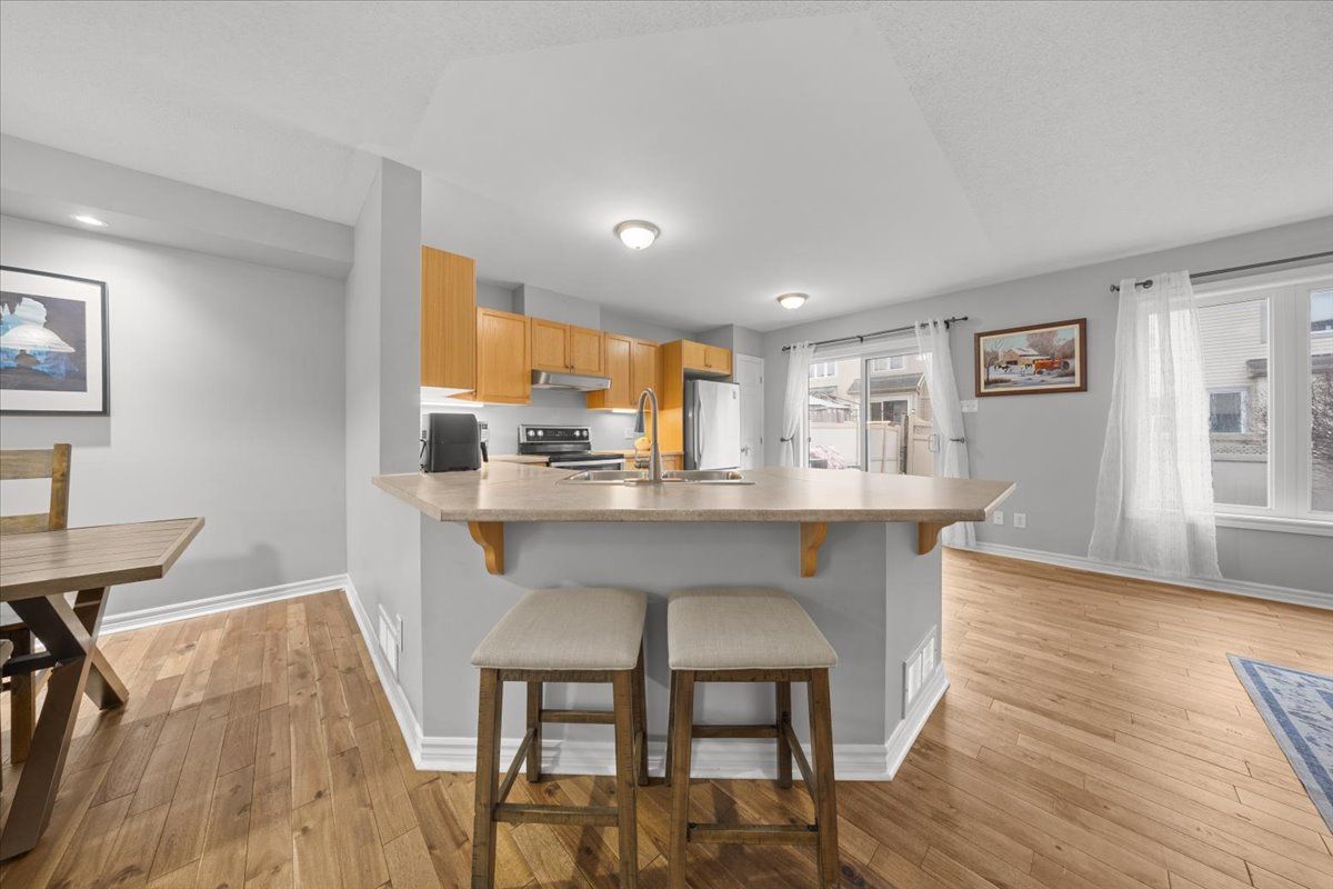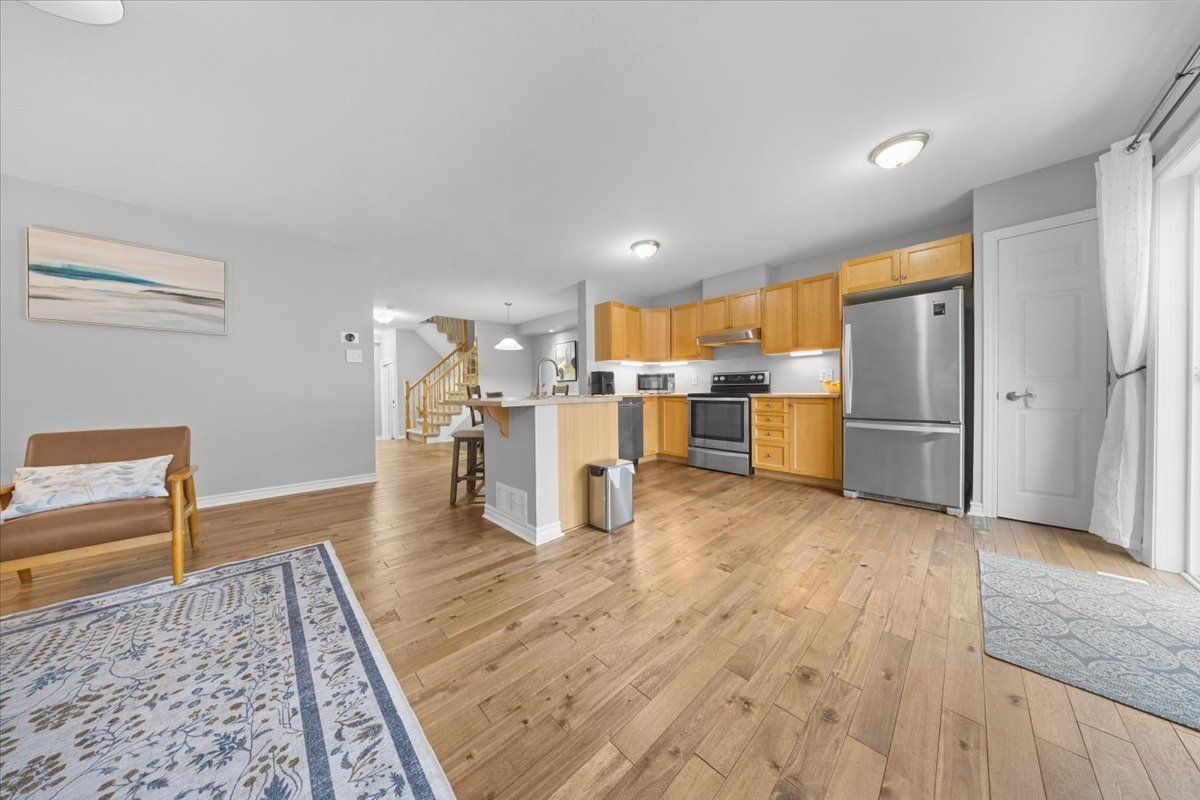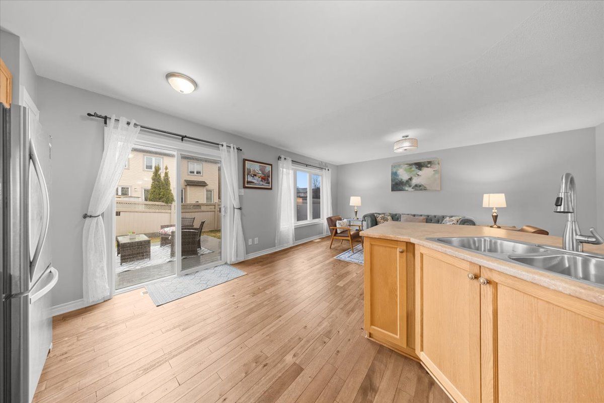Welcome to this beautifully maintained 3-bedroom, 3-bathroom townhome in the desirable fairwinds community, perfectly situated on a quiet street yet close to all amenities, parks, and with easy access to the 417. The main level features warm hardwood flooring throughout and an open-concept design ideal for modern living and entertaining. Enjoy gatherings in the spacious living room, host dinners in the large dining area, and cook up a storm in the kitchen, complete with ample cabinetry and a convenient breakfast bar overlooking the backyard. A powder room and inside access to the garage complete this floor. Upstairs, you'll find a bright and airy primary bedroom with a walk-in closet and ensuite bath, complemented by two generous secondary bedrooms, all filled with natural light, as well as a full bathroom and a handy laundry room for added convenience. The lower level boasts a large recreation room perfect for a playroom, media area, or home gym, along with utility, storage, and laundry spaces that add to the homes functionality and comfort. Outside, the private fenced backyard features a spacious composite deck overlooking a well-maintained lawn, ideal for summer bbq's and outdoor entertaining. This home truly combines comfort, style, and practicality, making it the perfect place to settle in and enjoy all that fairwinds has to offer. Roof (2025) ac/furnace (2024).