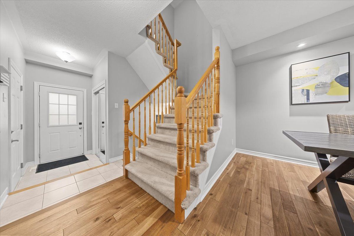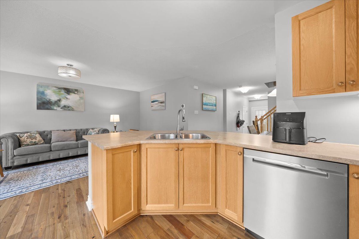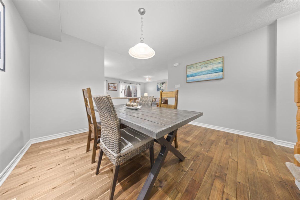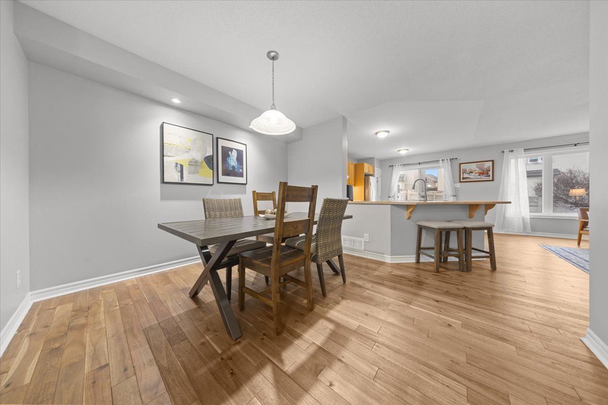 Welcome to this beautifully maintained 3-bedroom, 3-bathroom townhome in the desirable fairwinds community, perfectly situated on a quiet street yet close to all amenities, parks, and with easy access to the 417. The main level features warm hardwood flooring throughout and an open-concept design ideal for modern living and entertaining. Enjoy gatherings in the spacious living room, host dinners in the large dining area, and cook up a storm in the kitchen, complete with ample cabinetry and a convenient breakfast bar overlooking the backyard. A powder room and inside access to the garage complete this floor. Upstairs, you'll find a bright and airy primary bedroom with a walk-in closet and ensuite bath, complemented by two generous secondary bedrooms, all filled with natural light, as well as a full bathroom and a handy laundry room for added convenience. The lower level boasts a large recreation room perfect for a playroom, media area, or home gym, along with utility, storage, and laundry spaces that add to the homes functionality and comfort. Outside, the private fenced backyard features a spacious composite deck overlooking a well-maintained lawn, ideal for summer bbq's and outdoor entertaining. This home truly combines comfort, style, and practicality, making it the perfect place to settle in and enjoy all that fairwinds has to offer. Roof (2025) ac/furnace (2024).