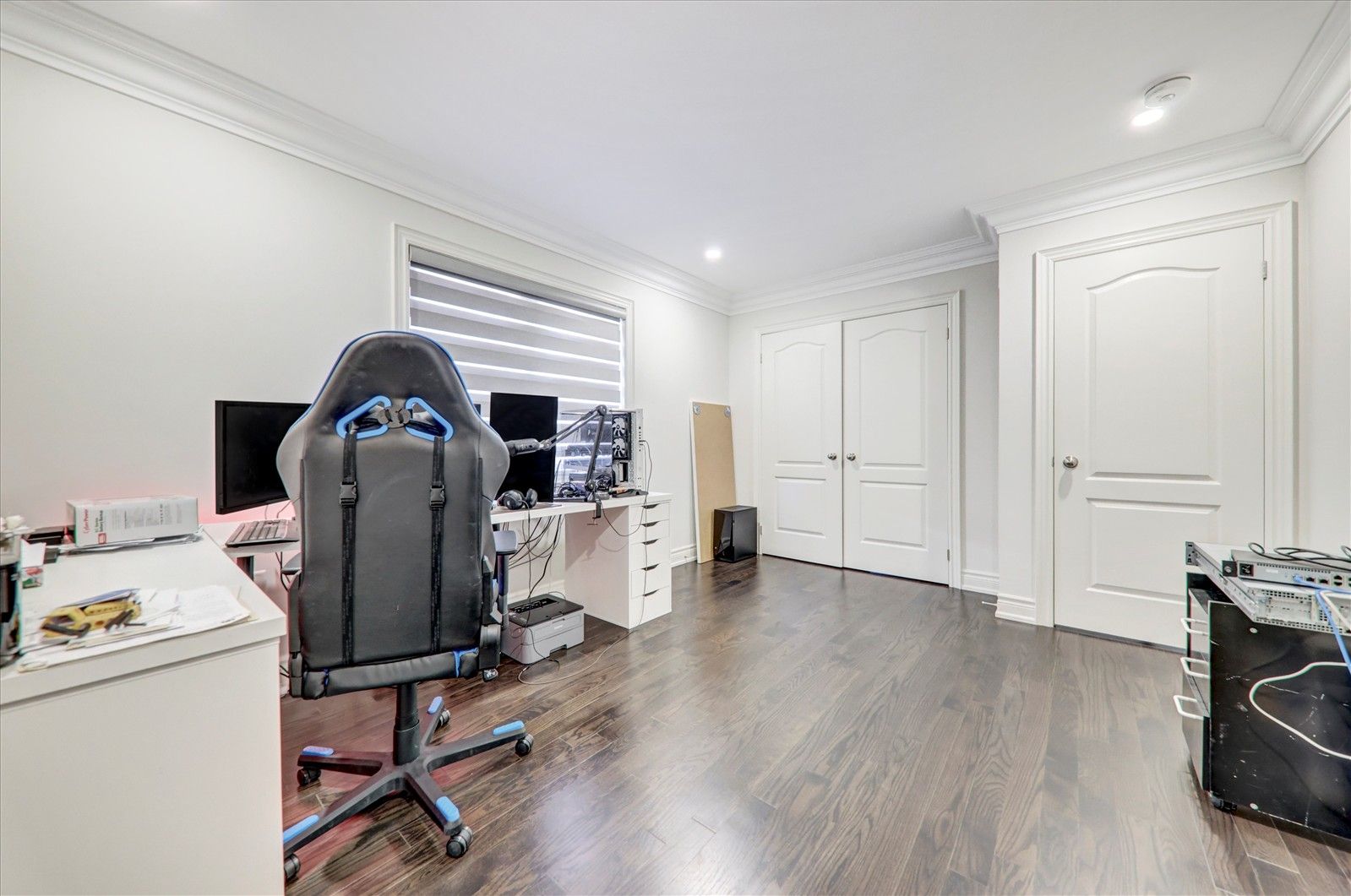 Nestled in a highly sought-after, family-friendly neighbourhood, this meticulously maintained 4-bedroom + loft home offers 3,110 sq. Ft. Of living space on a rare oversized pie-shaped lot. The property features stunning stone landscaping and beautiful curb appeal. The open-concept main floor boasts a formal dining area and a gourmet kitchen with quartz countertops and a walkout to a sun-filled backyard. The inviting family room showcases a cozy gas fireplace, while the bonus main-floor office with a large picture window is ideal for working from home. Hardwood floors, crown moulding, wainscoting, and pot lights are found throughout. The private, fully fenced yard is perfect for relaxing or entertaining family and friends. Located close to all major amenities, including costco, movie theatres, upper canada mall, restaurants, shopping plazas, and with easy access to highways 404 and 400.