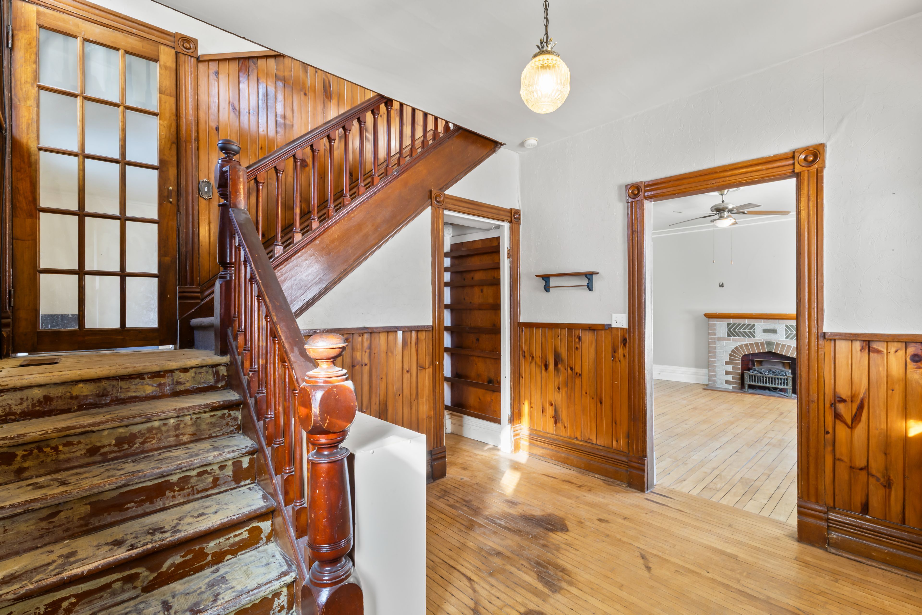 Charming character home filled with warmth, space, and potential. This 3-bedroom, 2-bathroom property showcases beautiful original woodwork, hardwood floors, and a classic staircase that immediately welcomes you inside. The main floor features generous living and dining areas with large windows, creating bright, inviting spaces ideal for everyday living or entertaining. The kitchen offers ample cabinetry and connects easily to the dining area, with sightlines that make hosting effortless. A practical laundry area and full bathroom add convenience, while thoughtful storage is found throughout the home. Upstairs, you'll find three well-proportioned bedrooms and a second bathroom, along with access to a versatile attic space-perfect for storage or future development ideas. Outside, the property includes a private yard, offering room to relax or garden. Full of character and opportunity, this home is ideal for buyers looking to personalize a solid, well-laid-out property with timeless appeal.