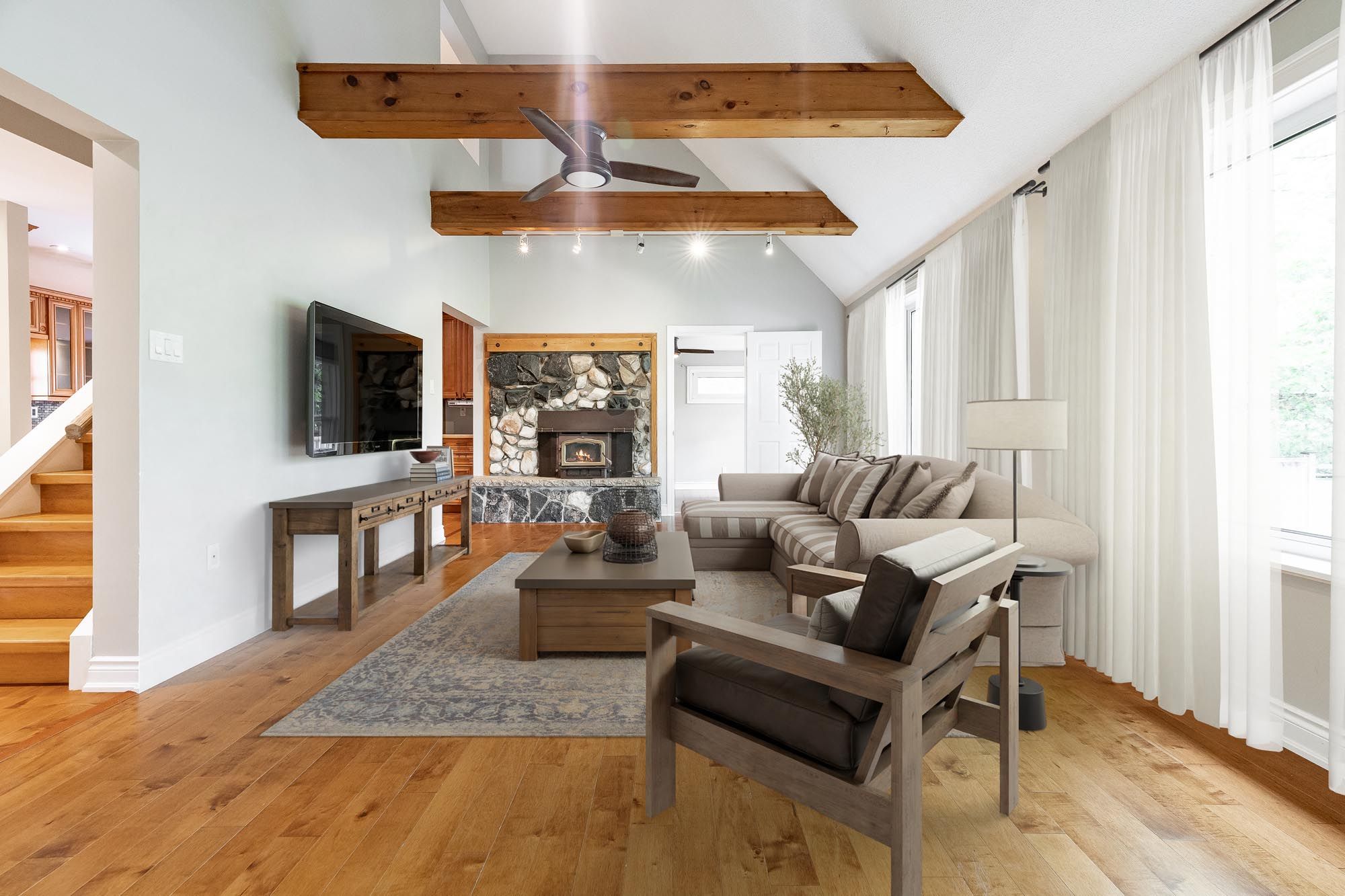 Top 5 reasons you will love this home: 1) enjoy a generous 50'x230' lot with over 50' of waterfront, spacious backyard areas perfect for entertaining, relaxing, or heading down the stairs to kayak, boat, fish, or simply take in the river views 2) this detached 2-storey home with a finished basement features a welcoming covered front deck, main level laundry, a bright bedroom with walkout to the backyard, and a renovated4-piece bathroom with a soaker tub and separate shower for added comfort 3) the kitchen includes stainless-steel appliances, a pantry, and dining space, while the living room offers a cozy wood fireplace with a stone surround and oversized windows showcasing peaceful backyard and river views; upstairs, the primary bedroom has a walkout to a large balcony overlooking the water, plus a third bedroom and another 4-piece bathroom, great for guests or extended family 4) expansive basement hosting a large family room, a recreation area with rough-in for a kitchen or wet bar, a fourth bedroom, another full bathroom, and an oversized cold room ideal for extra storage 5) set on a quiet street ending in a cul-de-sac, this home offers peace and privacy close to schools, shops, golf, ski hills, and the sandy beaches of georgian bay, while still being a convenient commute to barrie and the gta. 1,743 above grade sq. Ft. Plus a finished basement. *please note some images have been virtually staged to show the potential of the home.
