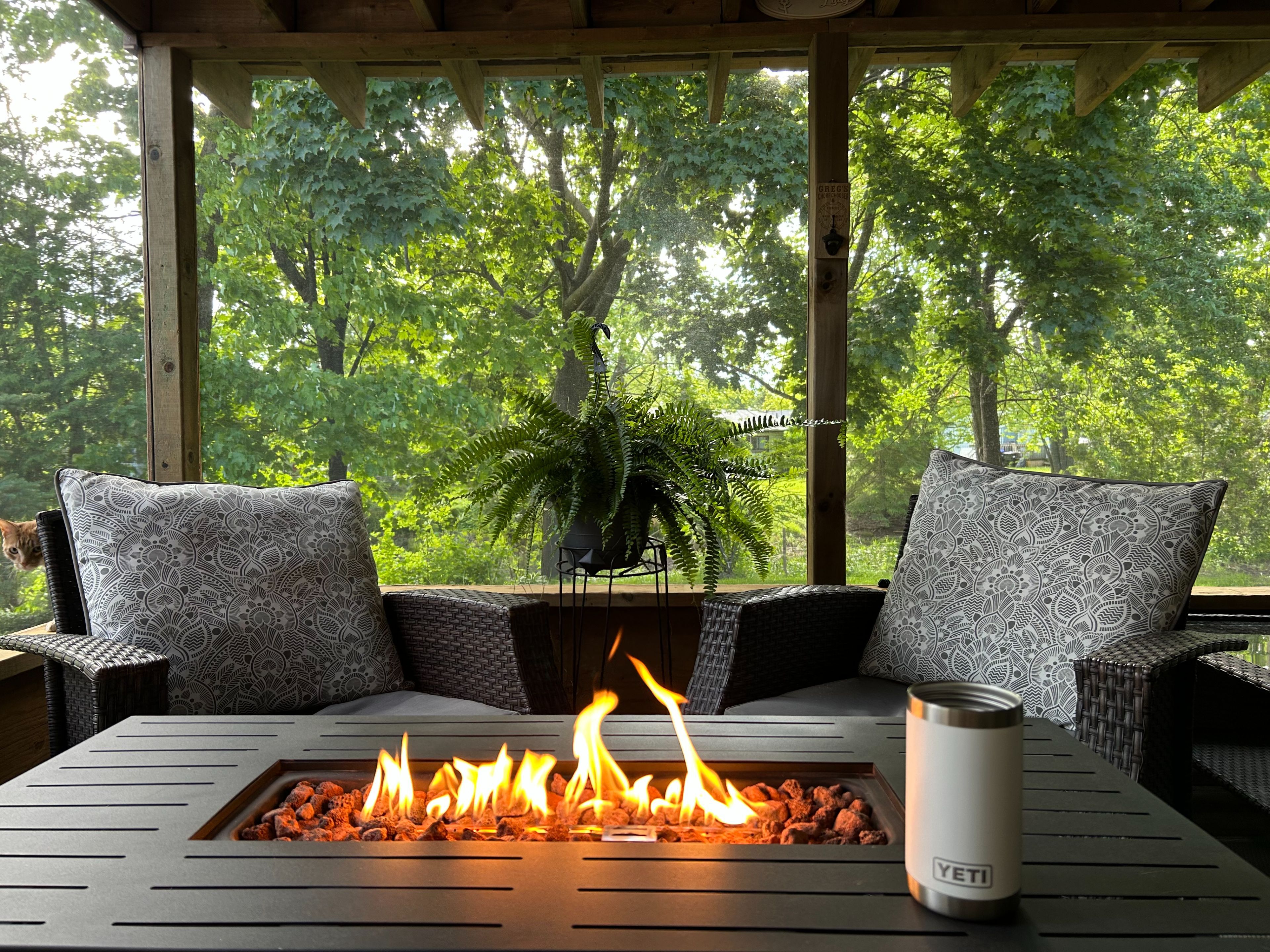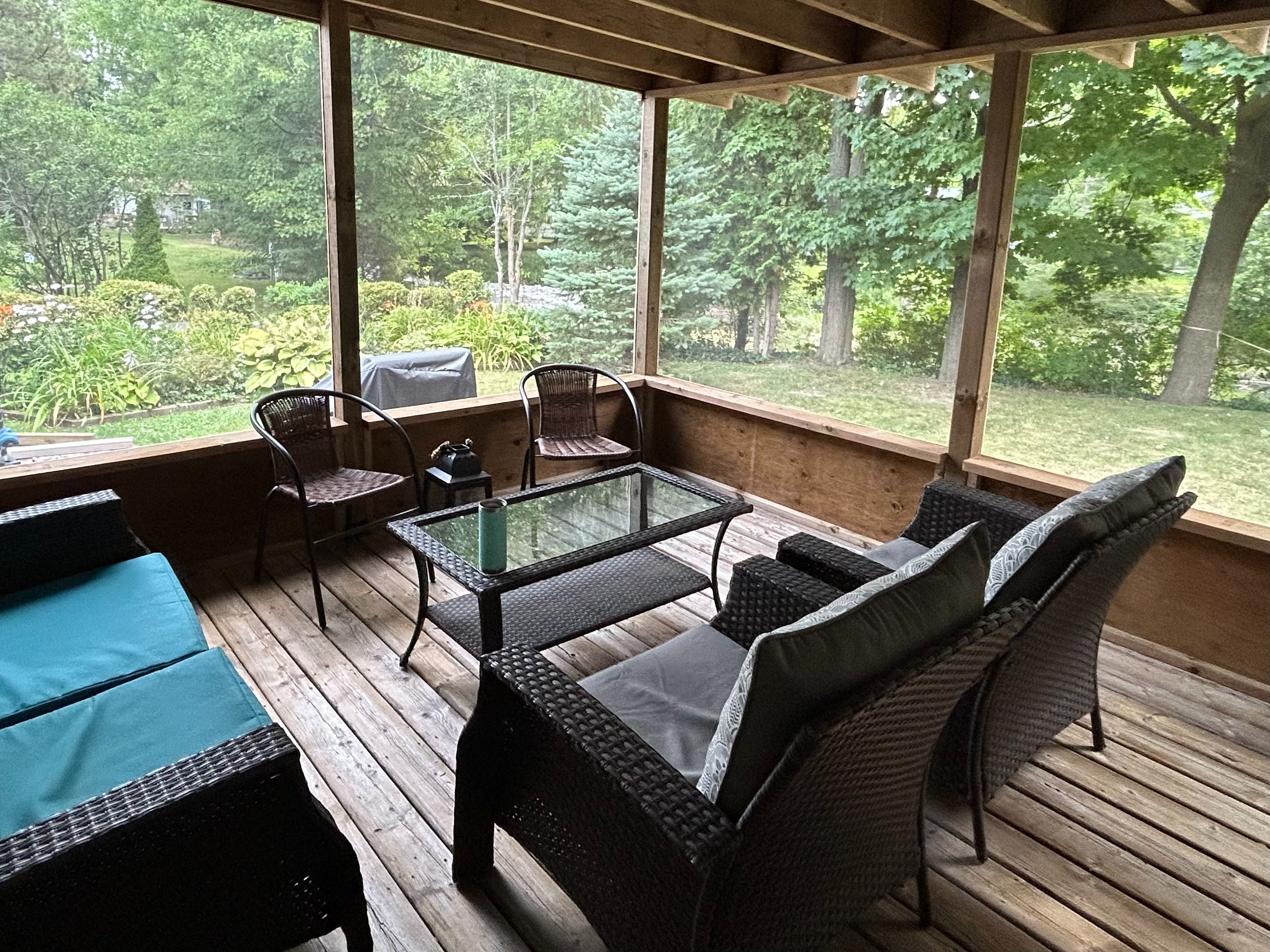• Screened-in deck with pond views, perfect for relaxation.