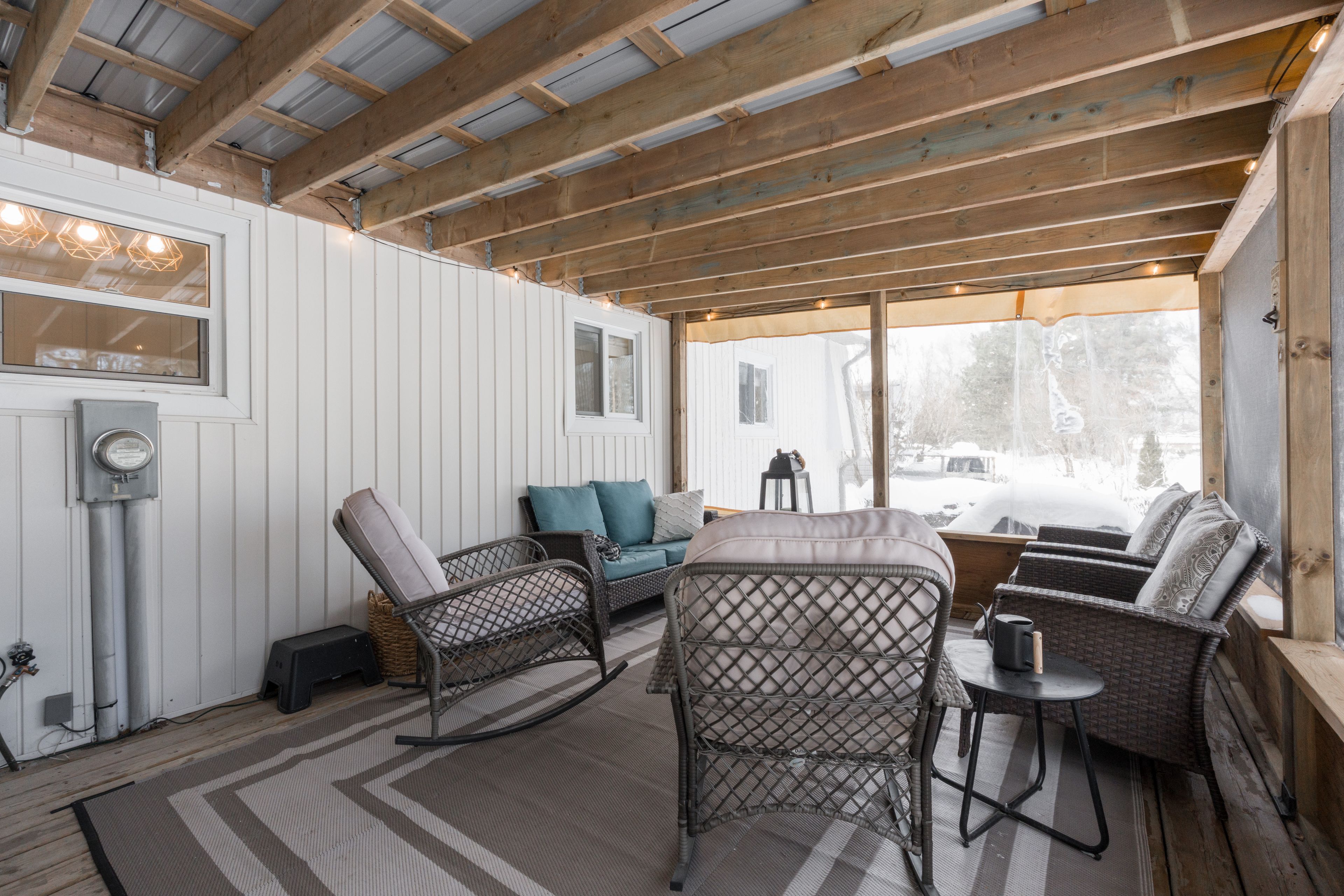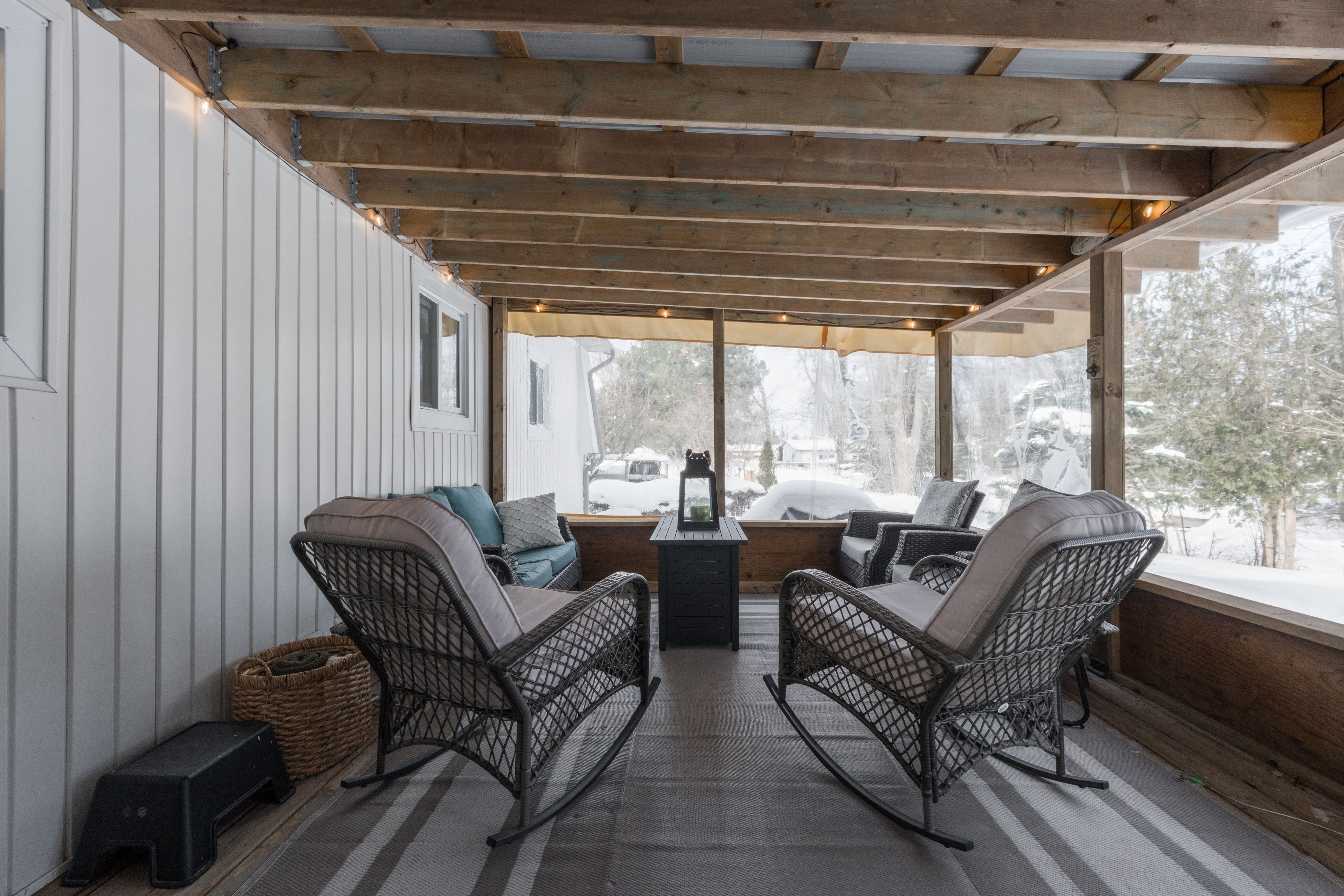 Welcome to 104 linden lane, a beautifully renovated monaco model set on a premium lot with pond in innisfil's highly sought-after sandycove community. Fully updated in 2023 with over $130,000 in upgrades, this move-in-ready home offers effortless one-level living in a vibrant, amenity-rich neighbourhood. The thoughtfully designed layout features a bright, freshly painted interior with newer luxury vinyl flooring, an updated kitchen with stainless steel appliances that opens to a spacious formal dining room. Relax in the expansive living room with oversized windows and a cozy gas fireplace, or unwind in the sun-filled family room with bay windows, a second gas fireplace, and a walkout to the screened-in deck overlooking the tranquil pond. Two generous bedrooms include a primary suite with a walk-in closet and private three-piece ensuite, plus a full four-piece main bath for added comfort. Enjoy beautifully landscaped perennial gardens, a covered front porch, and a custom shed for extra storage. Sandycove offers exceptional amenities including multiple community center's, heated in-ground pools, event halls, and shuffleboard courts. Just a short walk to sandycove mall with shops, dining, and services, and only minutes to lake simcoe, friday harbor, innisfil beach park, barrie marina, and innisfil's charming downtown.