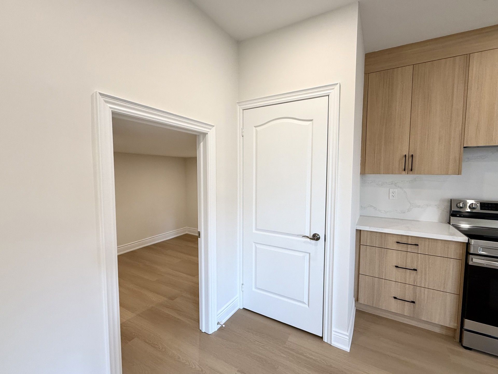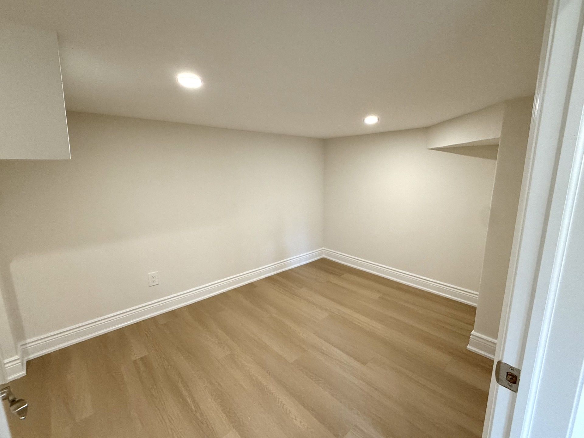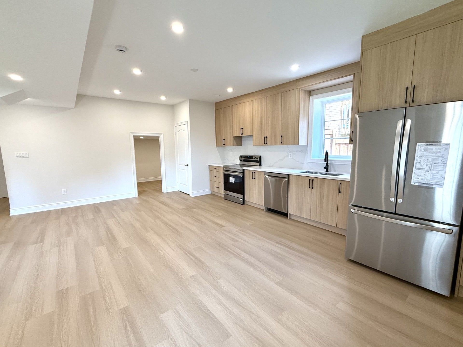 Fantastic location, walking distance to shops, community center& public transit. New renovated one bedroom with large window, one den and bathroom en-suite, appliances (2025) , en-suite laundry & one parking spot on driveway. Tenant responsible for 35% of utilities. No smoking & no pets. The tenant is responsible for snow shoveling on the side separate entrance and the designated parking spot on driveway