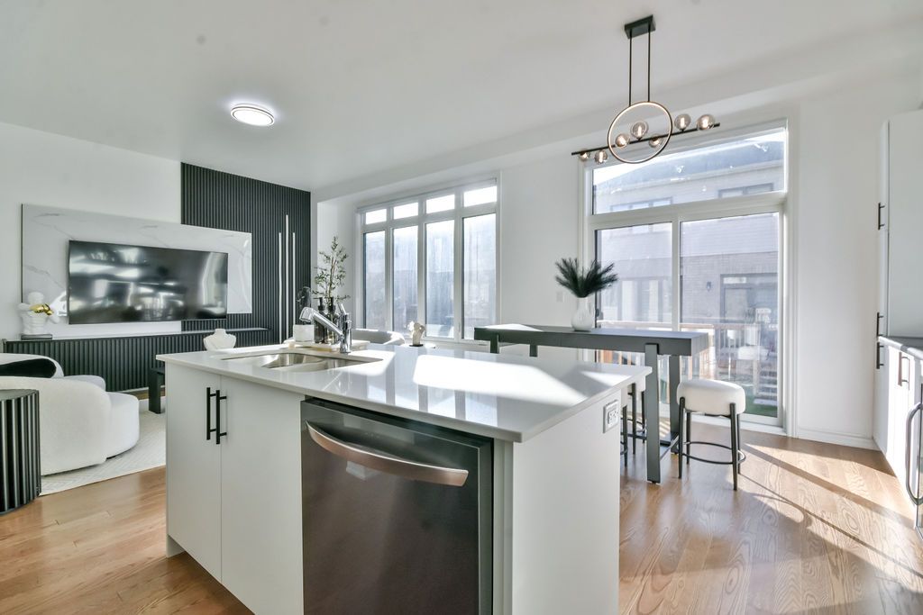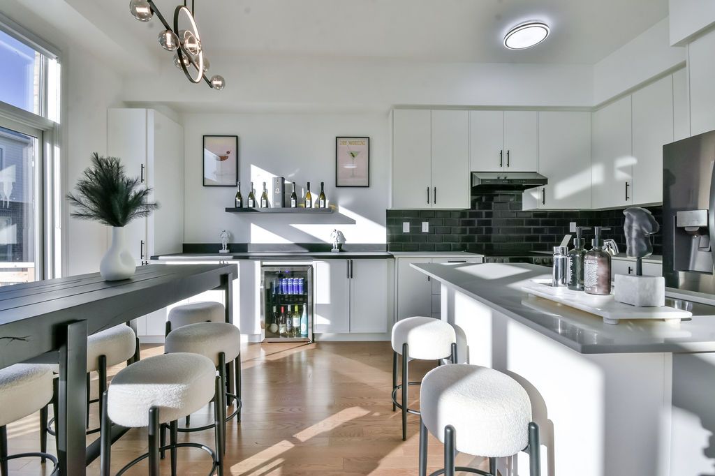 • Gourmet kitchen with extended countertops and a bar fridge for entertaining.