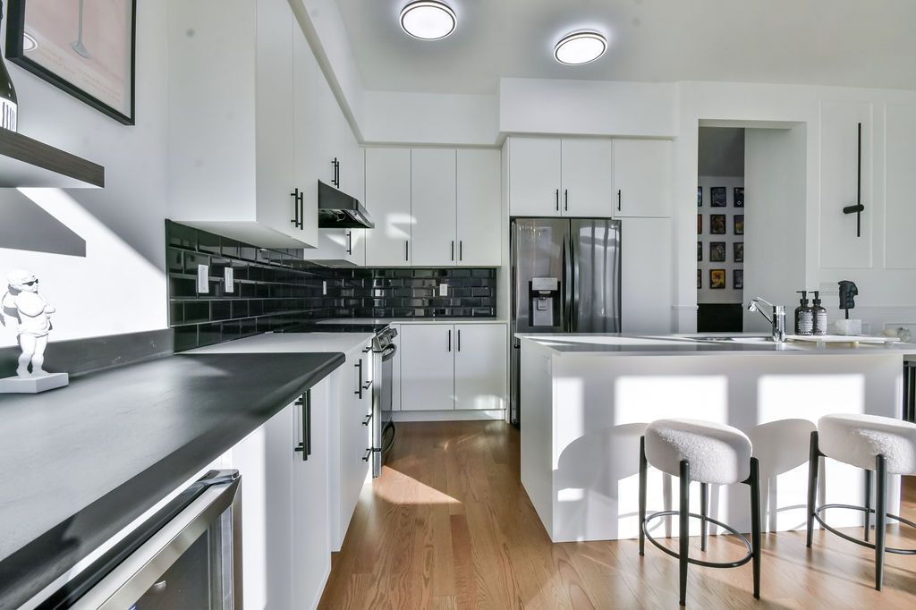 Welcome to this stunning, fully upgraded home built in 2023! Step into luxury in this almost-new, 2-storey detached beauty, offering impeccable design and thoughtful upgrades throughout. Boasting 10-ftceilings on the main floor and 9-ft ceilings upstairs, this home features hardwood flooring, expansive windows flooding the space with natural light, and a stylish, professionally curated interior that truly shows like a model home. The gourmet kitchen impresses with modern finishes, brand new built-in cupboards,extended countertop space, and a convenient bar fridge ideal for entertaining. The large dining room and dedicated main floor office provide functionality for both gatherings and work-from-home needs. Retreat to the second level where you'll find 4 spacious bedrooms, a versatile loft space, and a luxurious primary suite complete with two walk-in closets and a spa-inspired ensuite. The double car garage is more than just parking its a fully outfitted workspace, complete with ample storage and upgrades. Set on a fully bricked exterior in a sought-after, emerging neighbourhood, this home is just minutes to go transit, shopping,groceries, and hwy 400 access, while tucked away from the hustle and bustle. Don't miss your opportunity to own a truly exceptional home in one of barrie's most exciting new communities! Extras: triple-pane windows, super efficient furnace, heat pump for lower gas bills, upgraded appliances. Upgradesthroughout.