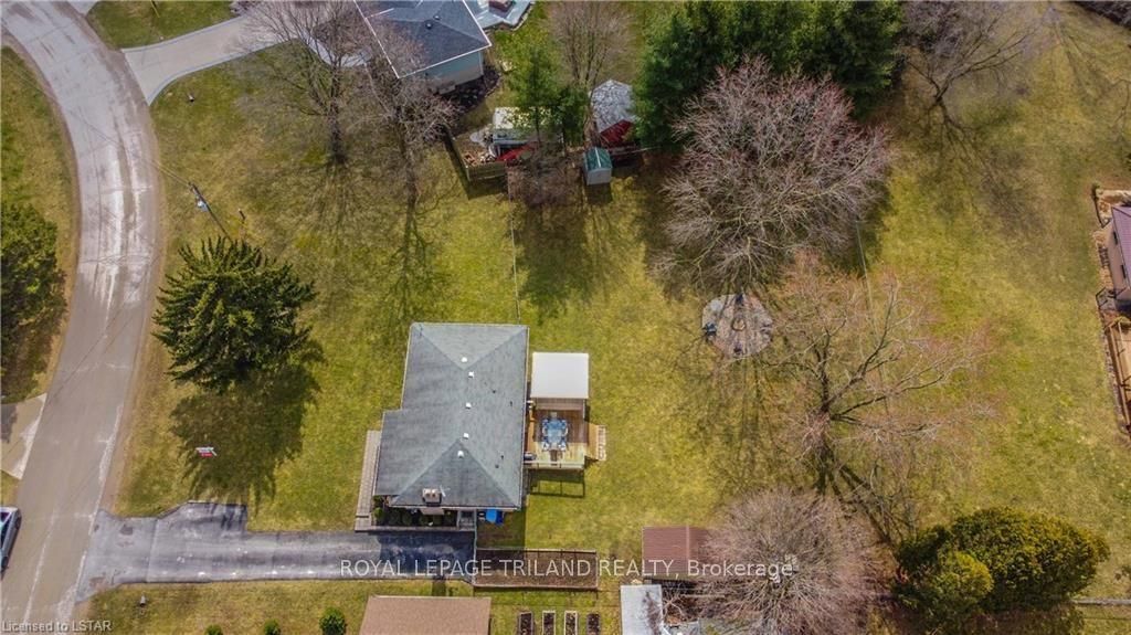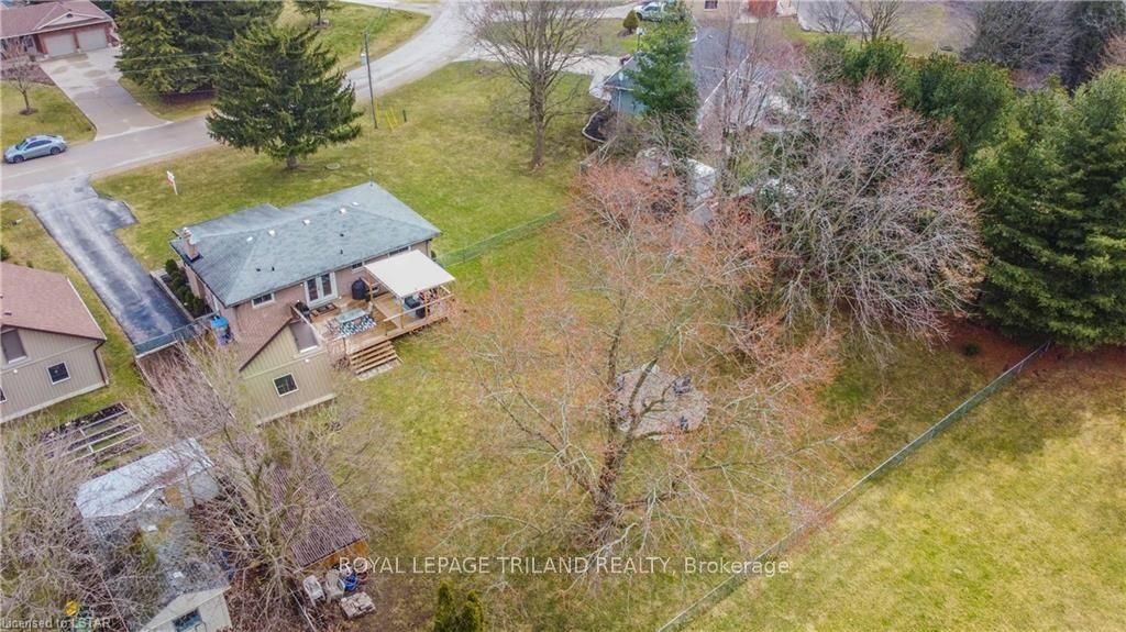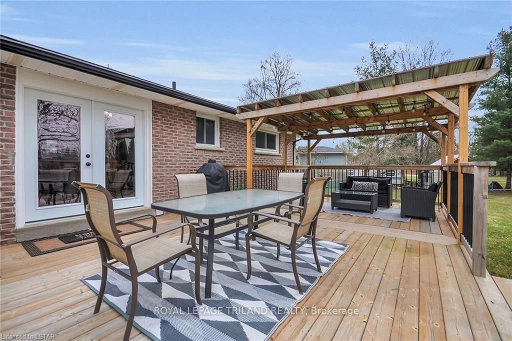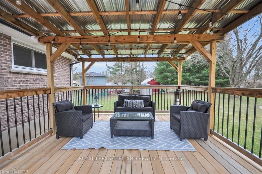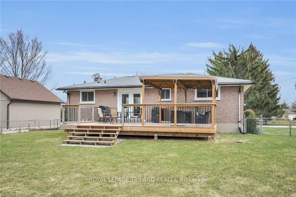 Ever dream of having a large parcel of land, without sacrificing the convenience of living in town close to all amenities? This absolutely stunning all brick bungalow with a brand new lifetime metal roof (warranty transferable) rests on just under a 1/2 acre lot in the lovely town of komoka. Walking distance to parkview public school. Inside features updated kitchen and bathroom with newer hard top counters, fabulous cabinetry and a built in bench seat in the dining room. Outdoorsman's dream with a covered front porch, updated fire pit, exterior natural gas line, a large deck with pergola allowing for ample space for entertaining, alongside an oversized brand new 10'x18' garden shed with an additional overhang for even more storage. A combination of mature landscaping as well as an expansive freshly planted treed lot that will allow for privacy once fully grown. Decor is tastefully done along with updated flooring throughout and a finished lower level. Side entry could allow for separate entrance into an in-law suite. Municipal water with a bonus sand point well on property for watering the lawn, washing your car or adding a pool. Pride of ownership is very evident.