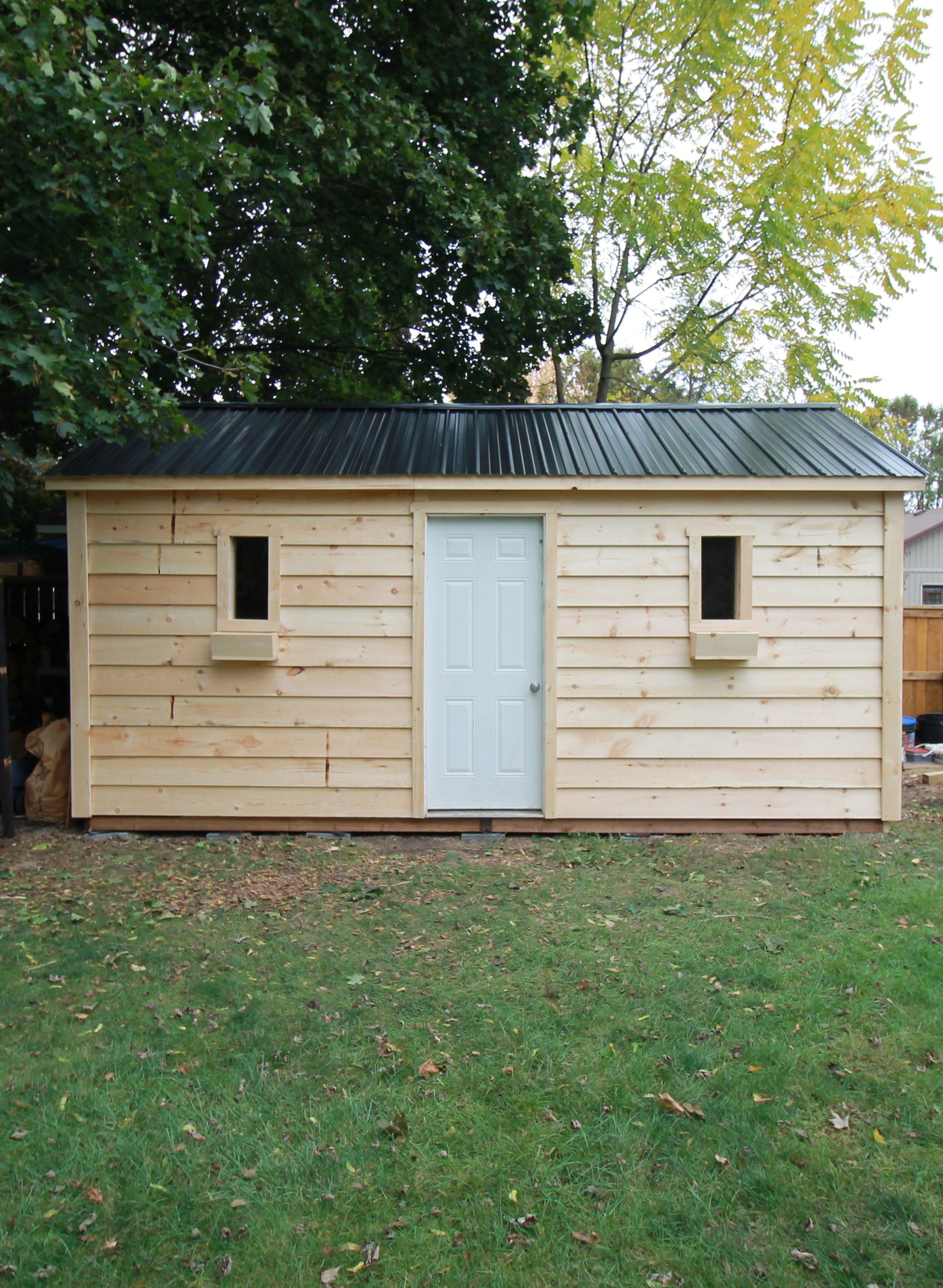 • New oversized garden shed with extra storage options.