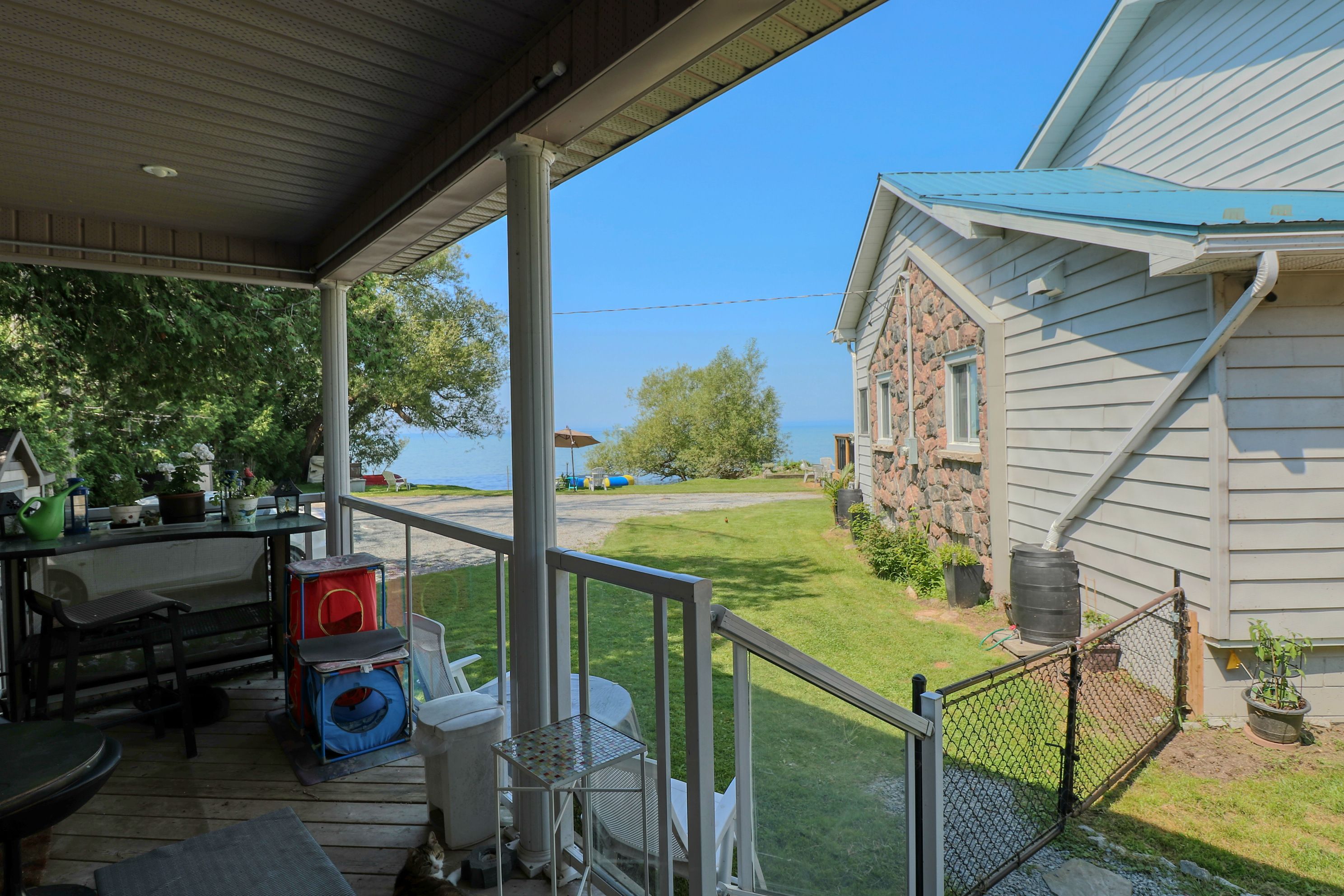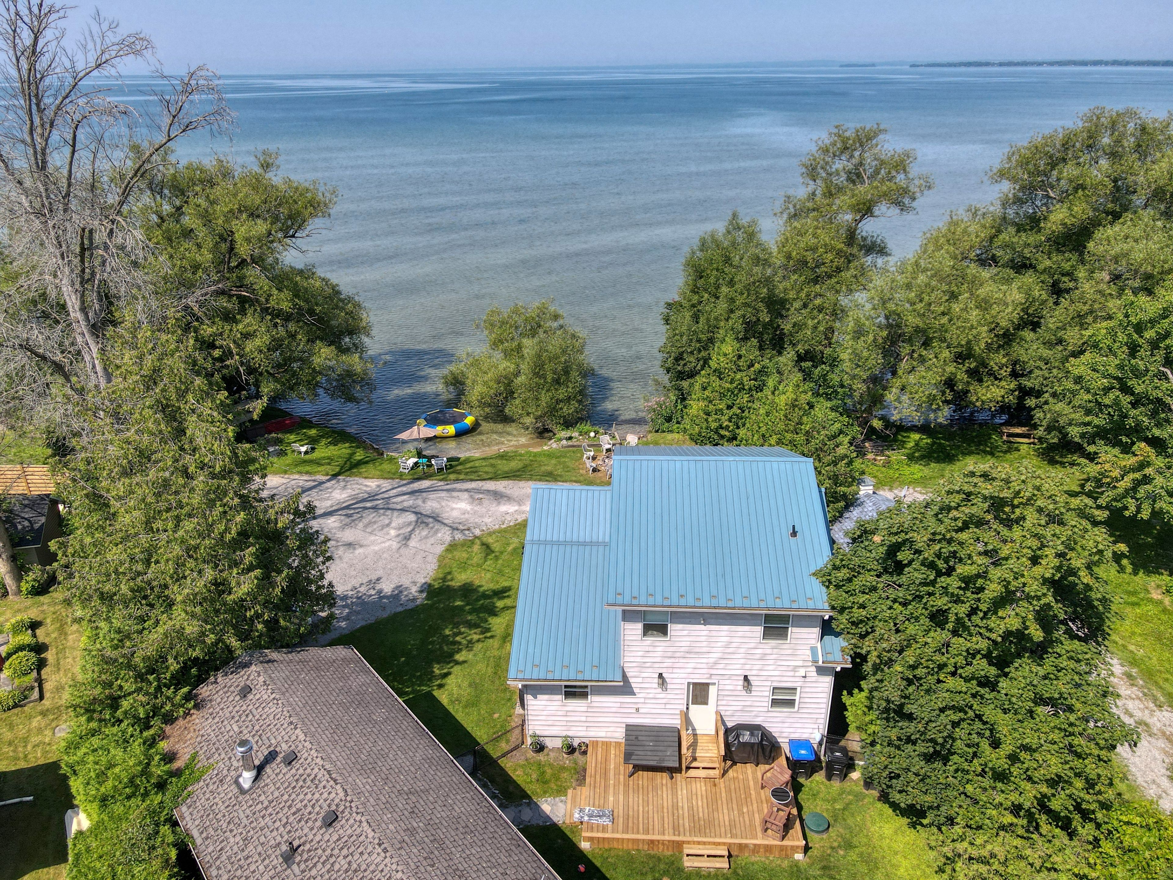 Your own private beach on lake simcoe! Experience waterfront living at its best with this beautifully renovated lake simcoe home, complete with your own private beach. Relax on the front porch or right on the sand as you take in breathtaking sunsets every evening. Since 2021, this 5 +1 bedroom, 3-bath home has been extensively updated, featuring t-rex gutters, a propane furnace with central air, new decks, windows, doors, and security cameras. Inside, the open-concept kitchen boasts quartz counters, a centre island with seating, stainless steel bosch appliances, a hood range, and a walk-in pantry. The propane fireplace adds warmth and charm, while multiple walk-outs ensure year-round enjoyment. The primary suite offers a private balcony retreat overlooking the lake. Perfect for extended family, in laws or guests, the property also includes a fully equipped guest house/nanny suite with a private bedroom, kitchen, living room, and bathroom. Note: access/right of way to a seasonal neighbour.