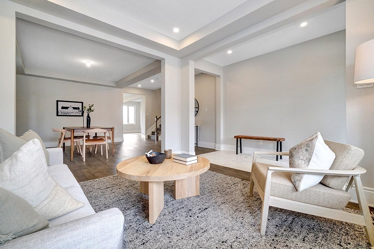 • Bright open-concept layout with high ceilings and elegant hardwood flooring.