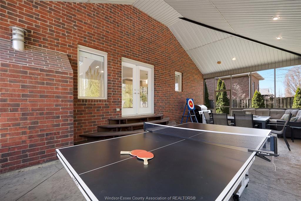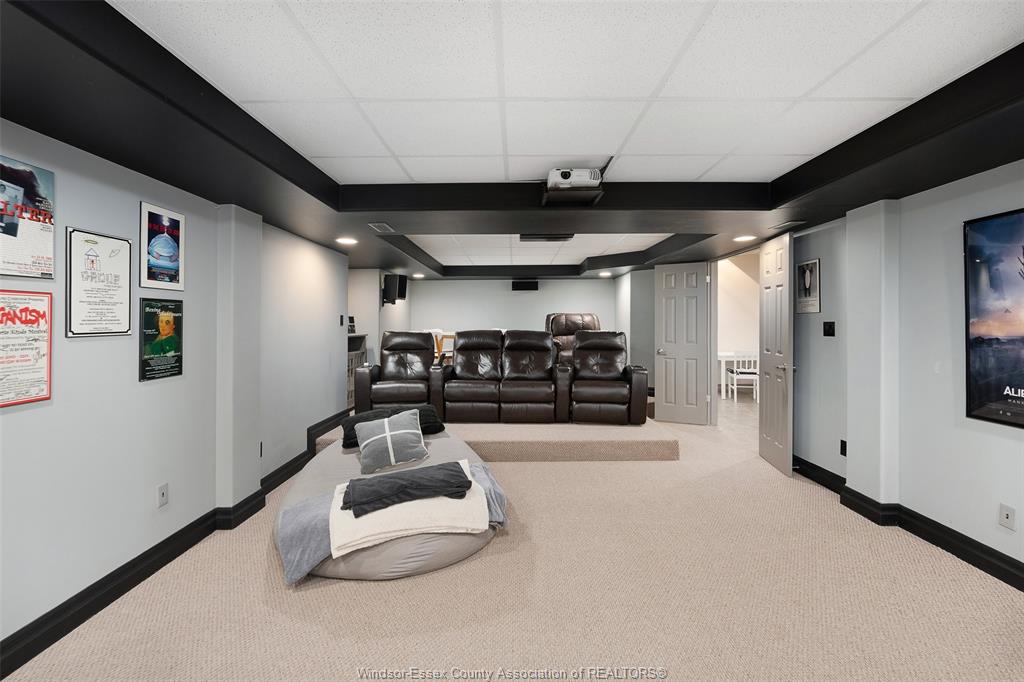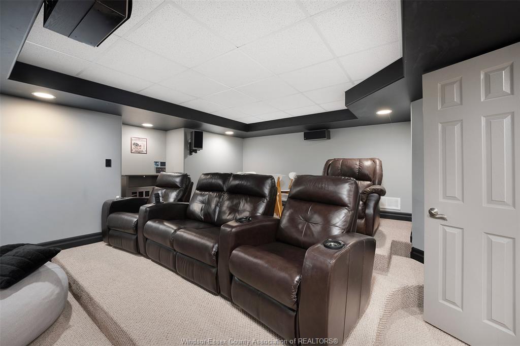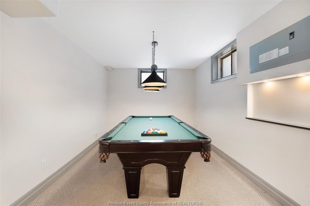 • Lower level features a wet bar, home theater, and pool table.