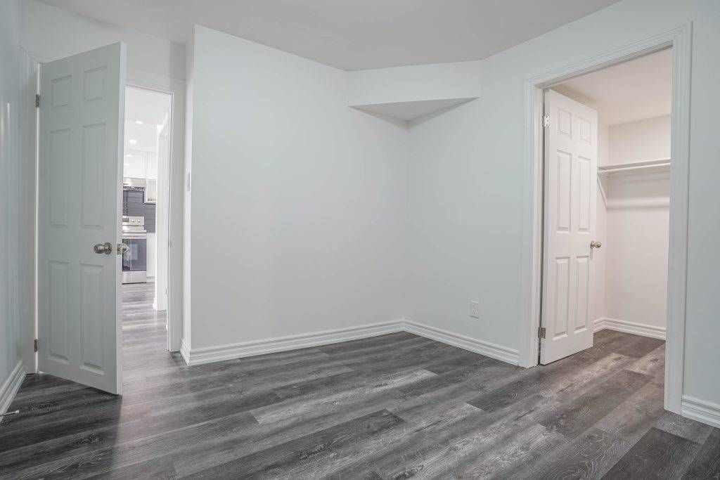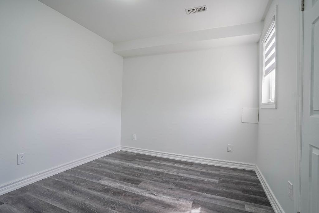 Walkout - registered bsmt. Two bedroom bsmt apt. Pot lights thru out. Laminate + ceramics. Mins to hwy 407. Ensuite laundry, windows in lv/dr + bedroom. One parking on driveway.