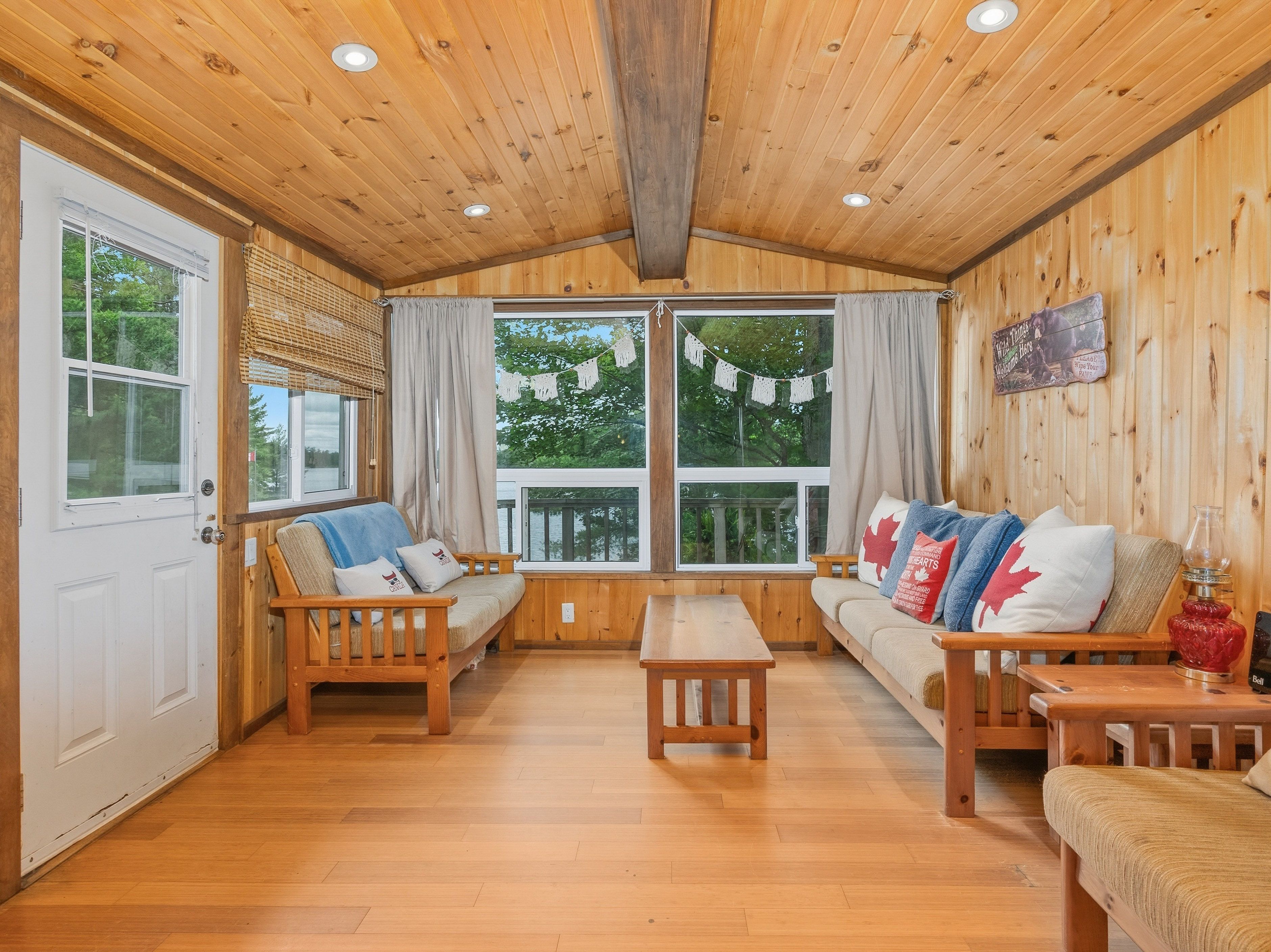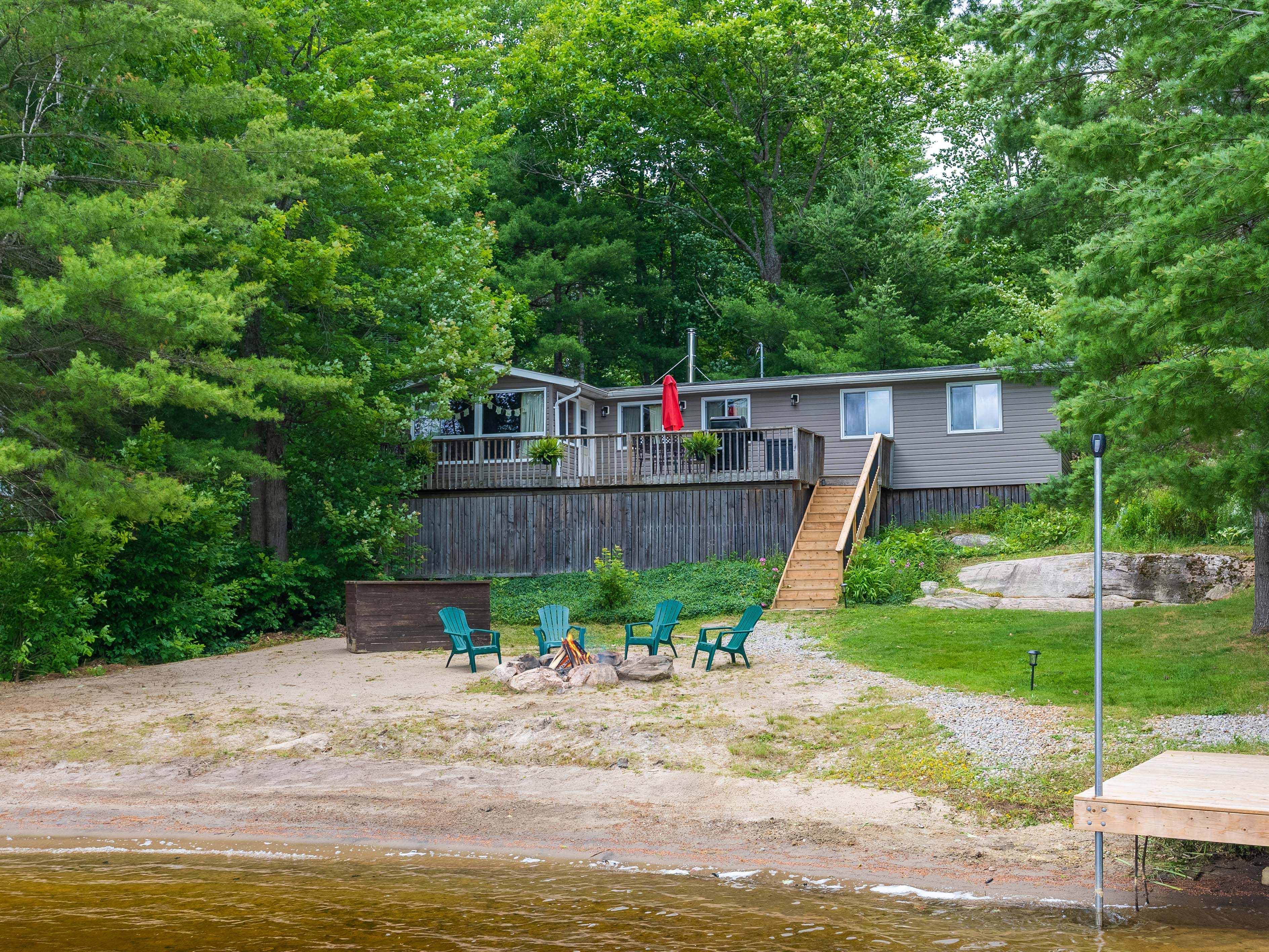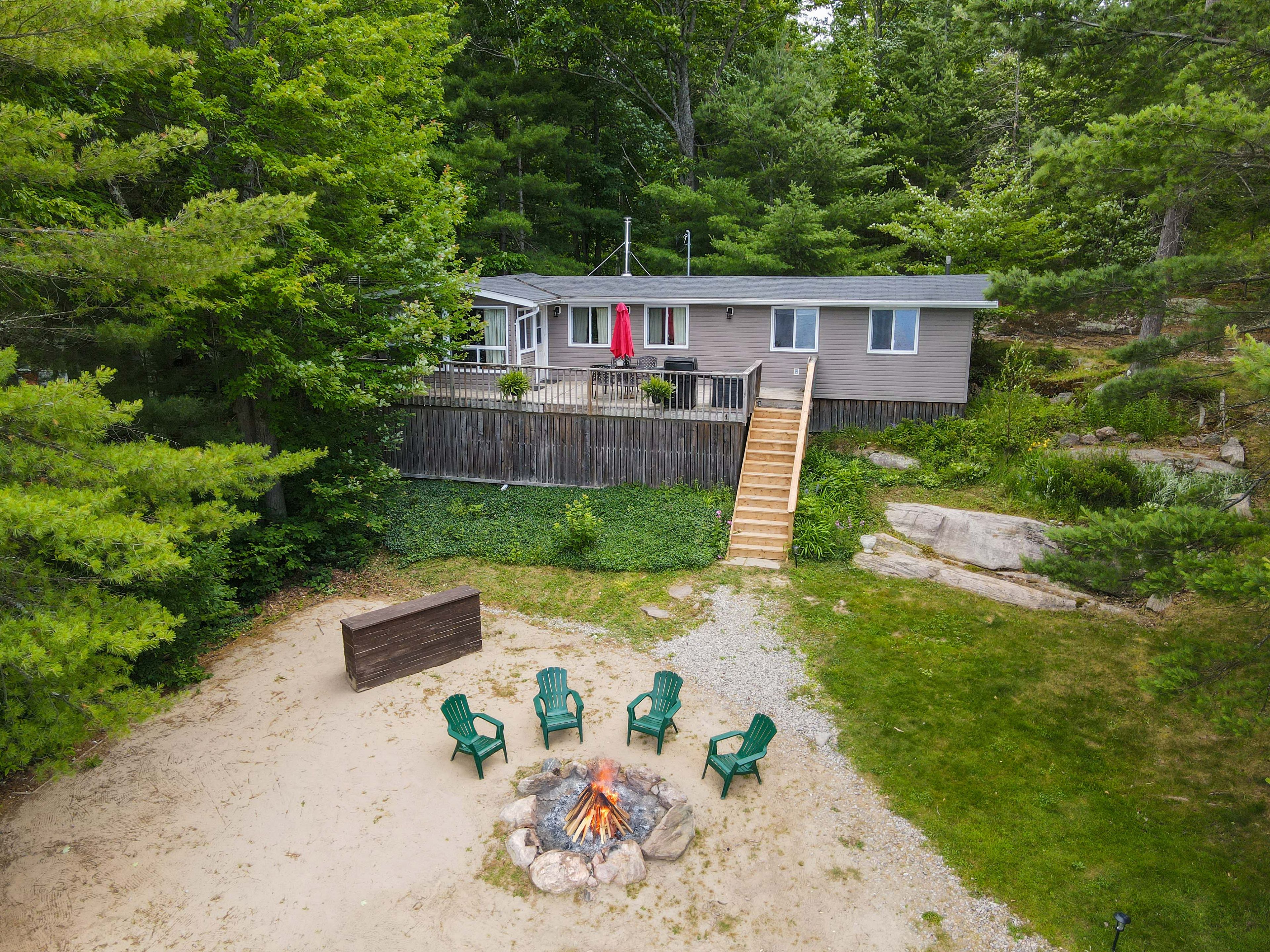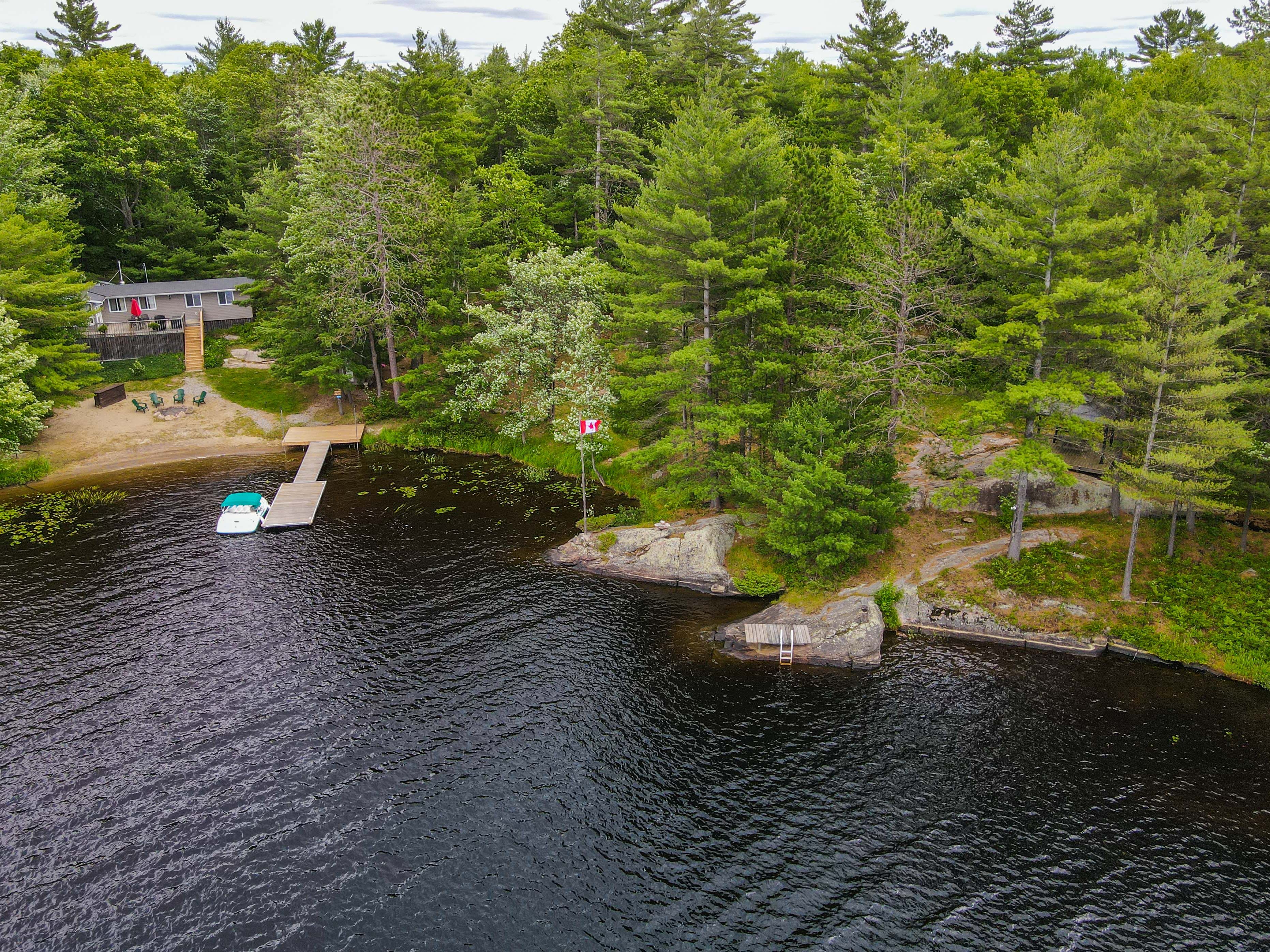 If stealing the spotlight in family lawn games (or just stealing a little sunset quiet time outside) excites you, this expansive lakeside yard is calling your name! Boat access from the mainland brings you to an exceptional west-facing retreat with over 337 feet of private shoreline, capturing iconic muskoka sunsets and expansive lake views. Set in a quiet bay shared by just two other cottages and backed by stretches of crown land, the setting is both private and unspoiled. The 1. 5-acre property features a level, granite shoreline with a sandy, shallow-entry beach-ideal for families and easy swimming-while the dock extends into deeper water. A raised waterside gazebo offers the perfect place to take in the view, and a lakeside shed keeps all your gear organized and within reach. Inside, the open-concept cottage offers 2 bedrooms plus a flexible laundry room that could be converted into a third, along with a cozy wood stove and warm pine finishes throughout. A separate insulated bunkie provides comfortable overflow space for guests. Offered fully turnkey, this package includes a 50hp pontoon boat and a 1987 starcraft v6-arrive and start enjoying cottage life immediately. Recent updates include a new water line (2024), septic lift pump (2022), new bunkie flooring, and deck stairs with dock (2021), along with fresh beach sand added in 2022. Earlier improvements include a modernized kitchen with granite countertops, and upgrades to electrical, plumbing, windows, and septic. Evenings are best spent by the fire pit or under the stars along your private shoreline. Located just under two hours from the gta, the property includes two parking spaces and a boat slip at denne's marina (yearly fee), just a 5-minute boat ride away-making access simple and convenient. A move-in-ready kahshe lake cottage with space, privacy, and all the essentials already in place. Your 3-season turnkey cottage is ready to enjoy!