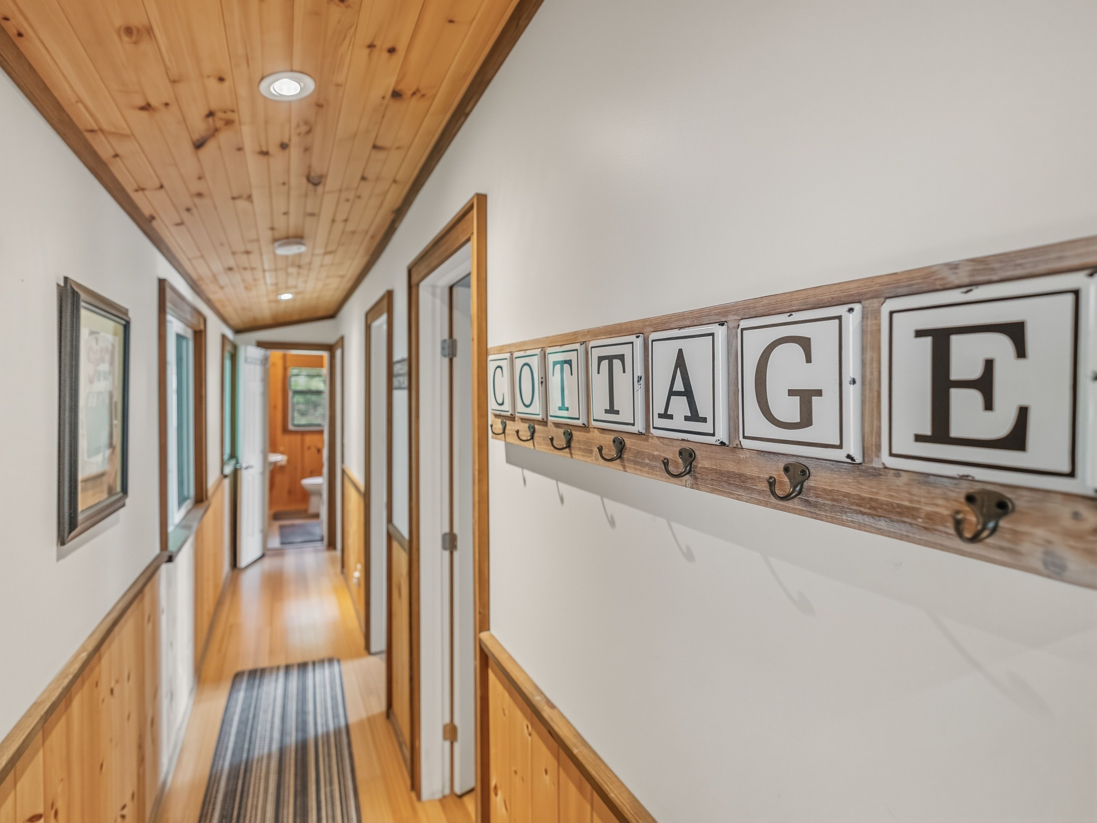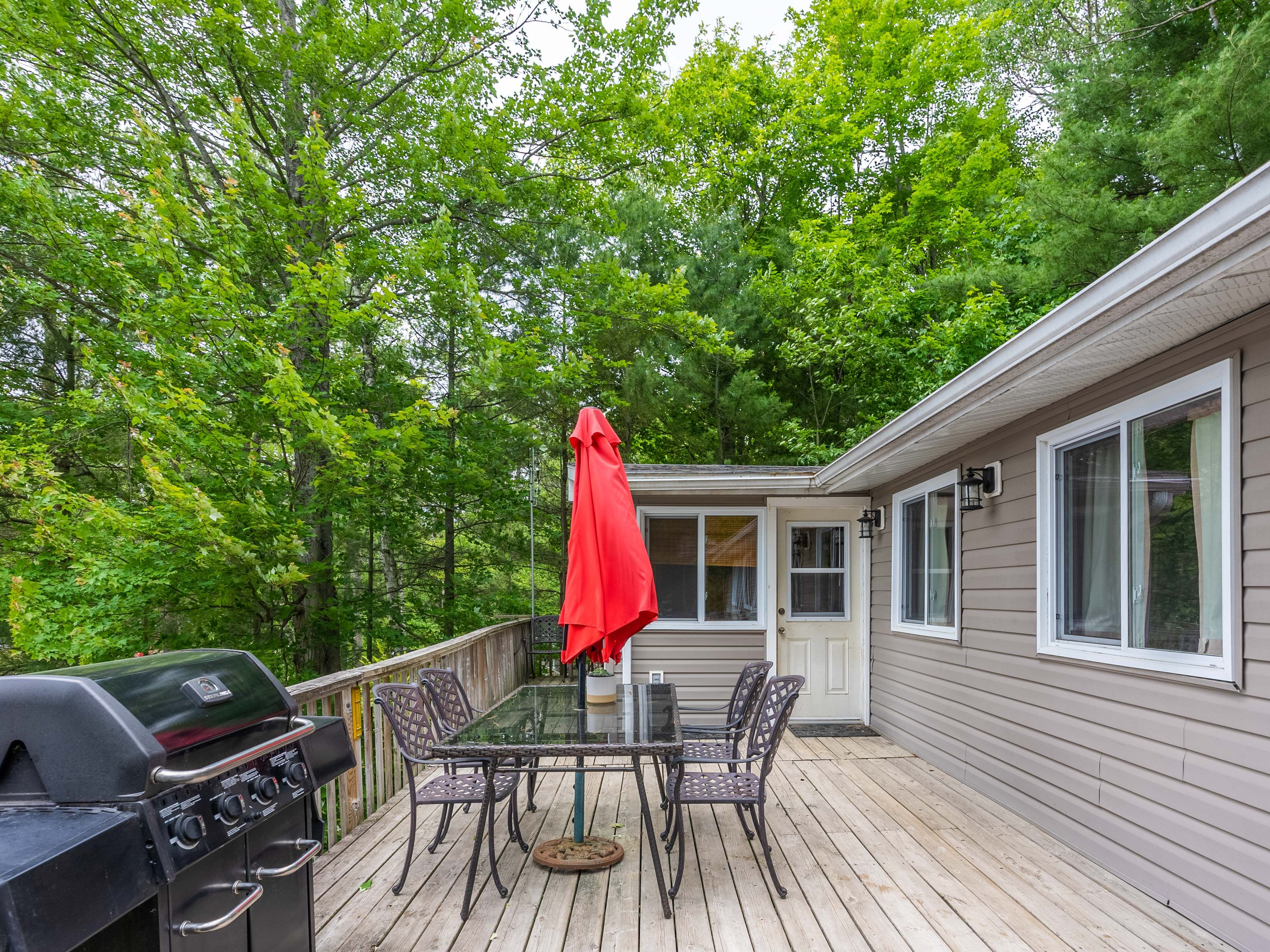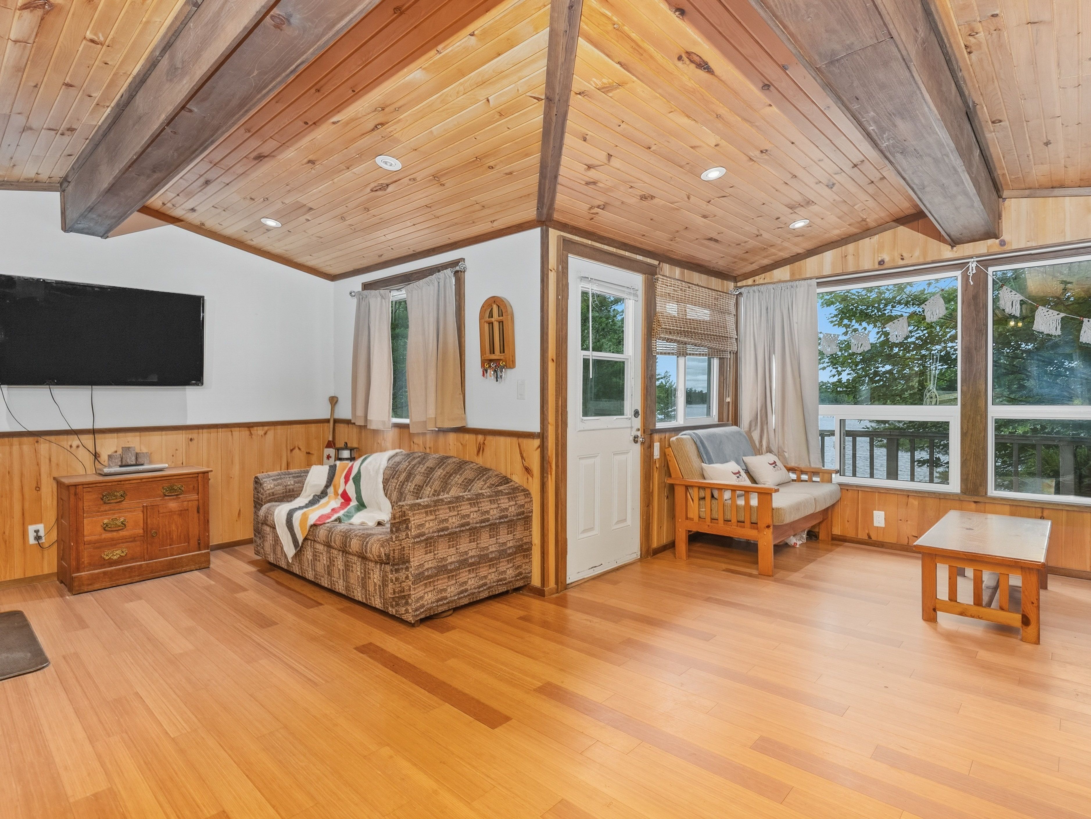 • Turnkey cottage with modern kitchen, cozy wood stove, and flexible spaces.