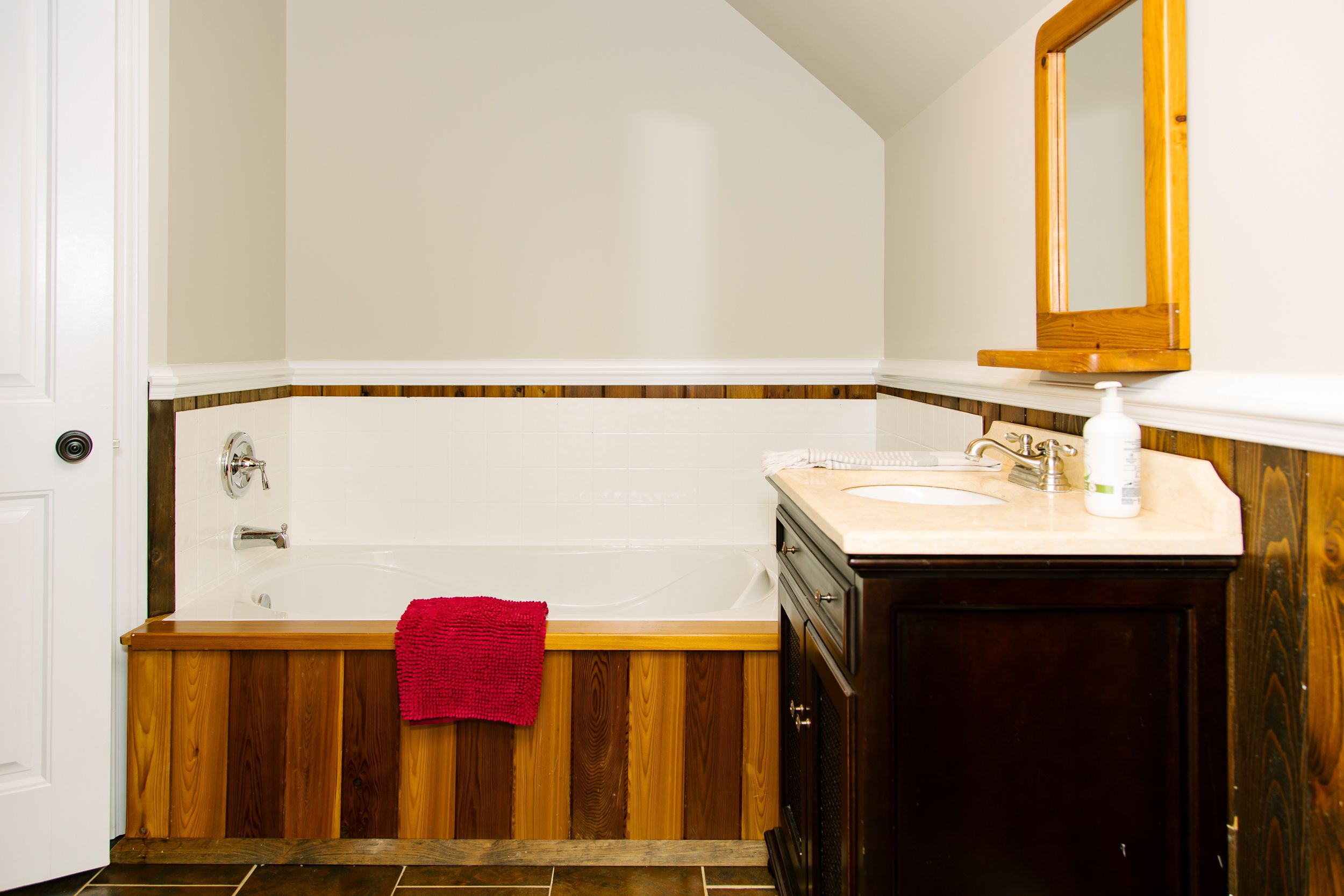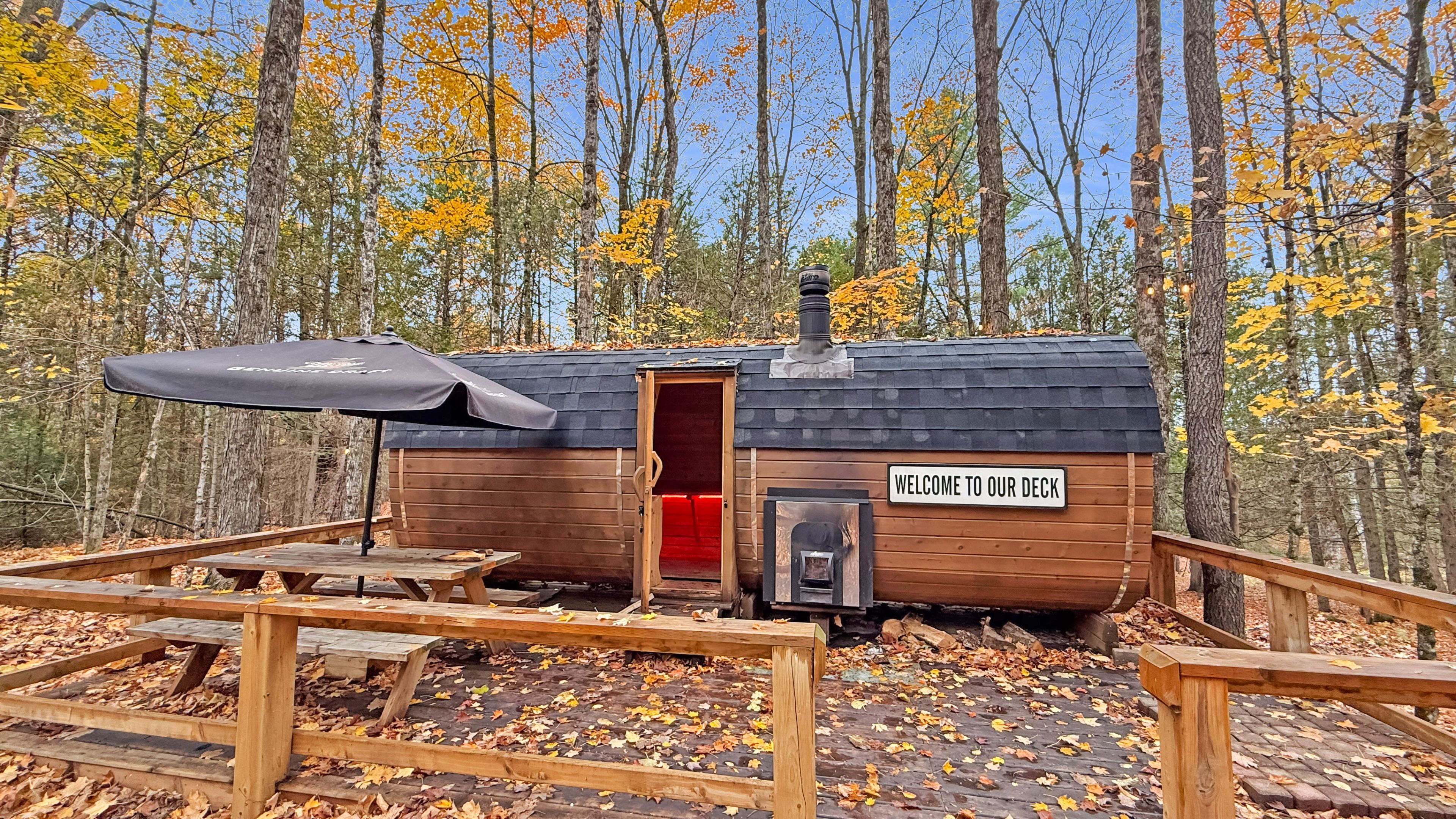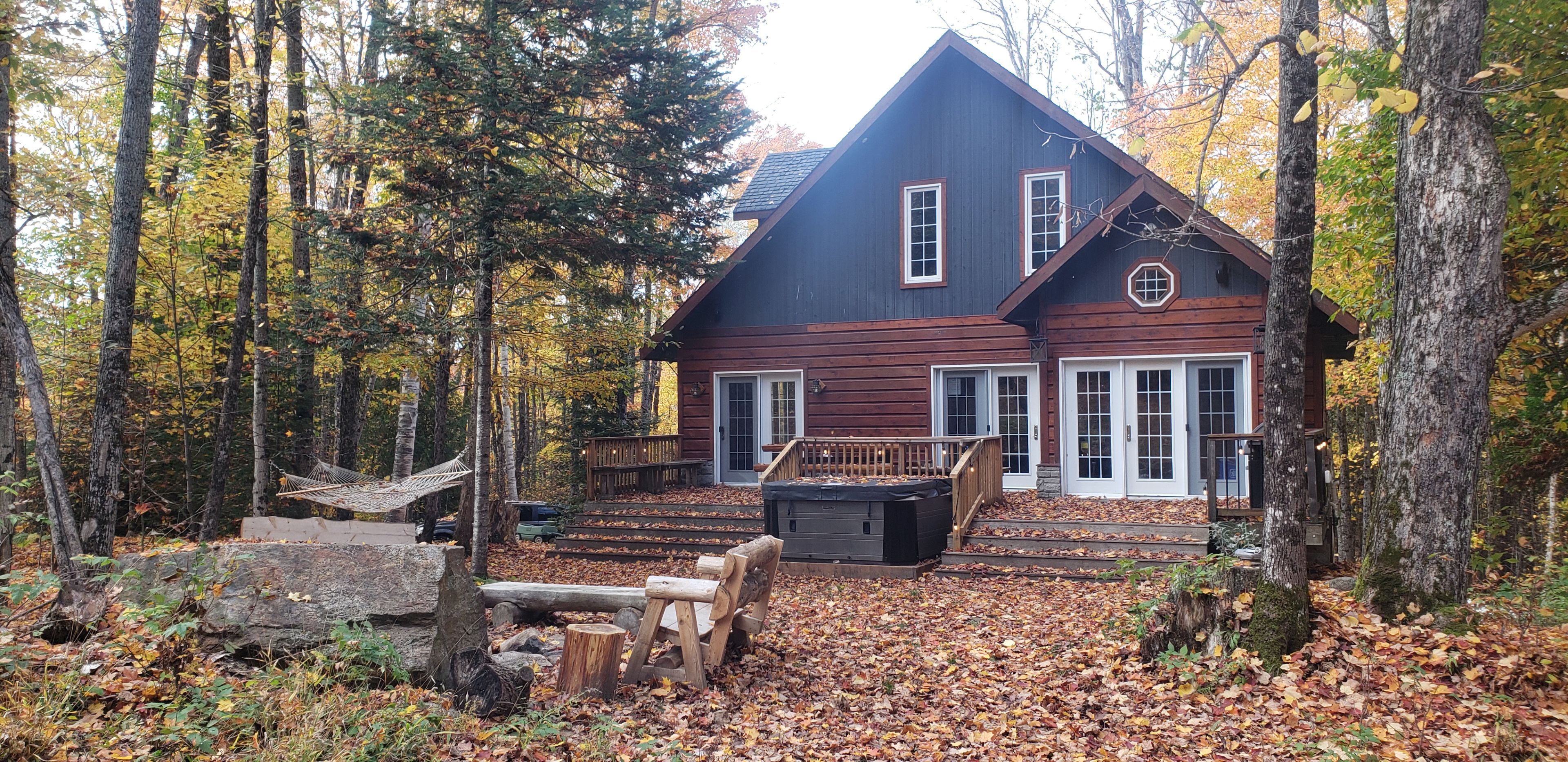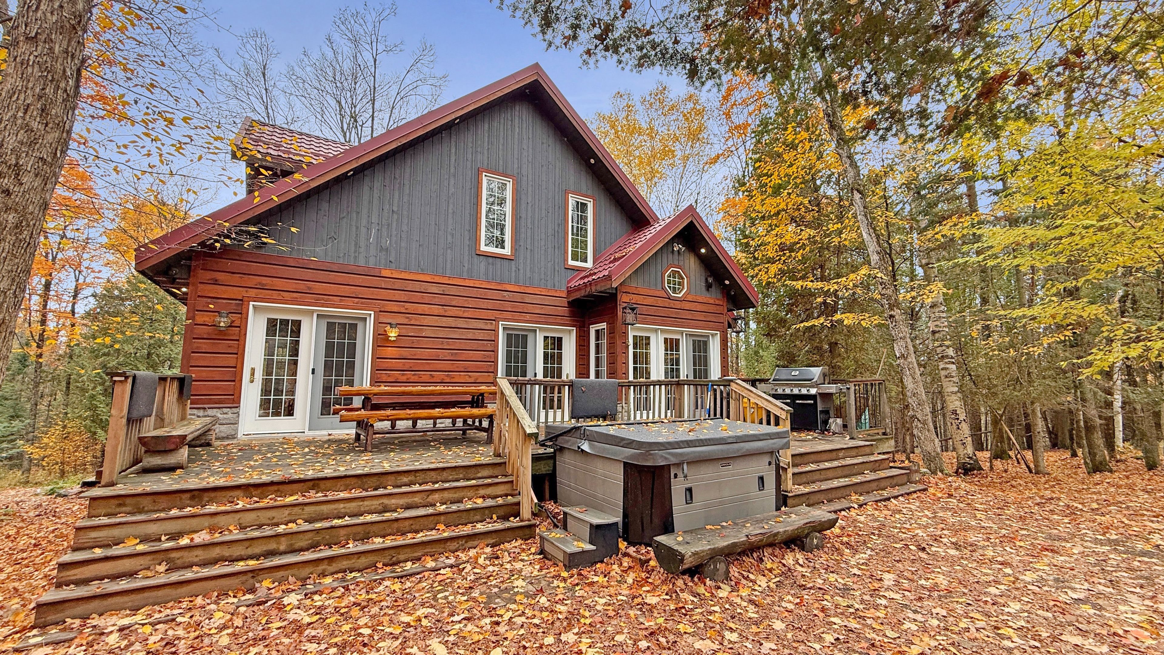 • Spacious deck featuring an 8-person hot tub and fire pit.