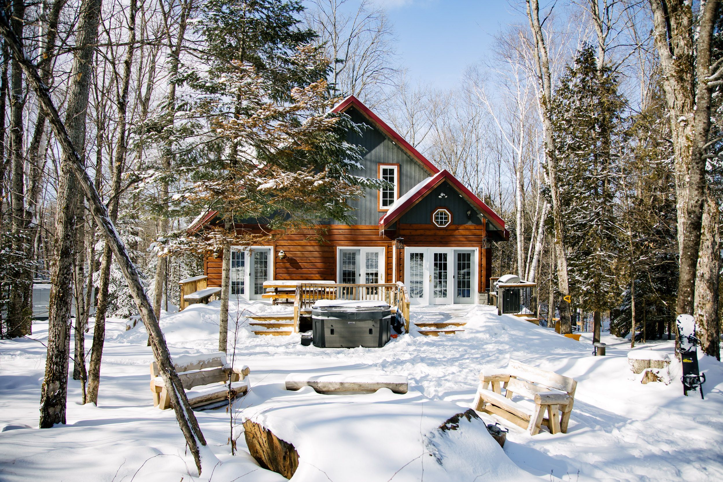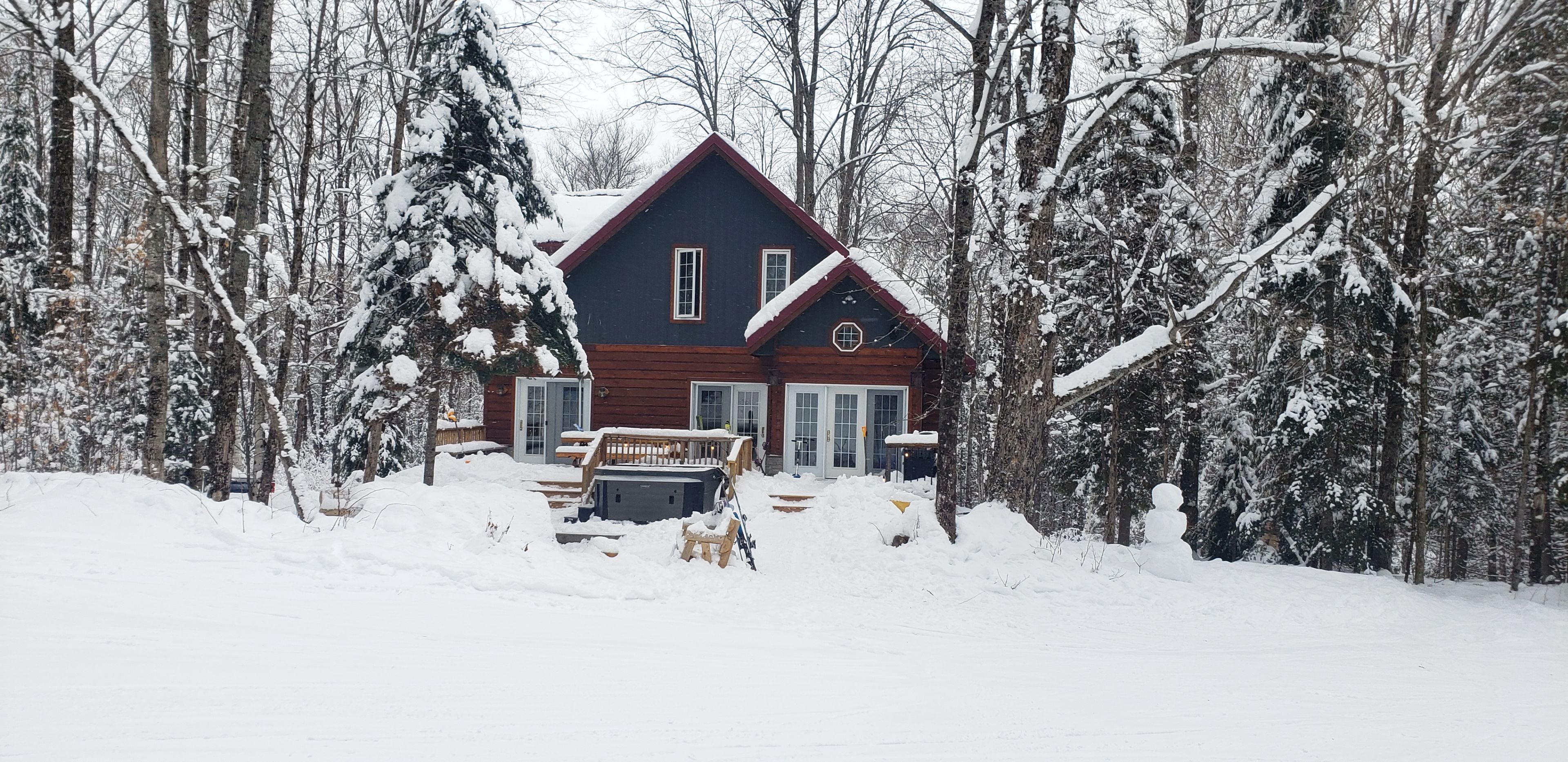 Welcome to 1040 ski ridge trail! This stunning ski-in/ski-out chalet is located directly on sir sam's ski & bike. Surrounded by pristine forest, offering peace, tranquillity and privacy. Enjoy the ease and convenience of ski-in/ski-out, snow shoeing, hiking or biking as you walk out from the beautiful deck which over looks an 8-person hot tub, 20' sauna and picturesque fire pit as you watch the skiers go by or join in on the fun yourself! The main floor of this tranquil 3+1 bedroom chalet-style home has an open concept main floor with loads of natural light and stunning views of the ski hill from the eat-in kitchen and spacious living room. The large primary bedroom has a small nursery/home office area built in and located directly across from the main floor 4-piece bathroom. The upper level consists of two additional bedrooms and a second 4-piece bathroom. The lower level offers additional living space including a cozy recreation room, spacious games room as well as a den! This property is complete with multi-camera security system, central vac and an ev fast charging station. In addition to the endless winter activities, when the snow melts, take advantage of the bike-in/bike-out access to the incredible bike trails, take a short walk to eagle lake public beach and boat launch for fishing, swimming and boating. Endless adventures await near by; hiking, atving, snowmobiling, haliburton forest, dog sledding, wolf centre and much more!