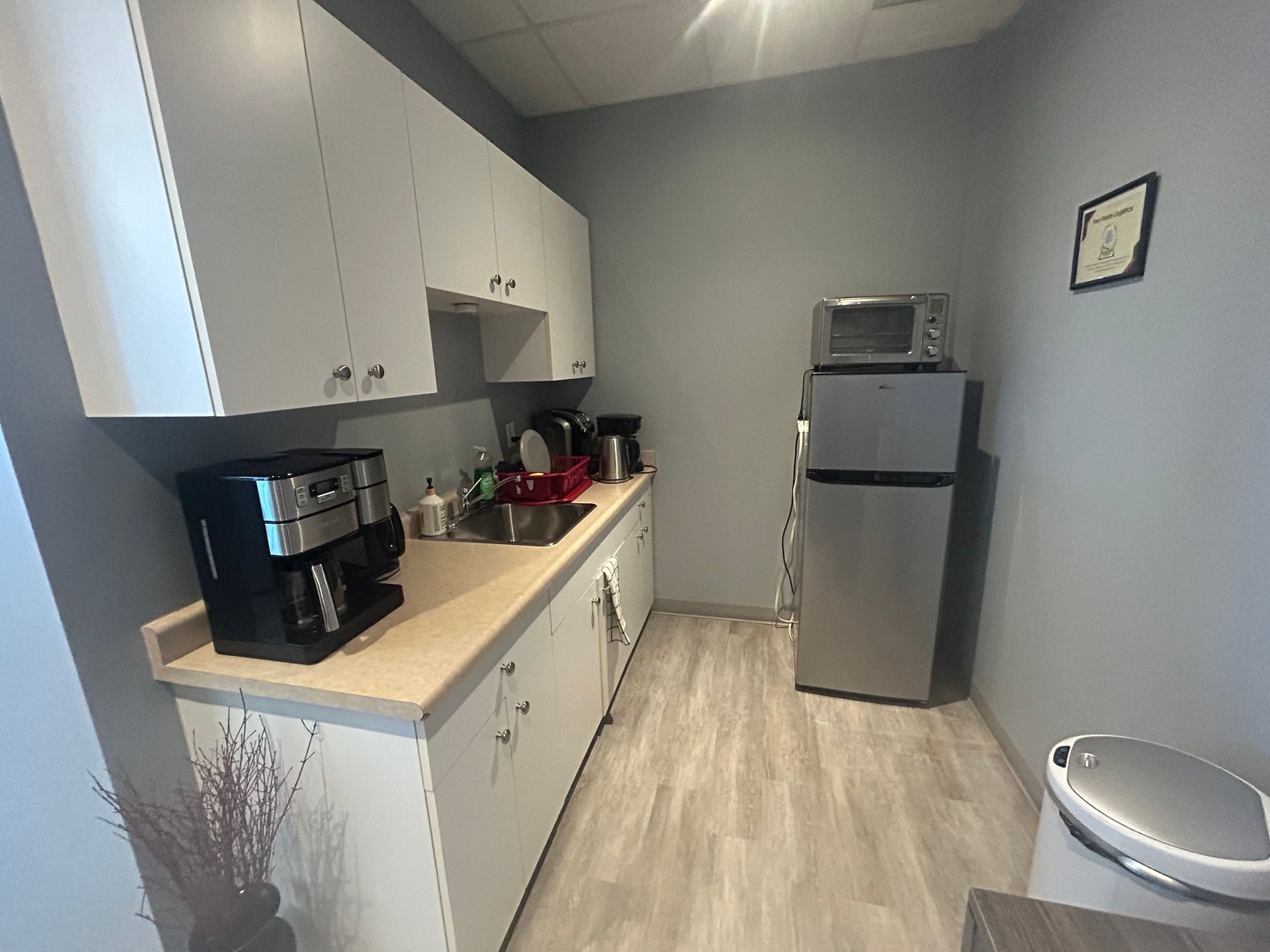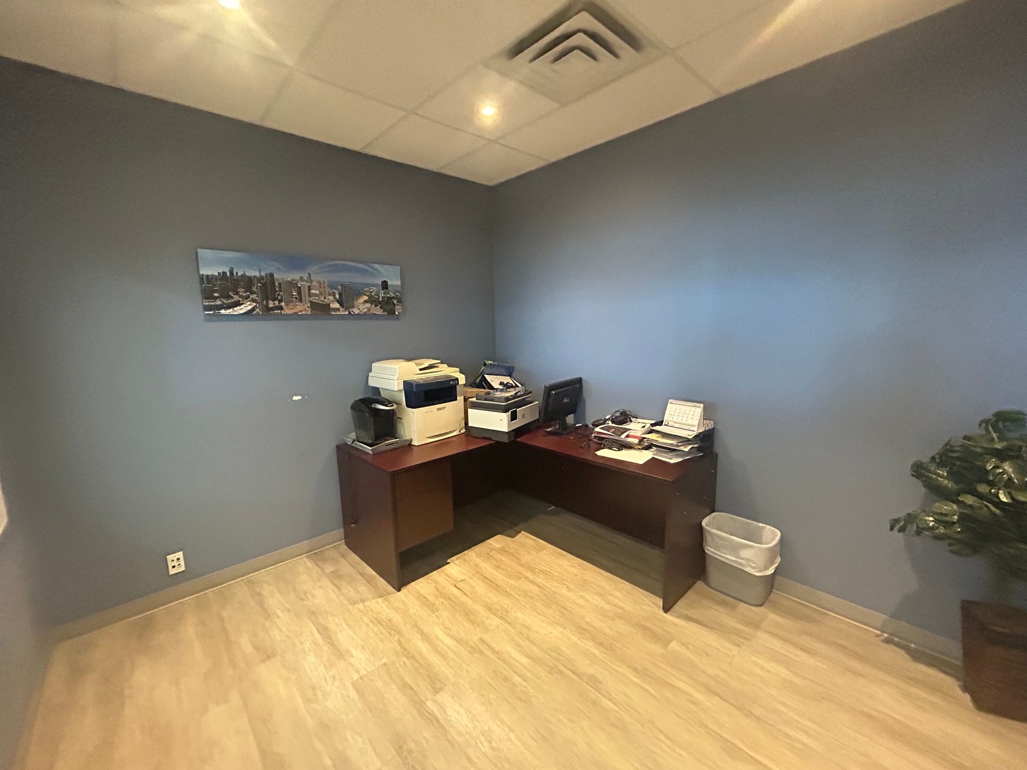 Bright second-floor walk-up office with excellent natural light and qew exposure. The 2,295 sq ft unit includes five private offices, one boardroom, open work area, kitchenette, and in-suite washroom. Ideal for professional users seekign a functional layout with strong visibility.