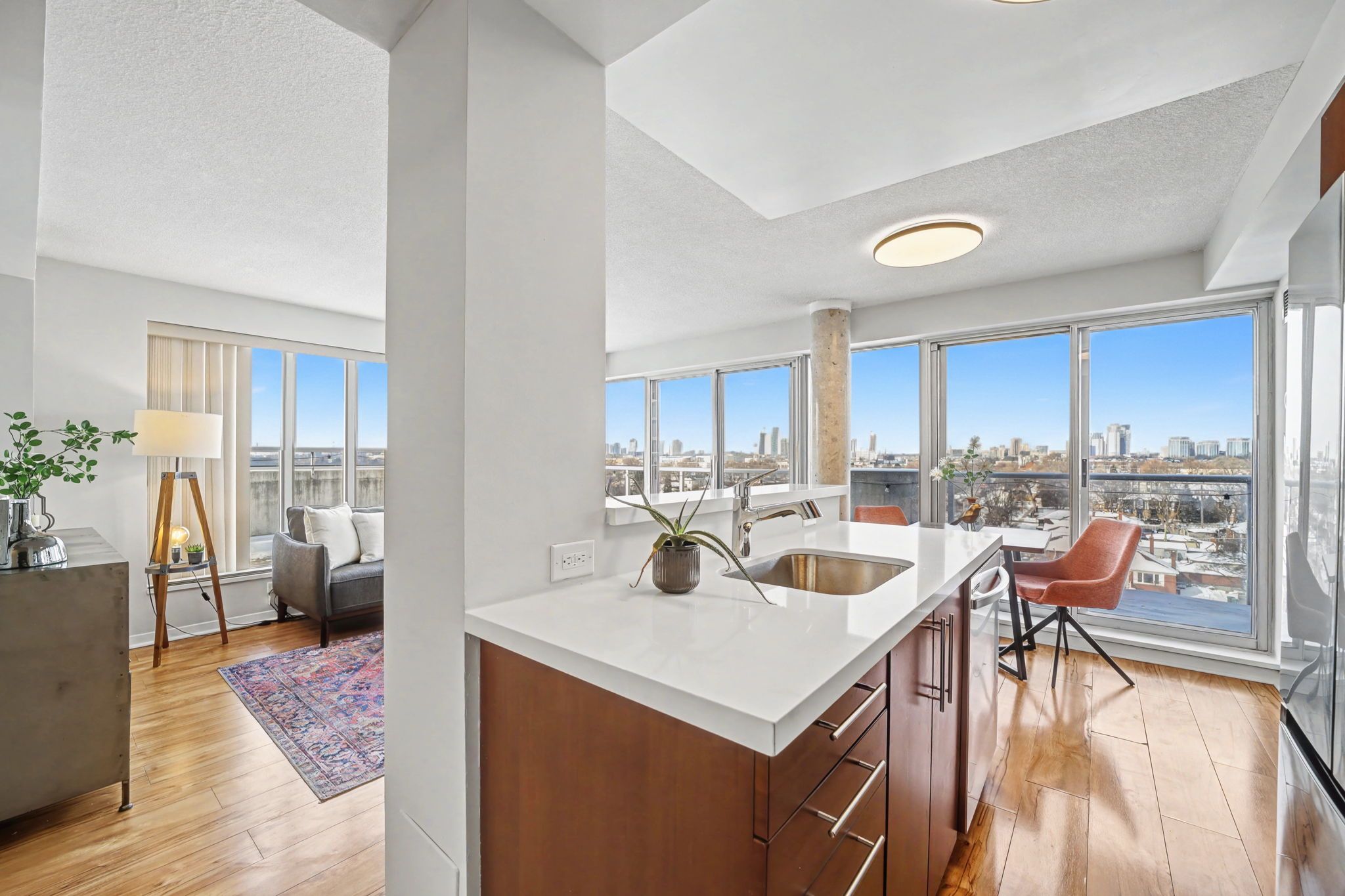 • Sun-filled open layout featuring floor-to-ceiling windows.