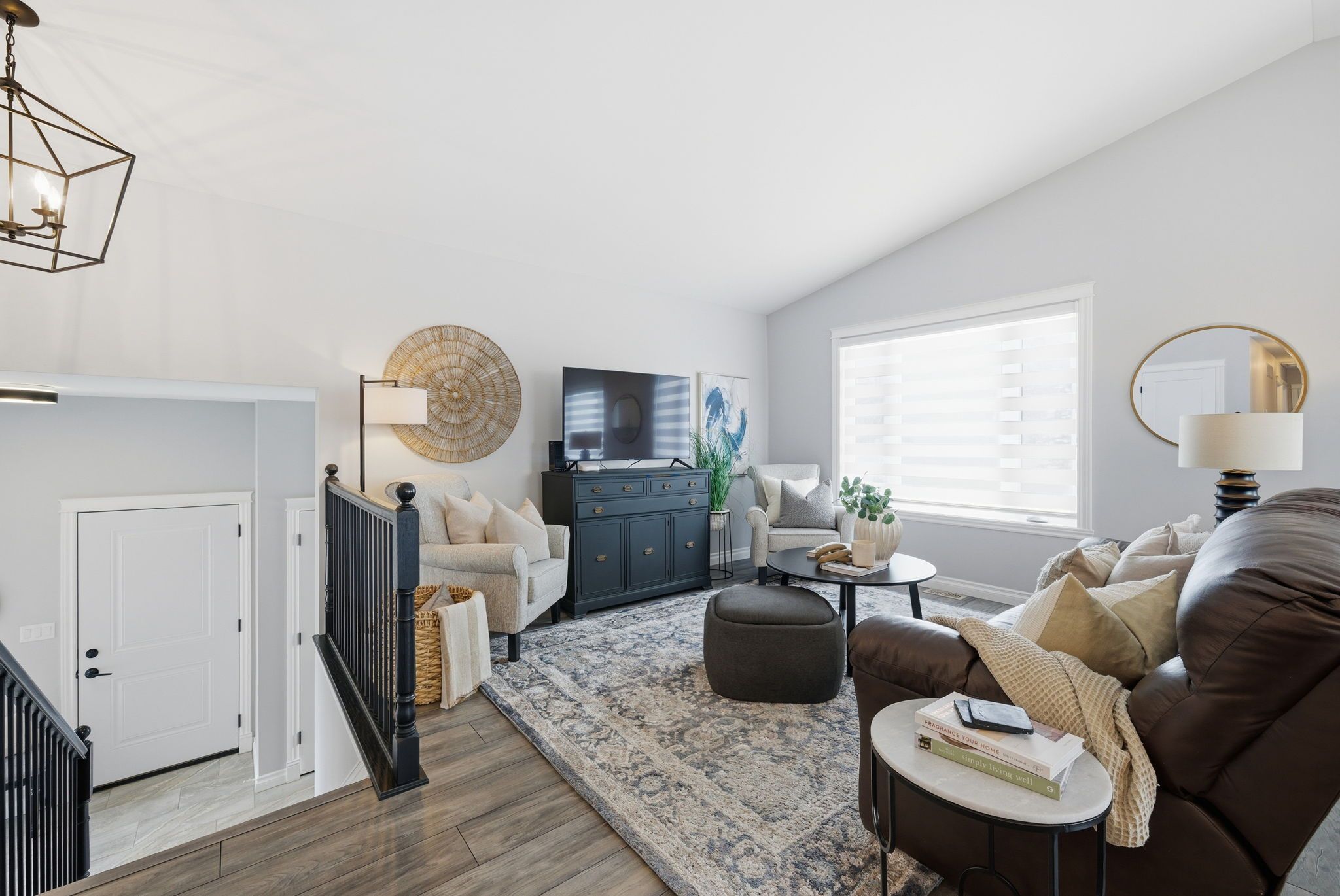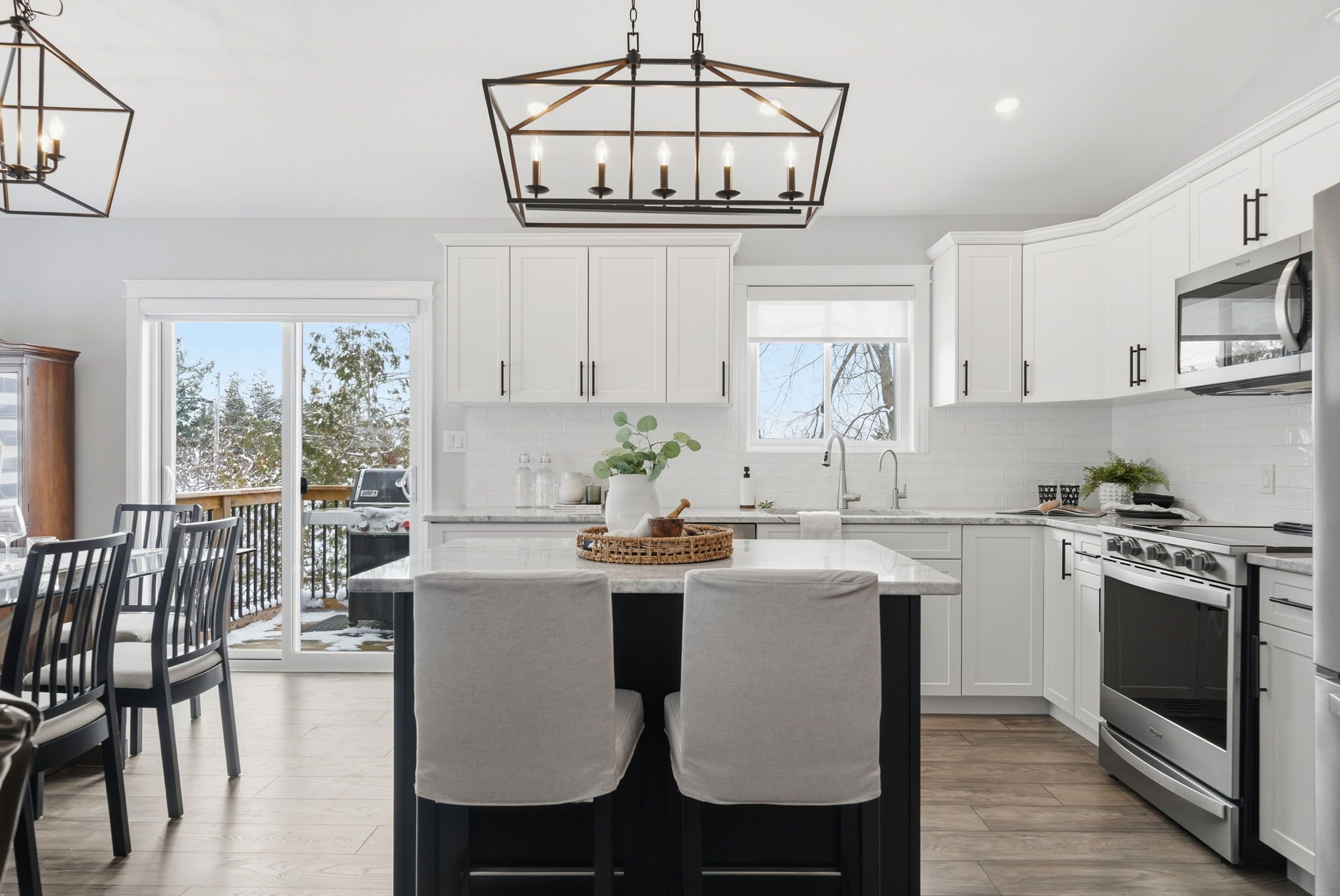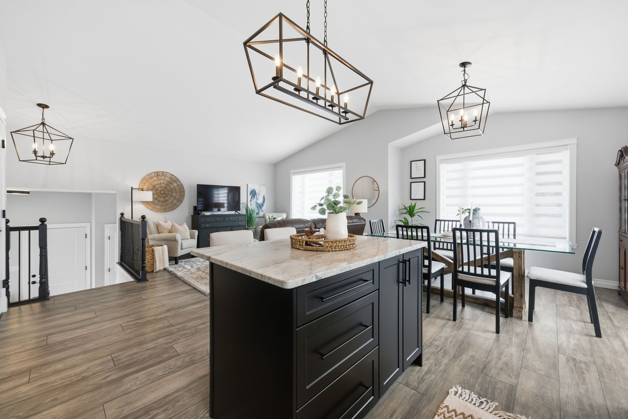• Open-concept design with bright kitchen, dining, and living areas.