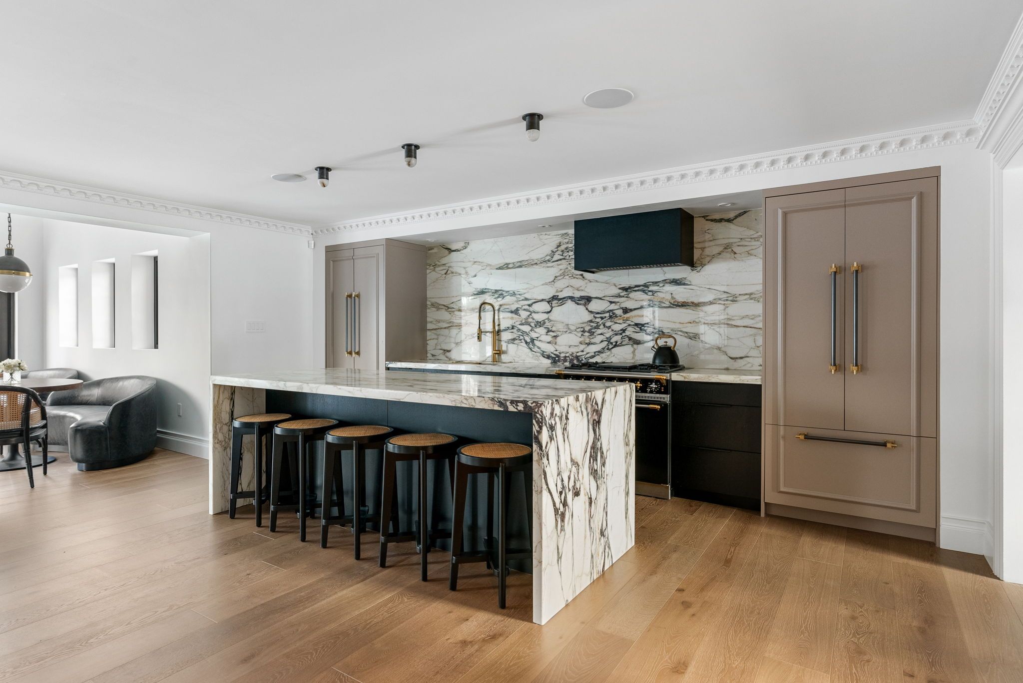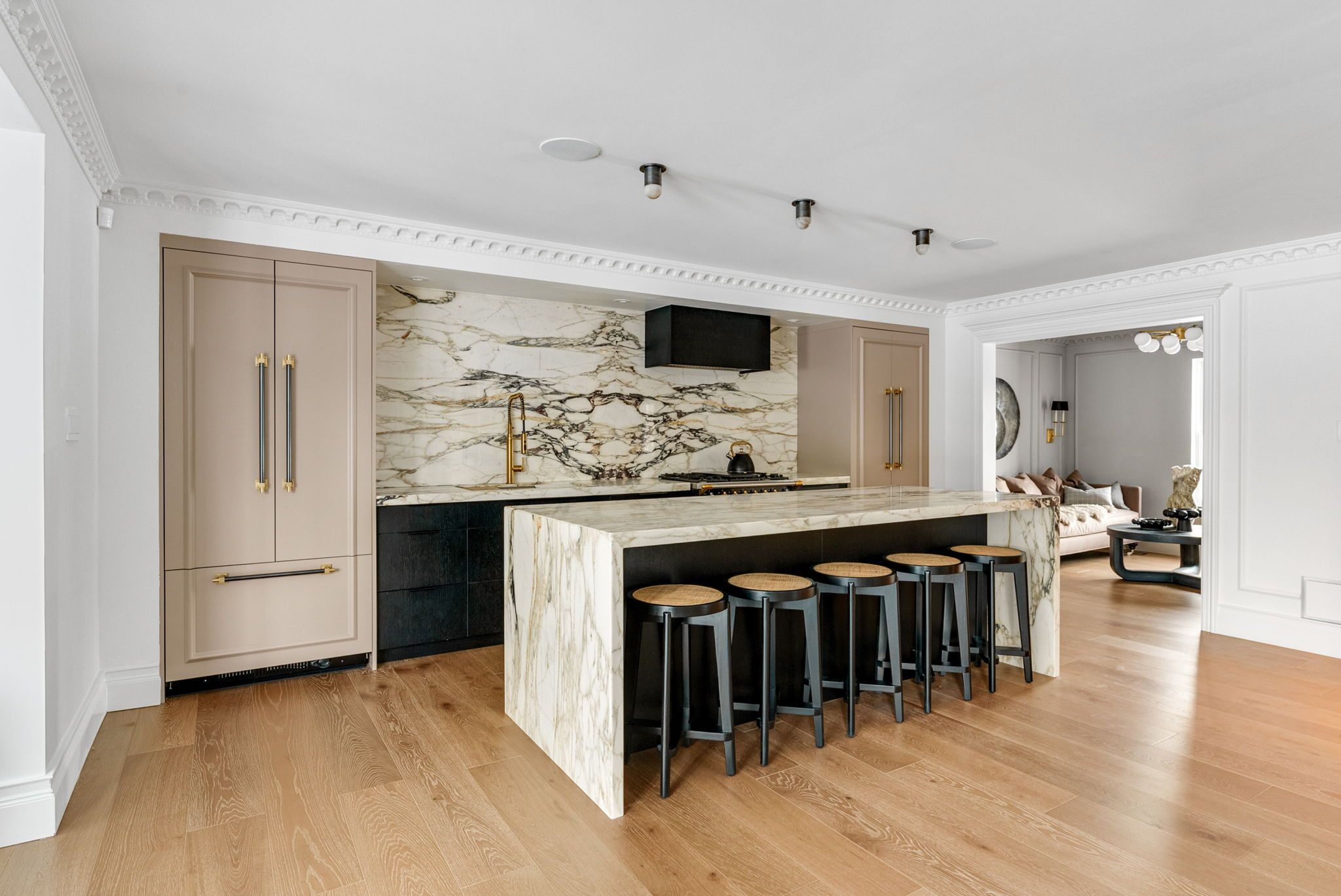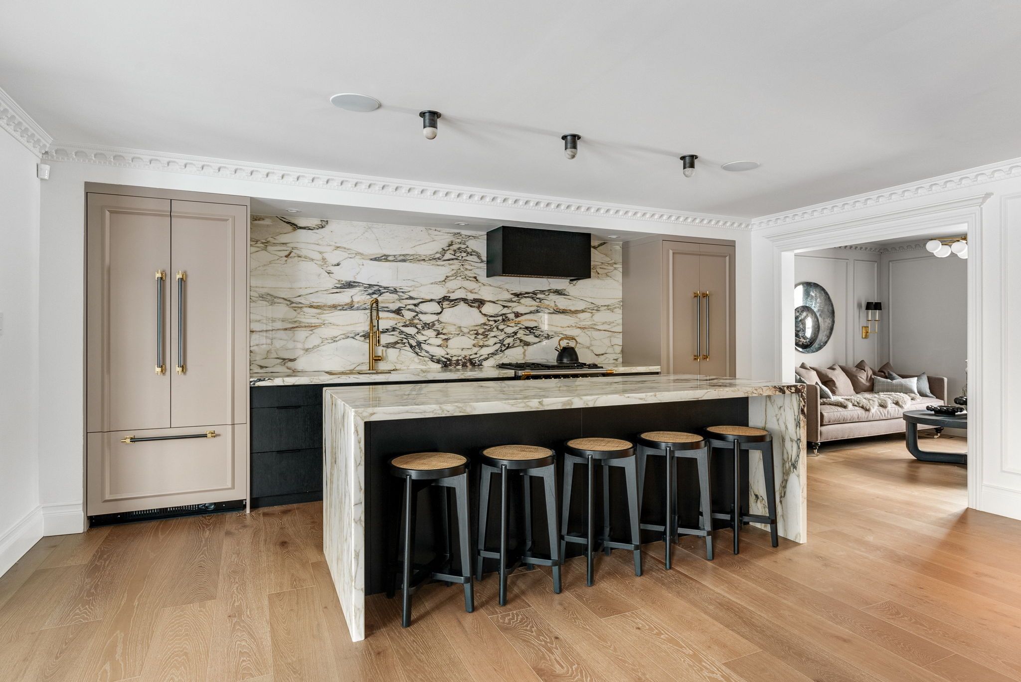 • Fully renovated colonial-style home with luxurious charm and design elements.