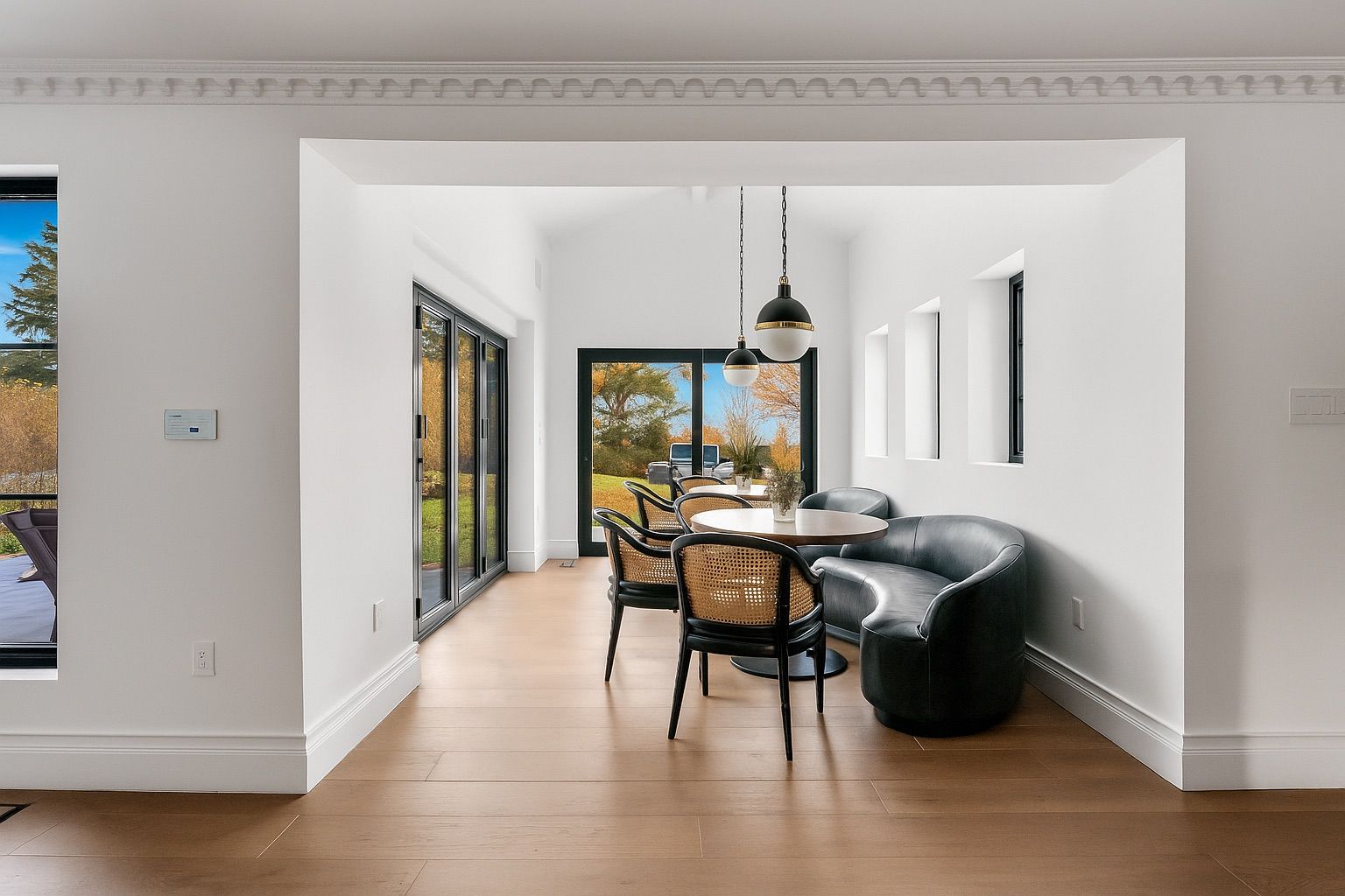 • Spacious office and charming dining area designed for warmth and openness.