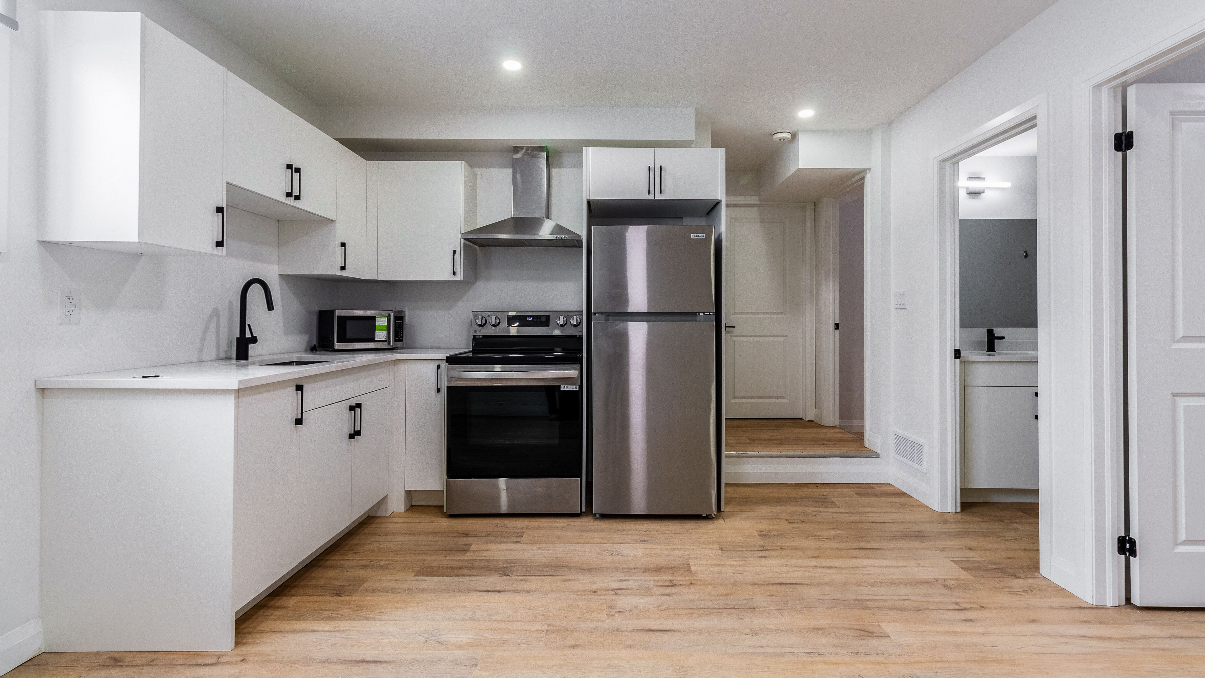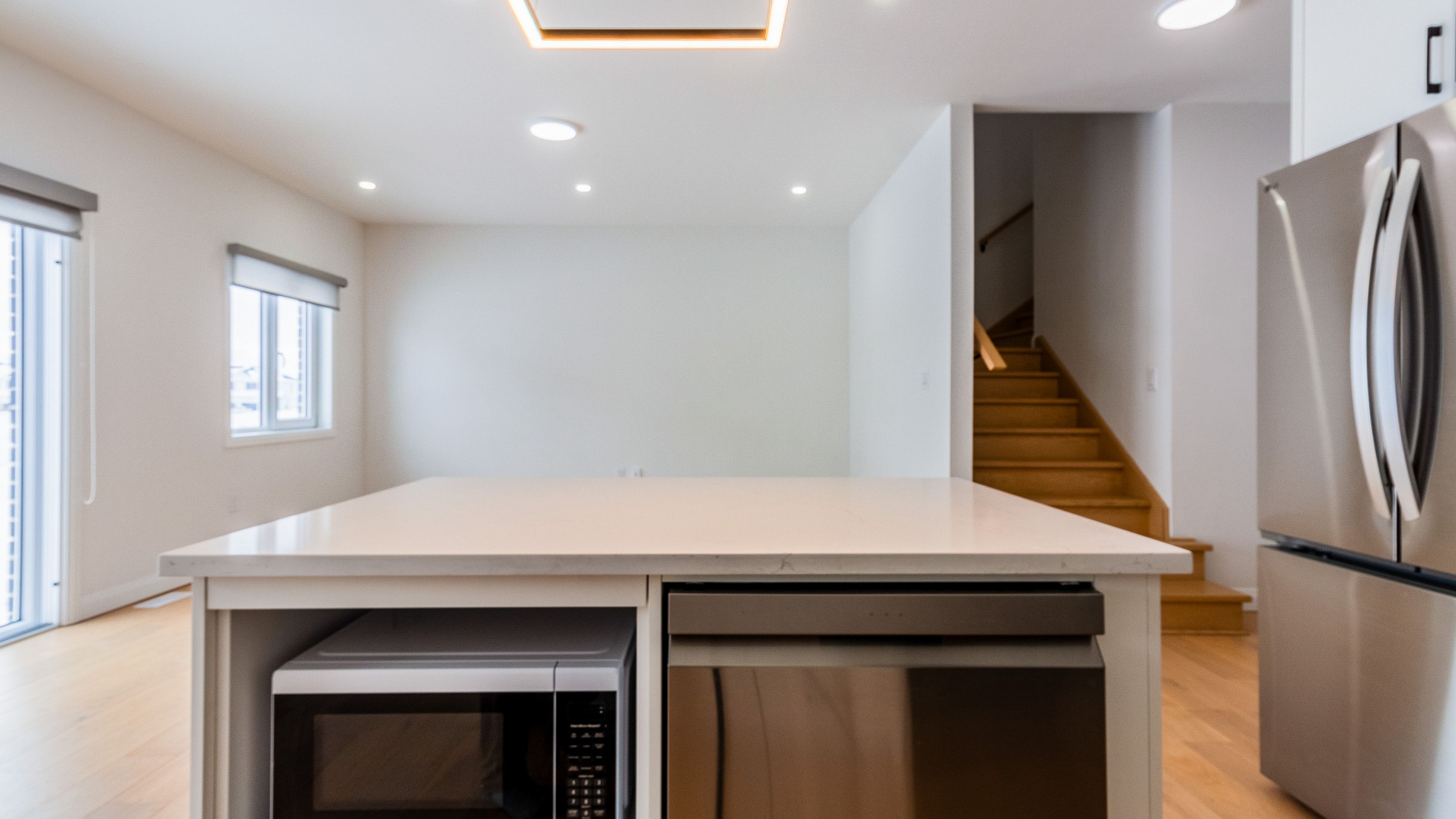 • Bright open-concept main floor with modern finishes and neutral colors.