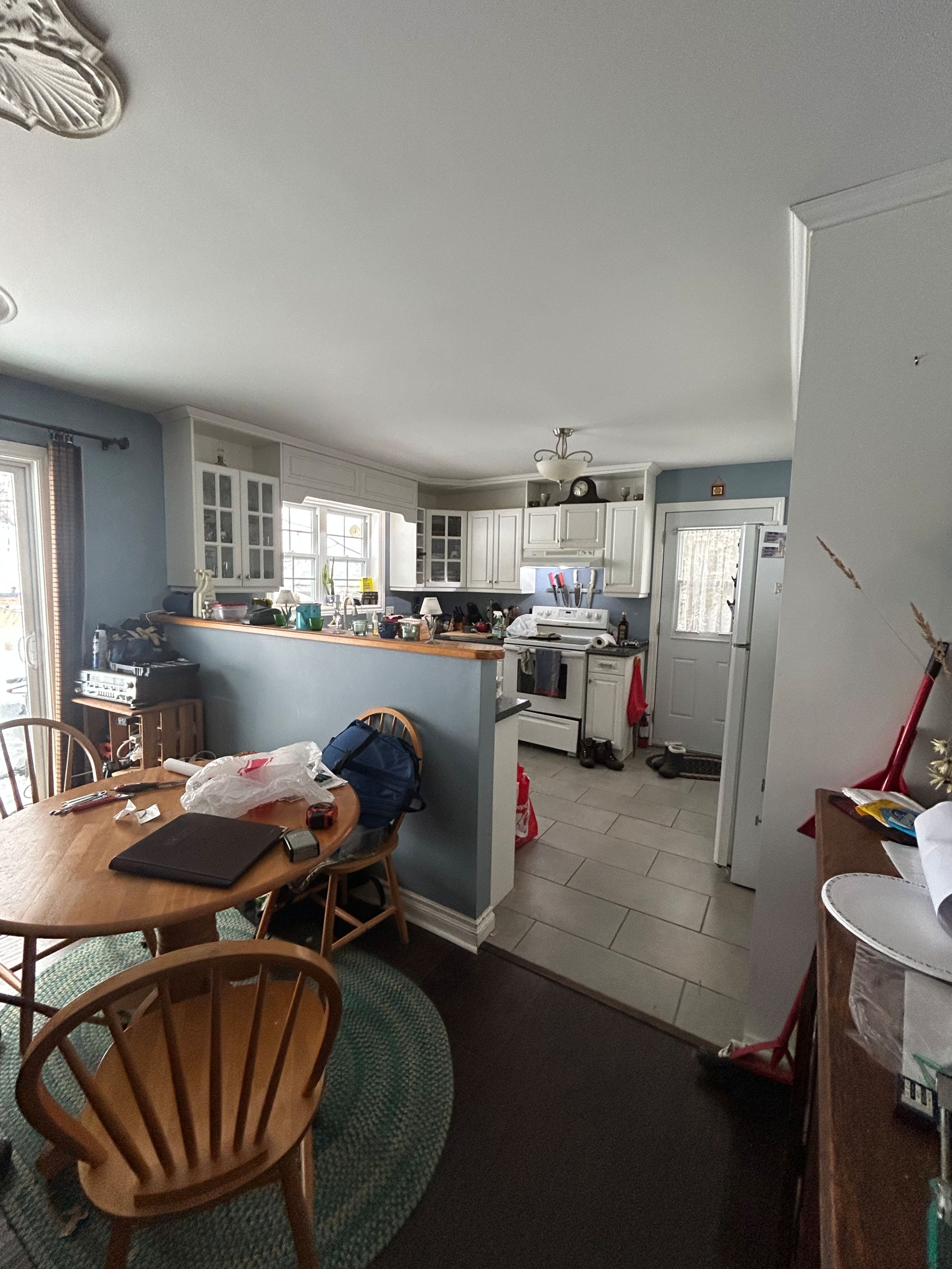 • Main floor features a kitchen, dining area, and living room.
