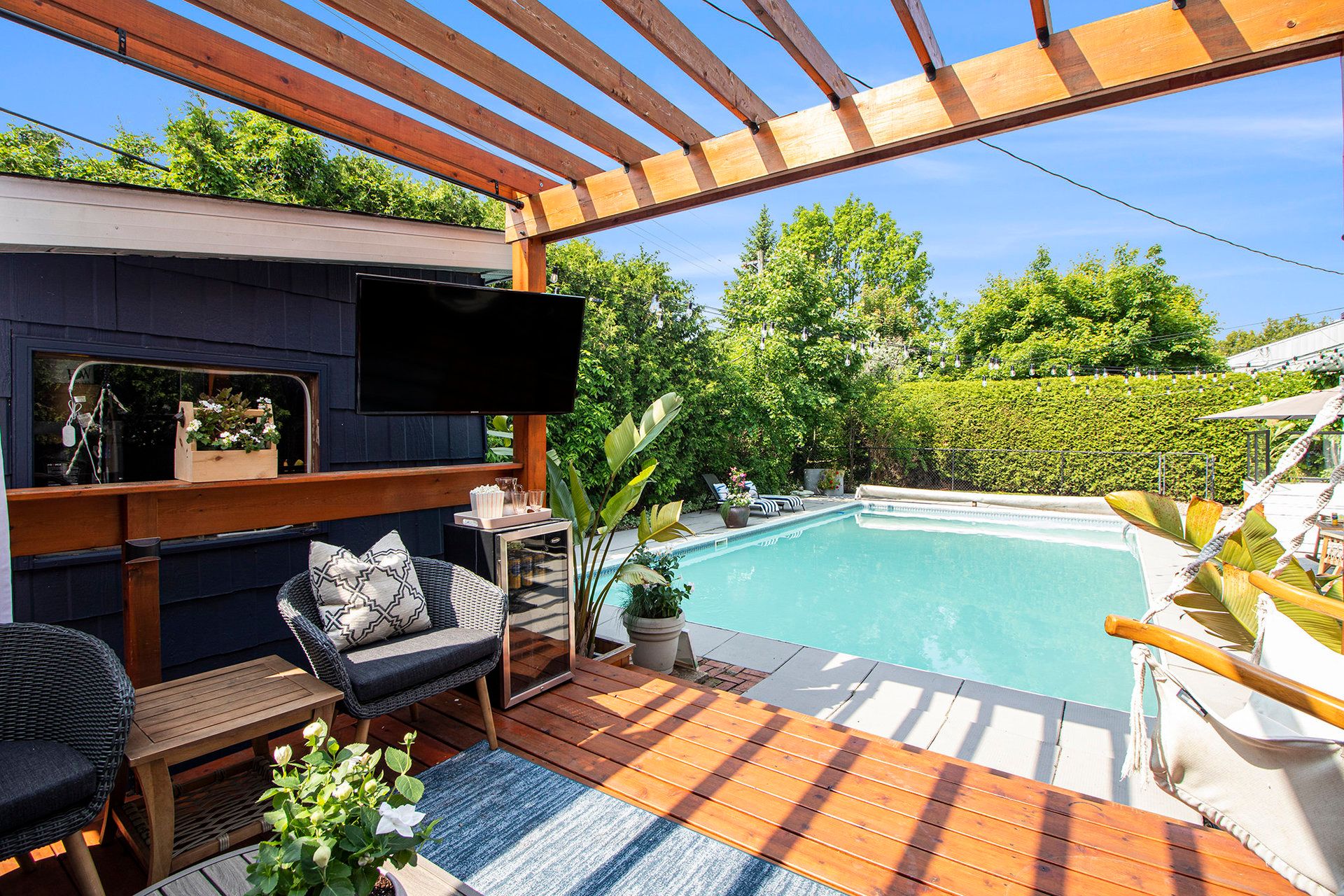 Step into a lifestyle where every day feels like a getaway. This designer-renovated 3+1 bedroom home blends privacy, natural light, and modern comfort on a quiet, no-through street in riverside park. Set on an oversized, south-facing lot, the property enjoys over 10 hours of sunlight daily. Behind soaring cedar hedges lies your own backyard paradise featuring a sparkling pool, glass railings (2024), a custom cedar cabana (2021), and multiple outdoor zones for lounging, dining, and entertaining. Inside, the home has been completely reimagined by a renowned local designer. The welcoming foyer (2020) opens to a spacious living room with a wood-burning fireplace. The kitchen offers a gas range, bosch dishwasher, stainless steel appliances, and floor-to-ceiling sliders framing peaceful backyard views. Step out directly to the deck and pool for seamless indoor-outdoor living. Recent updates include a rejuvenated primary suite (2024), custom built-ins and closets (2024), main-floor bedroom (2023), renovated laundry (2024), and a spa-inspired main bathroom (2025). Fresh interior paint (2025), a glass-railed front porch (2025), and a custom front fence (2020) enhance curb appeal. The lower level offers a flexible layout with an additional bedroom, full bathroom, and generous storage-ideal for guests, teens, or a home office. Key updates: windows (2015), 30-year shingles (2017), furnace (2013). Enjoy the best of city living without the bustle. Riverside park is known for its park-centric design, no cut-through traffic, and quiet streets-steps to schools, walkley lrt, and easy access downtown via bronson or out of the city in any direction. A must see!