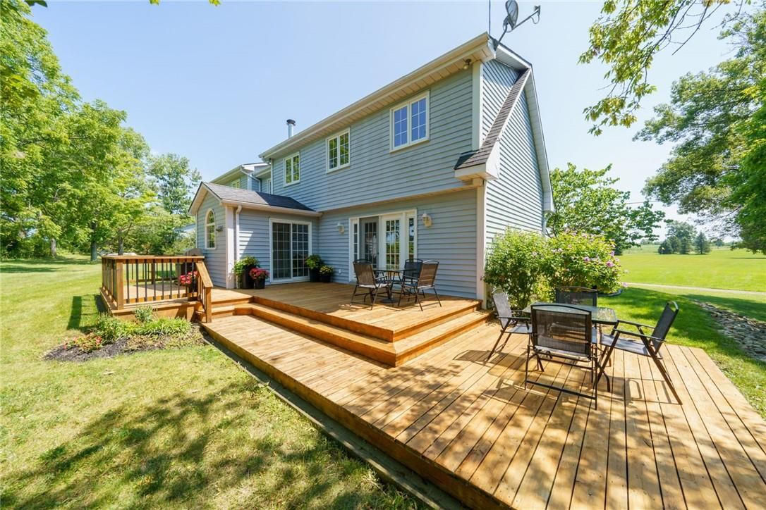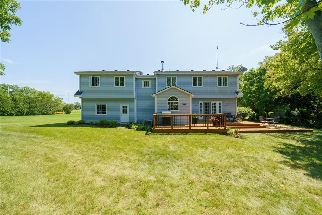 Spectacular waterfront property enjoying 186ft of coveted low profile/easy access grand river frontage incs over 22 miles of navigable waterway at your doorstep. Savour tranquil views of the meandering grand enjoying views of undisturbed natural lands across deep/wide portion of river - the ultimate venue for boating, waterskiing, canoeing, kayaking or fishing - wildlife & exotic waterfowl sanctuary. Follow flag stone walk-way accented with beautiful landscaping to front entry of updated 2 storey cape cod style home boasting over 1900sf of open concept living/dining area offering oversized water-view windows - continues to modern kitchen sporting ample cabinetry + walk-out to private 10x20 river facing deck, 3pc bath & convenient direct garage entry. Multiple classic dormers ensure an abundance of natural light flooding the spacious upper level incs roomy hallway, elegant primary bedroom enhanced with 2 river-view windows & 4 double door closets + 2 additional bedrooms. Easy access staircase provides entry to 874sf lower level/basement introduces rec/family room, laundry/utility room + handy storage area. Incs 3 parcels with separate arn's - new government legislature may allow for potential future lot severance - sufficient area for auxiliary dwelling (adu), tiny house or outbuilding/barnette. Relaxing 30/40 min commute to hamilton, brantford & hwy 403 - 10 mins sw of cayuga - less than 120 mins south of gta. Extras - furnace-2014, ac-2023, c/vac, new vinyl windows-2024, roof shingles-2008, appliances, 2000 gal. Cistern + septic. Unbeatable combination of incredible lot size & substantial water frontage. Life is "grander" on the "grand"!