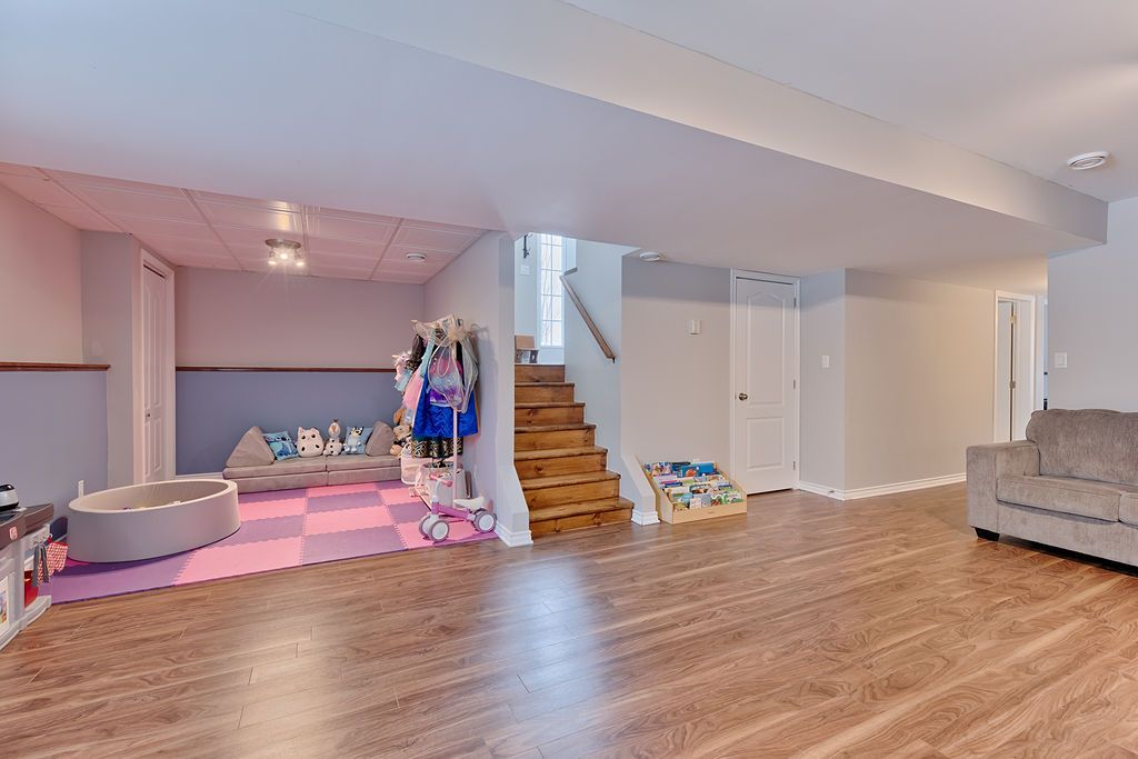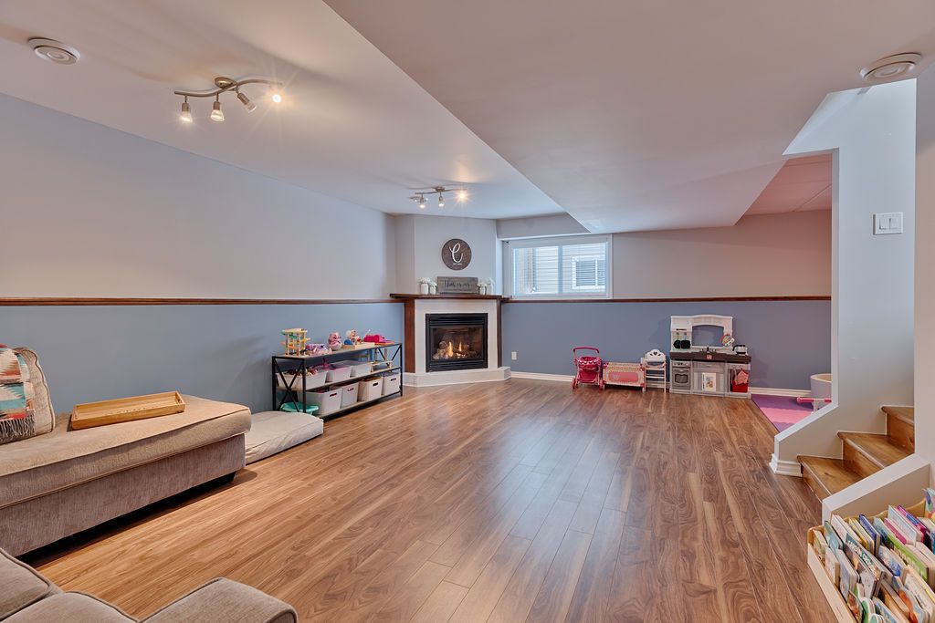 • Generous lower-level space with two bedrooms and a recreation area.