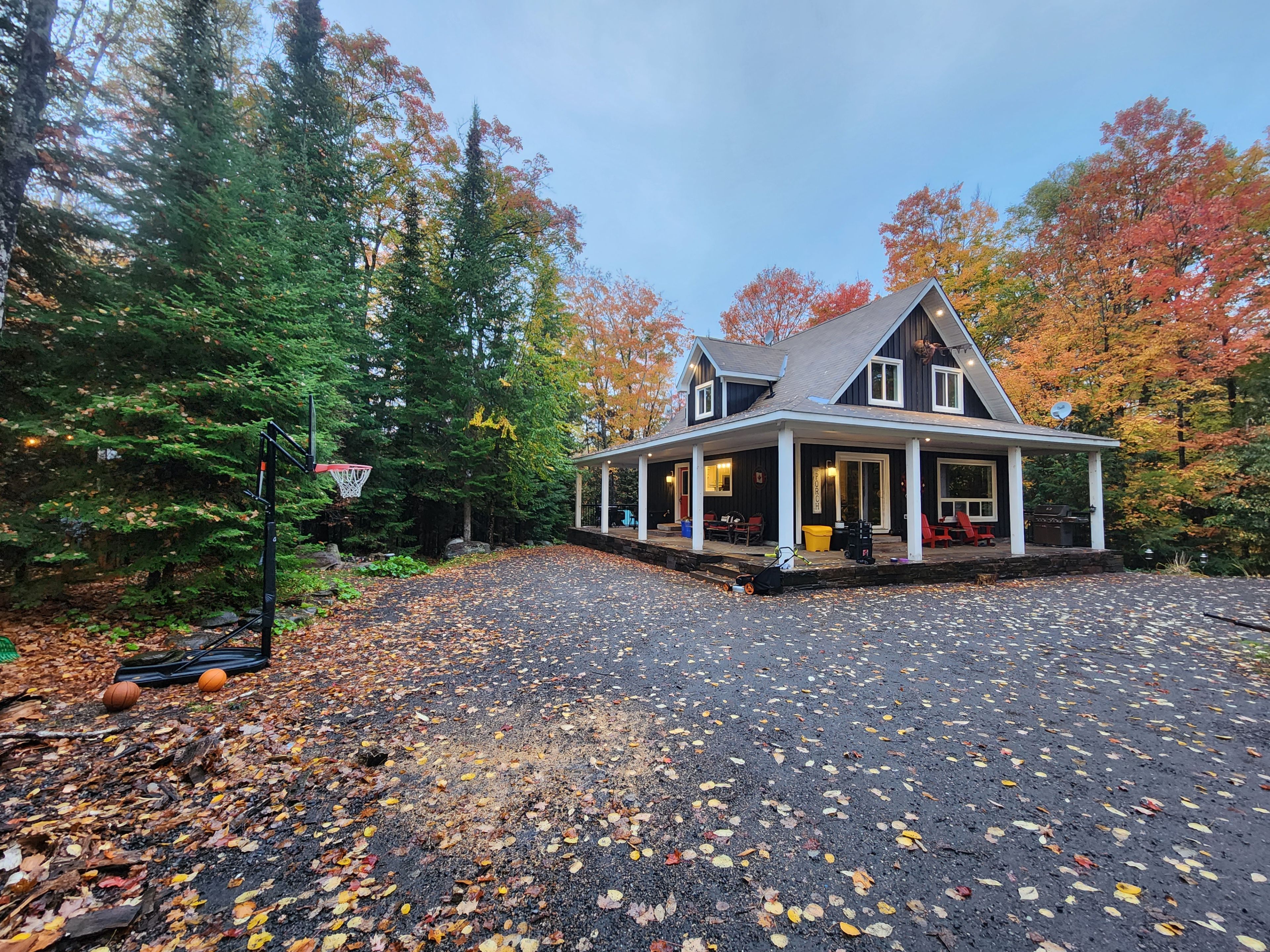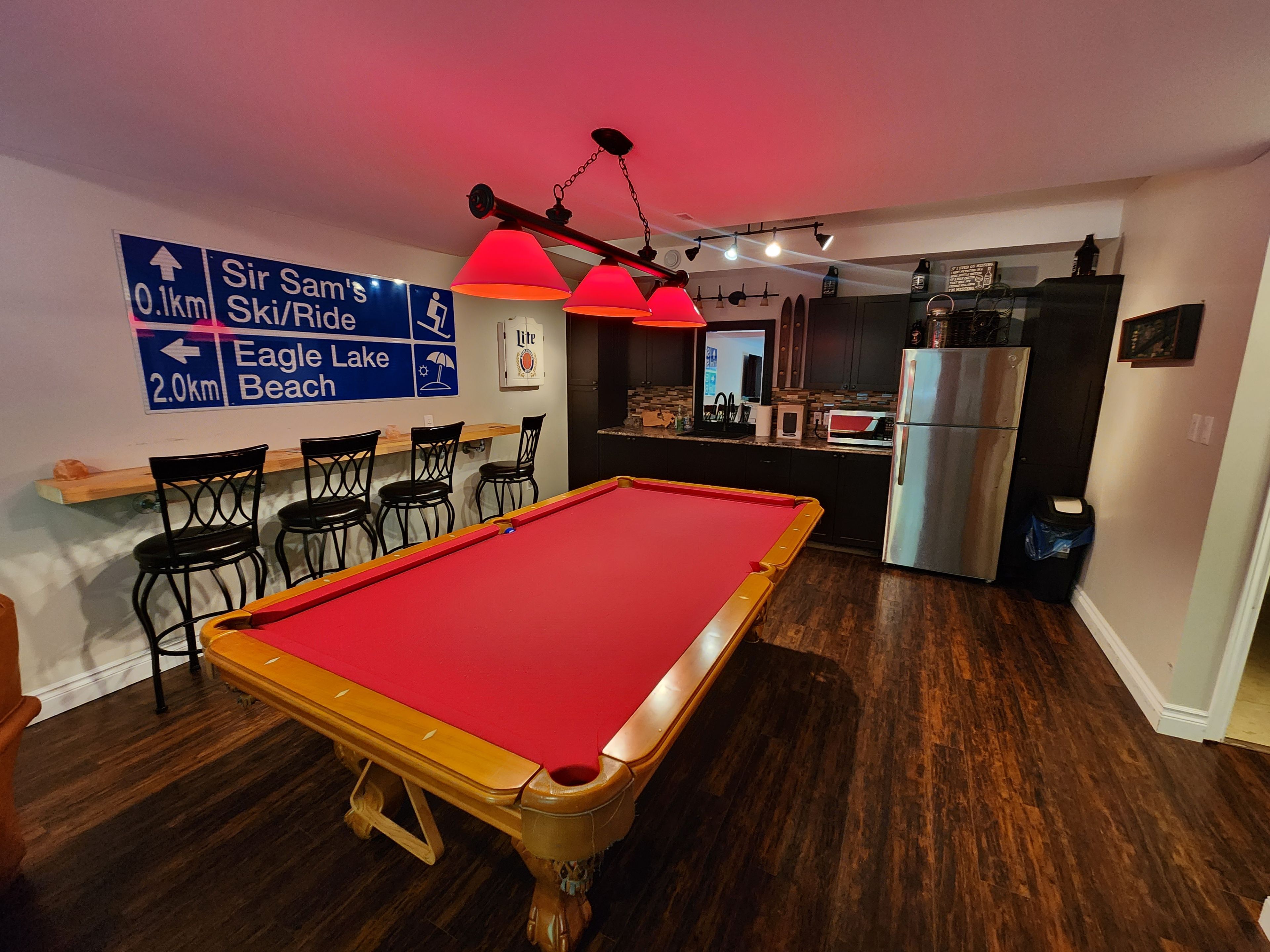 Welcome to 1042 ski ridge trail. This 4 bedroom masterpiece offers convenient ski-in/ski-out access to sir sams ski & ride. Privately situated on 1. 4 acres of pristine forest offering peace and tranquillity. The main floor consists of a stunning open concept kitchen/dining room combination and cozy living room along with 1 bedroom and 4-piece bath. 2nd floor consists of 3 additional bedrooms including primary bedroom and 3-piece bath. Fully finished basement offers additional living space, including recreation room, wet bar, games room and 3-piece bath. Basement walks out to beautiful patio and hot tub. Enjoy roaring fires out front and sip your favourite drink on the stunning covered custom stone wrap around porch. Enjoy relaxing evenings in the charming and spacious authentic wood burning outdoor sauna. Home is complete with multi-camera security system and ev fast charging station. Private, secondary driveway located on the back side of the property leading to endless possibilities. During the winter months, enjoy ski-in/ski-out access to the ski hill, double the fun with bike-in/bike-out access to the incredible bike trails during the rest of the year. There is never a dull moment here with hiking, atving, snowmobiling and much more at your finger tips, the possibilities are endless! 10 minute walk to a beautiful beach on eagle lake.