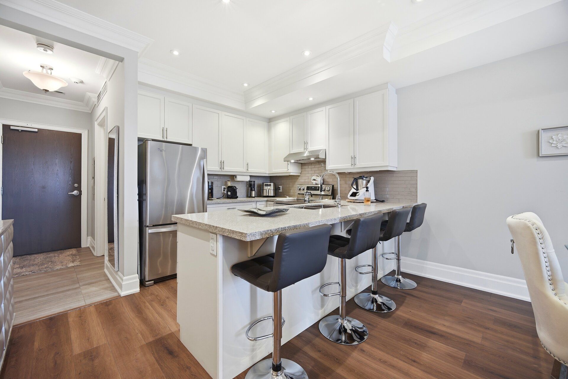Discover refined condo living in the heart of kleinburg village! Welcome to your next home-an impeccably maintained 1 bedroom + den bungalow style condo unit offering a perfect blend of comfort, style, and convenience in one of vaughan's most sought-after neighbourhoods. This thoughtfully designed residence features soaring 9-foot ceilings, elegant flooring, and an open-concept layout that creates a bright, airy ambiance throughout. The modern kitchen is both stylish and functional, showcasing granite countertops, stainless steel appliances, and plenty of cabinetry-perfect for daily living or entertaining. Enjoy the convenience of in-suite laundry and retreat to the spacious primary bedroom, complete with his/her closet for ample storage. Step out onto your private balcony to enjoy your morning coffee or relax in the evening while taking in charming village views. Located in an exclusive, boutique-style building, this unit includes one dedicated parking space and features sleek, contemporary finishes throughout. Plus, a locker too! Ideally situated in the heart of kleinburg village, you'll have easy access to a vibrant array of local attractions. Enjoy cultural enrichment at the renowned mcmichael gallery, explore scenic trails perfect for leisurely walks or invigorating hikes, and indulge in a variety of restaurants and boutique shops that cater to diverse tastes. This dynamic community offers an unbeatable lifestyle for art lovers, nature enthusiasts, and food connoisseurs alike. This exceptional opportunity is a must-see for professionals and couples seeking stylish, comfortable living in one of vaughan's most desirable neighbourhoods! Close to schools, park, transportation, restaurants and kleinburg village !!!