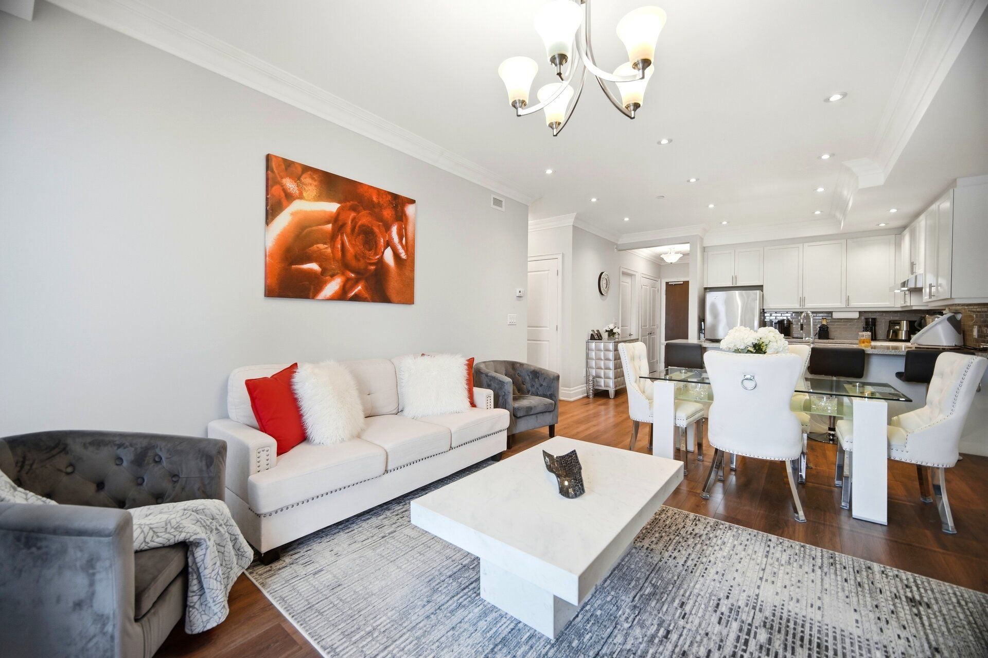 • Bright open-concept layout with 9-foot ceilings and elegant flooring.