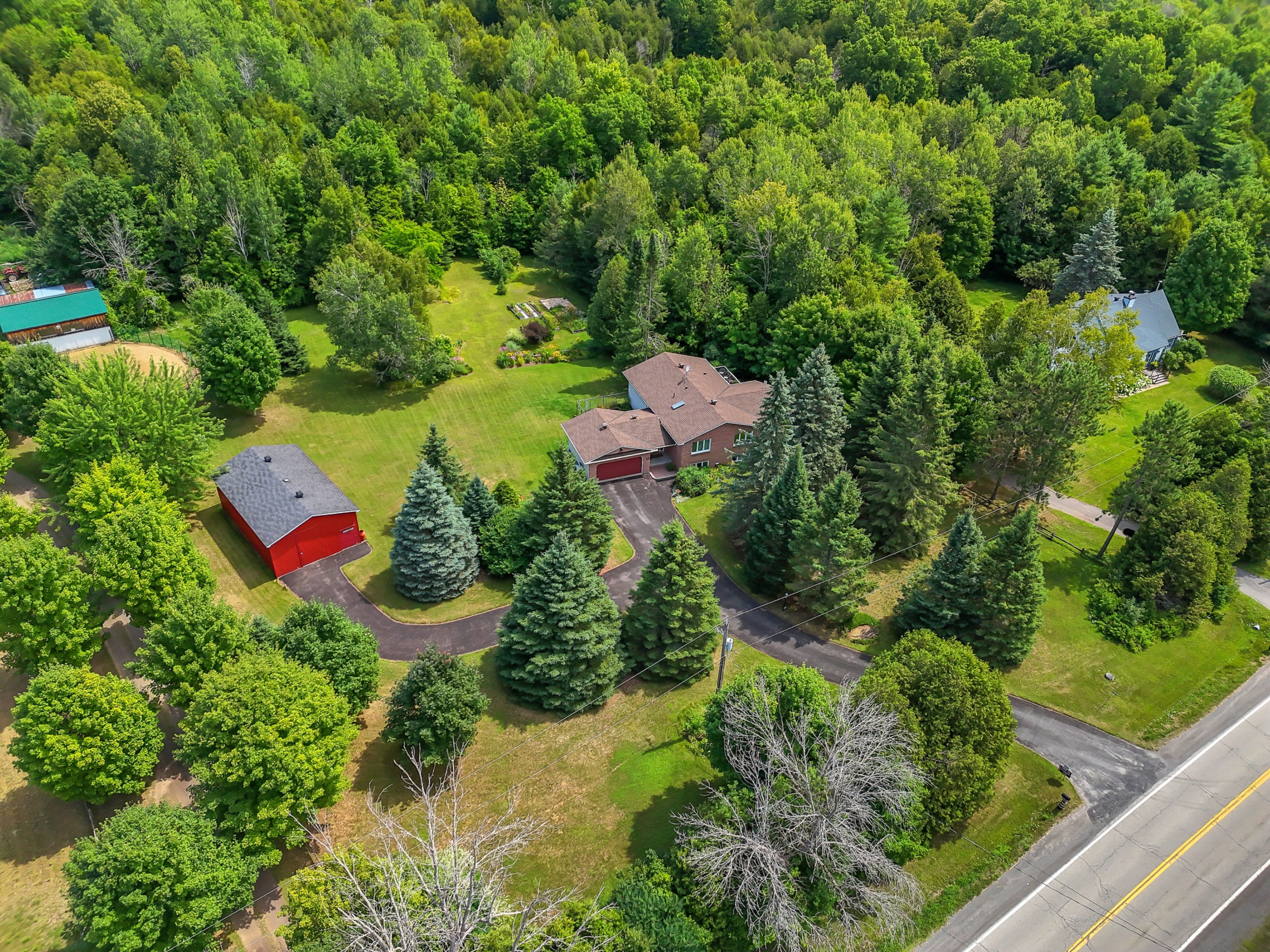 Discover the perfect blend of comfort and natural beauty in this architecturally designed 2+1 bedroom 2 bath split level. Nestled among mature trees in the picturesque north grenville countryside, this quality built residence offers an exceptional living experience for those seeking privacy & tranquility without sacrificing modern conveniences. Large open concept kitchen & dining area, formal living room and inviting family room with a gas fireplace to keep you cozy on cool nights. Step out the patio doors to your own private oasis. The expansive deck serves as an ideal spot for morning coffee or evening entertaining, overlooking mature perennial gardens that provide year round visual interest. For nature enthusiasts, a private nature trail winds through the property, offering peaceful walks among established trees and natural landscaping. The lower level features a rec room with gas fireplace, bedroom, craft room & utility room with plenty of storage. The heated detached garage & workshop combination provides practical storage solutions while maintaining comfortable working conditions throughout the seasons. The cummins generator ensures uninterrupted power supply, adding peace of mind during inclement weather. The quality construction, thoughtful amenities, and natural setting create an environment where memories are made and life is truly enjoyed. Call to book your private showing now, this stunning property will not last long. Updates include new roof 2024, generator 2023, garage door opener 2024, some new windows 2020. Geothermal heating & cooling ground source 2010, 2 propane fireplaces recently maintained. Hydro is equal billing of $236./mo. Includes fridge, stove, dishwasher, microwave, washer, dryer.