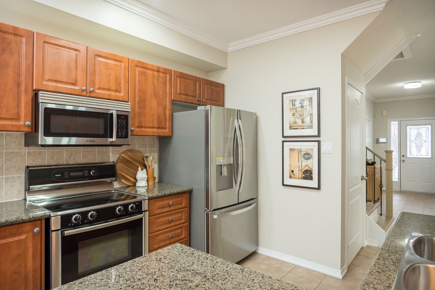 Located in the desirable beaty neighbourhood of milton, this beautifully maintained home offers an exceptional blend of space, updates, and commuter convenience. Within walking distance to parks, schools, and everyday amenities and with quick access to the 401, 407, and go station, the location is ideal for busy families and professionals alike. The home features impressive curb appeal with a large covered front porch, no sidewalk, and parking for up to six vehicles including a double car garage with interior access. Inside, 9-foot ceilings, crown mouldings, hardwood flooring, upgraded lighting, pot lights, and a neutral colour palette enhance the open-concept main floor, which also includes a powder room. The bright eat-in kitchen showcases granite countertops, tile backsplash, stainless steel appliances and direct access to the fully fenced backyard with a low-maintenance concrete patio and garage walk-through. Upstairs, three generously sized bedrooms include a spacious primary retreat with walk-in closet and 4-piece ensuite, complemented by an updated main bath and laundry room. The beautifully finished basement (2023) adds valuable living space with a large rec room, bonus office space, bedroom, and full bath, perfect for guests or extended family. Major updates include furnace and air conditioner (2022) and roof (2023), offering peace of mind and move-in-ready comfort.