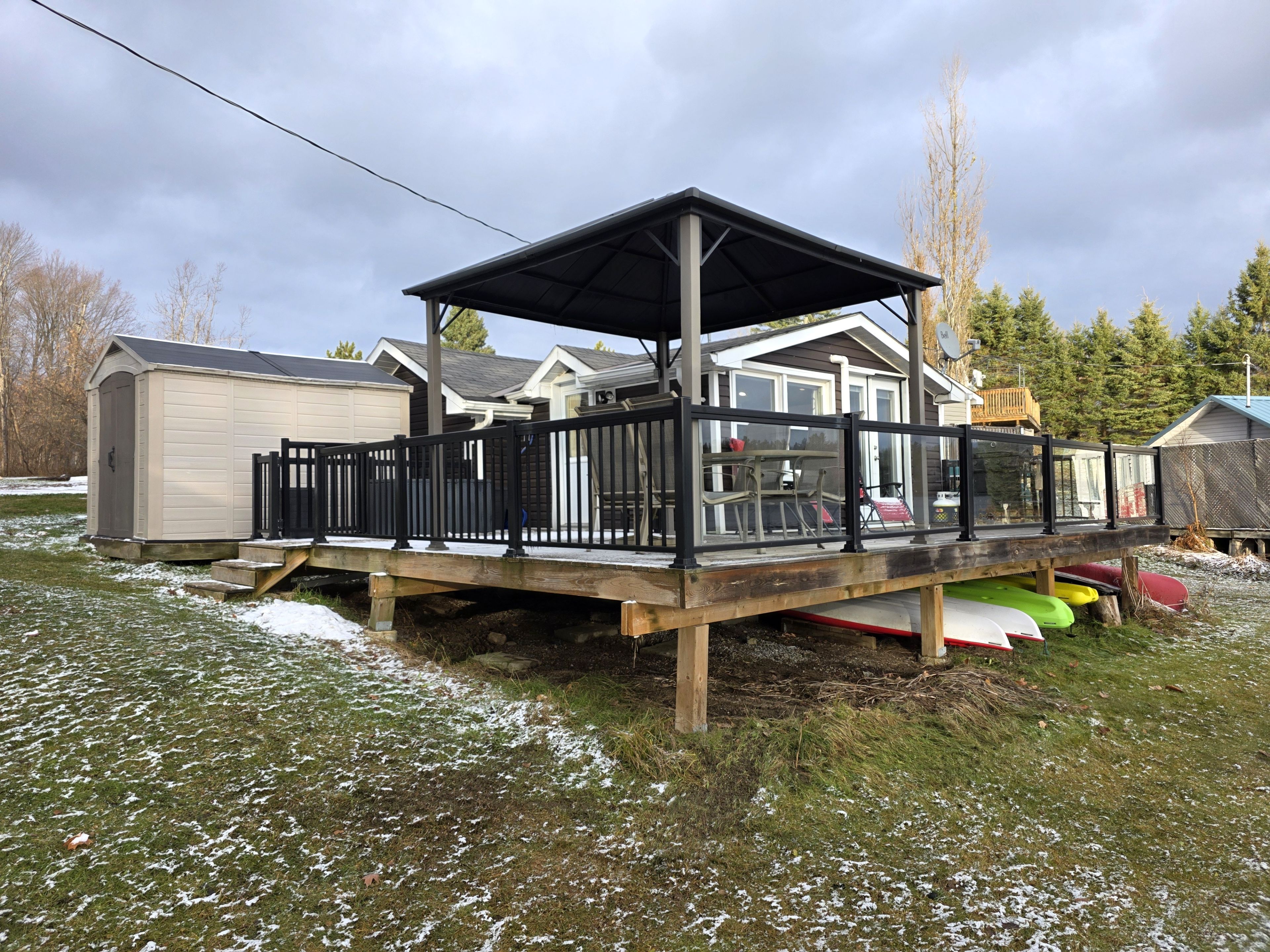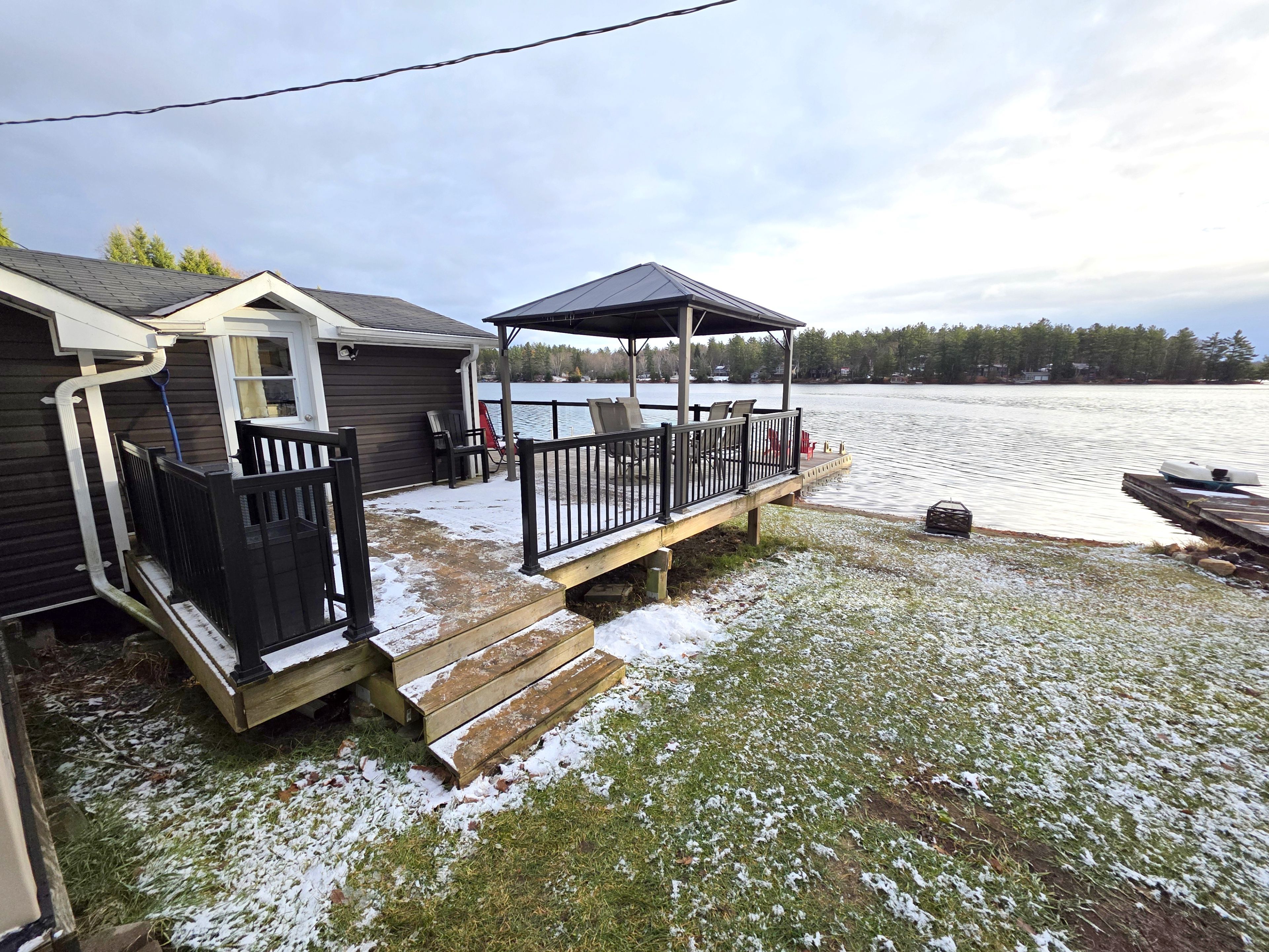 Discover the perfect retreat in this charming, fully renovated 2-bedroom, four-season cottage nestled within a well-maintained co-operative community. Ideally positioned along the shores of south lake, this cozy getaway offers stunning southern lake views right from your expansive private deck. Enjoy direct access to the water from the convenience of your own backyard, or take a refreshing swim from the hard, sandy shoreline. The private dock provides added convenience for you to access your boat/watercraft with ease! Ownership of the cottage provides year-round enjoyment, with shared amenities that include boat launch, beach area, playground, in-ground pool, and boat slips. The annual maintenance fee conveniently covers taxes, insurance, grounds maintenance, water, sewer, garbage, and road plowing, allowing you to relax and enjoy carefree cottage living. Upgrades include a newer roof, siding, deck, plumbing, wiring, kitchen, flooring, heating/ac, and full spray-foam insulation throughout. An affordable and appealing option for full-time cottage living with excellent rental potential, this lakeside escape is ready for you to move in and unwind.