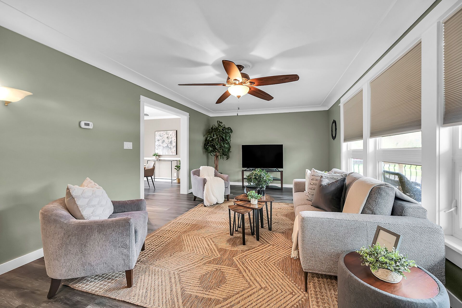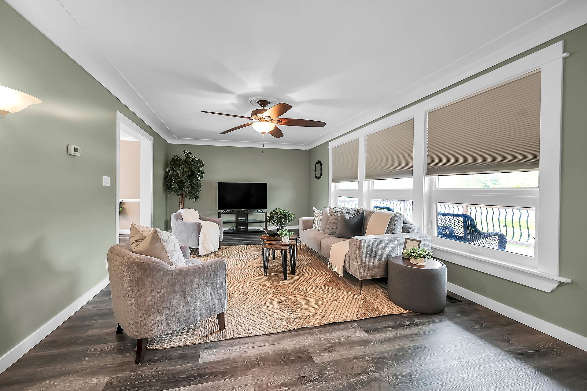 • Quaint front porch ideal for relaxing and enjoying small town vibes.