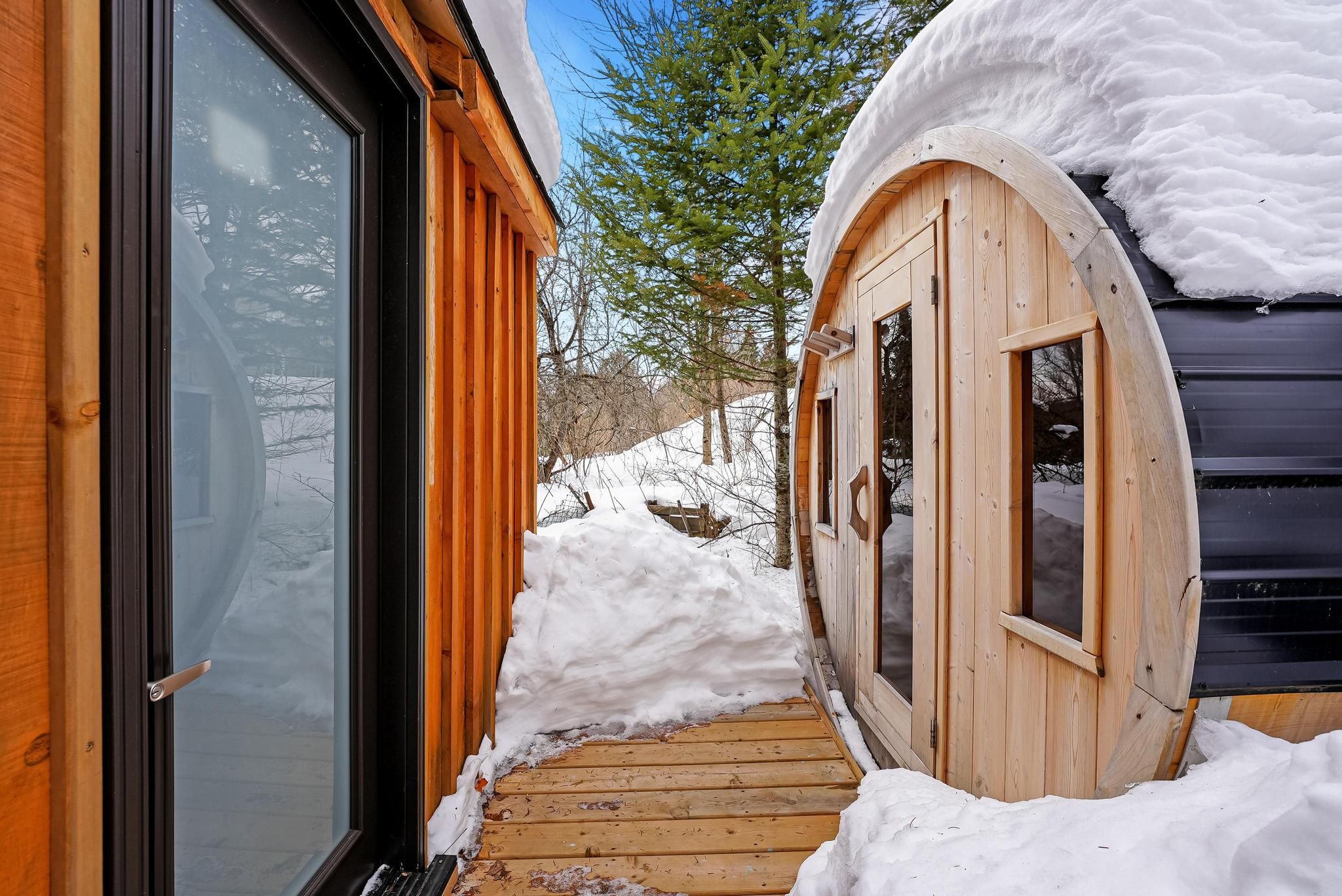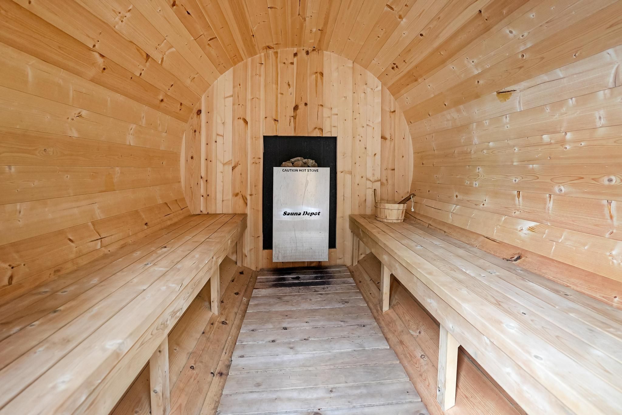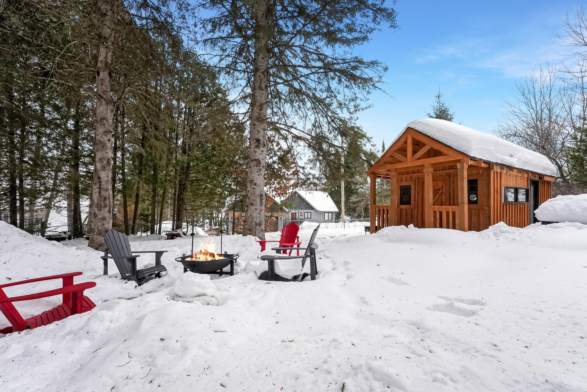 • Includes 3 bunkies, hot tub, sauna, and fire pit for fun.