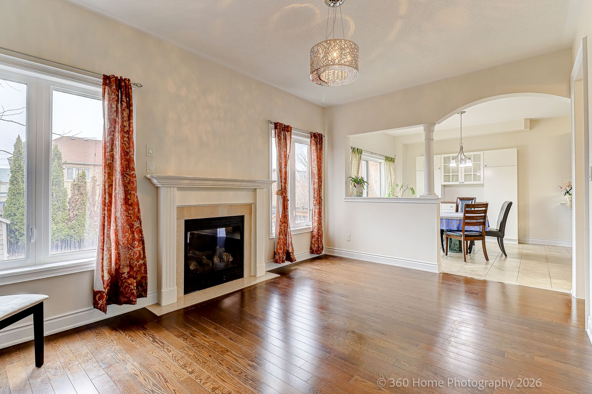 • Bright open concept with hardwood floors and a cozy gas fireplace.